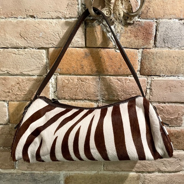 イングランド製ハラコ素材の筒形ハンドバッグ。 ゼブラ柄でコーディネートのアクセントとなります。 肩掛けもできる適度な長さのハンドル、華奢な筒形で女性らしいデザインです。 カラー:ブラウン系×ホワイト 実寸 縦:12㎝ 横(底面)32㎝ マチ(最大)12㎝ ハンドル長さ:45〜55㎝ ※多少の誤差はご容赦ください。 素材:ハラコ×レザー 生産国:イングランド 状態:USED品(中古品)底角のハラコ部の擦れ。細かな使用感はありますが、全体的にまだまだ綺麗な状態です。 ※弊社の取扱商品は基本的には中古品の為、写真に写しきれない細かな汚れや擦れ、アタリ等は全て記載しきれない場合がございます。 ※オンラインショップ掲載商品は店頭での販売も行っております。 先にご注文頂いた方を優先して販売致しますので、予めご了承下さい。 ※基本的に返品対応等は致しておりません。ご理解頂きご購入頂きます様お願い申し上げます。 ※送料別途500円頂いております。