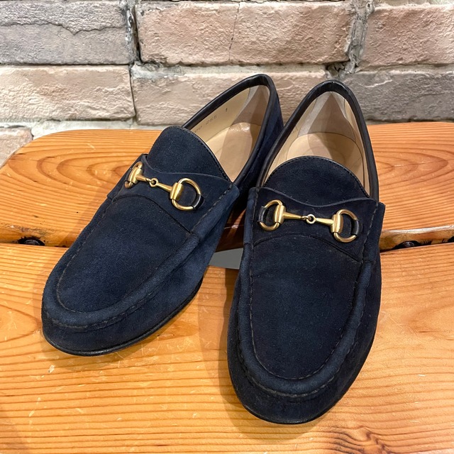 Gucci "ladies bit loafer" navy suede サイズ37C イタリア製 スエード ビットローファー グッチ