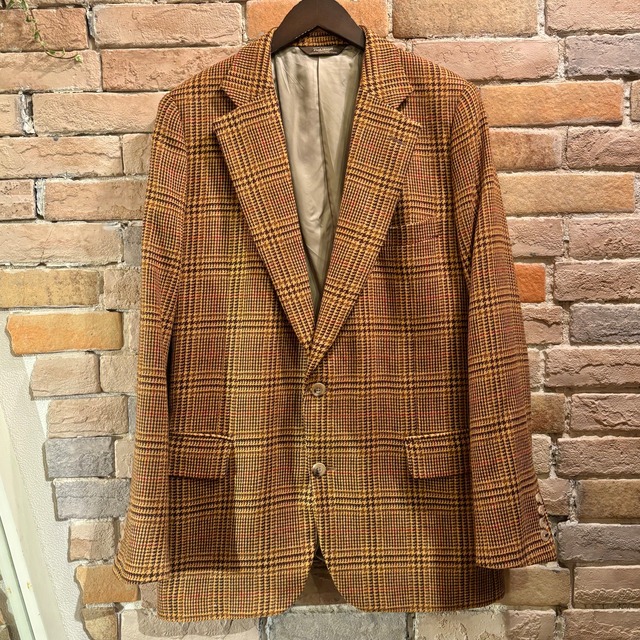 ウール×カシミヤの滑らかな生地感に細かな色使い、英国的なシルエットが特徴的な3つボタンジャケット。 袖口開き見せ、サイドベンツ仕様。 カラー:ベージュ×カーキ×グリーン×ブルー×9テラコッタ×ブラウン サイズ:UK38 REG 実寸 身幅:55㎝ 肩幅:47.5㎝ 袖丈:63㎝ 着丈:77㎝ ※多少の誤差はご容赦ください。 素材:ウール85% カシミヤ15% 生産国:イングランド 状態:袖裏の小汚れや裏地の若干の使用感は見られますが、全体的にまだまだ綺麗な状態。 model 180㎝ 66㎏ ※オンラインショップ掲載商品は店頭での販売も行っております。 先にご注文頂いた方を優先して販売致しますので、予めご了承下さい。 ※基本的に返品対応等は致しておりません。ご理解頂きご購入頂きます様お願い申し上げます。 ※送料別途500円頂いております。
