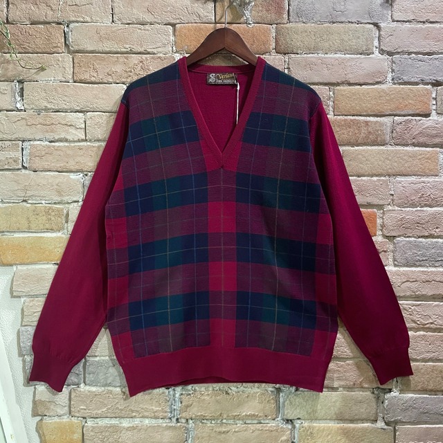 Johnsmedley "Verlana" Dead stock 3サイズ 80~90s デッドストック 3サイズ エクストラファインメリノウール ハーリキンチェック Vネックニット ジョンスメドレー ベルラナ イングランド製