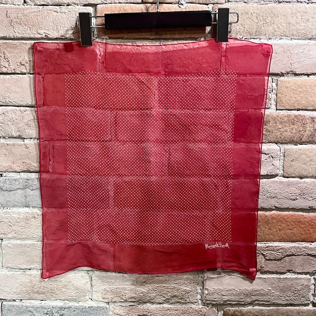 マーガレットハウエルのドット柄のシルクスカーフです。 シルクで上品な素材感ですが細やかなドット柄でどこかラフでキュートな雰囲気もある一品です。 カラー:レッド×ホワイト 実寸 縦幅:45㎝ 横幅:44.5㎝ ※多少の誤差はご容赦ください。 素材:シルク100% 生産国:イングランド 状態: USED品(中古品) 細かな生地のツレ、ドット、ロゴ部分の薄汚れが見られます。大きなダメージはなく、全体的にまだまだ問題なく使用できる状態。 ※弊社の取扱商品は基本的には中古品の為、写真に写しきれない細かな汚れや擦れ、アタリ等は全て記載しきれない場合がございます。 ※オンラインショップ掲載商品は店頭での販売も行っております。 先にご注文頂いた方を優先して販売致しますので、予めご了承下さい。 ※基本的に返品対応等は致しておりません。ご理解頂きご購入頂きます様お願い申し上げます。 ※送料別途500円頂いております。