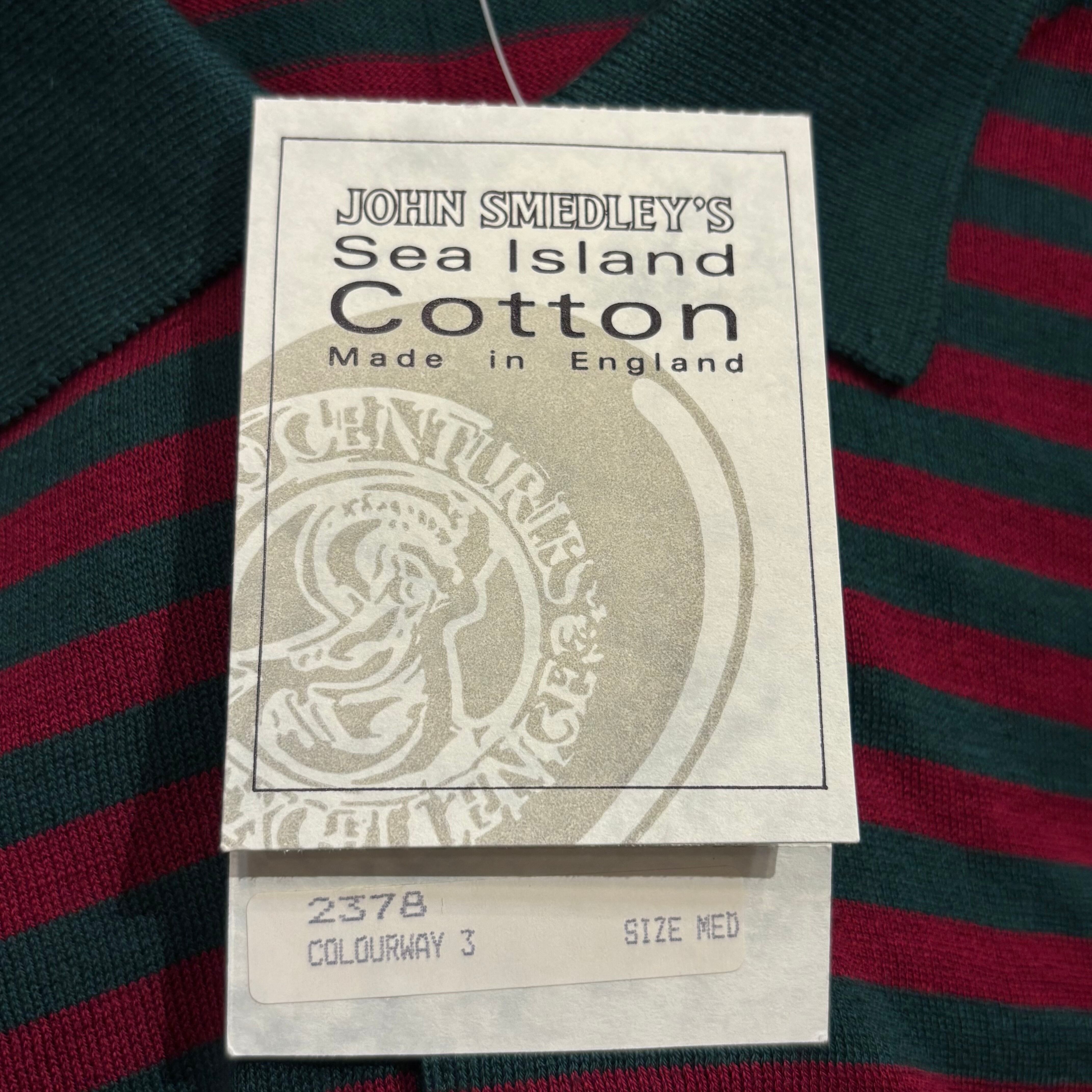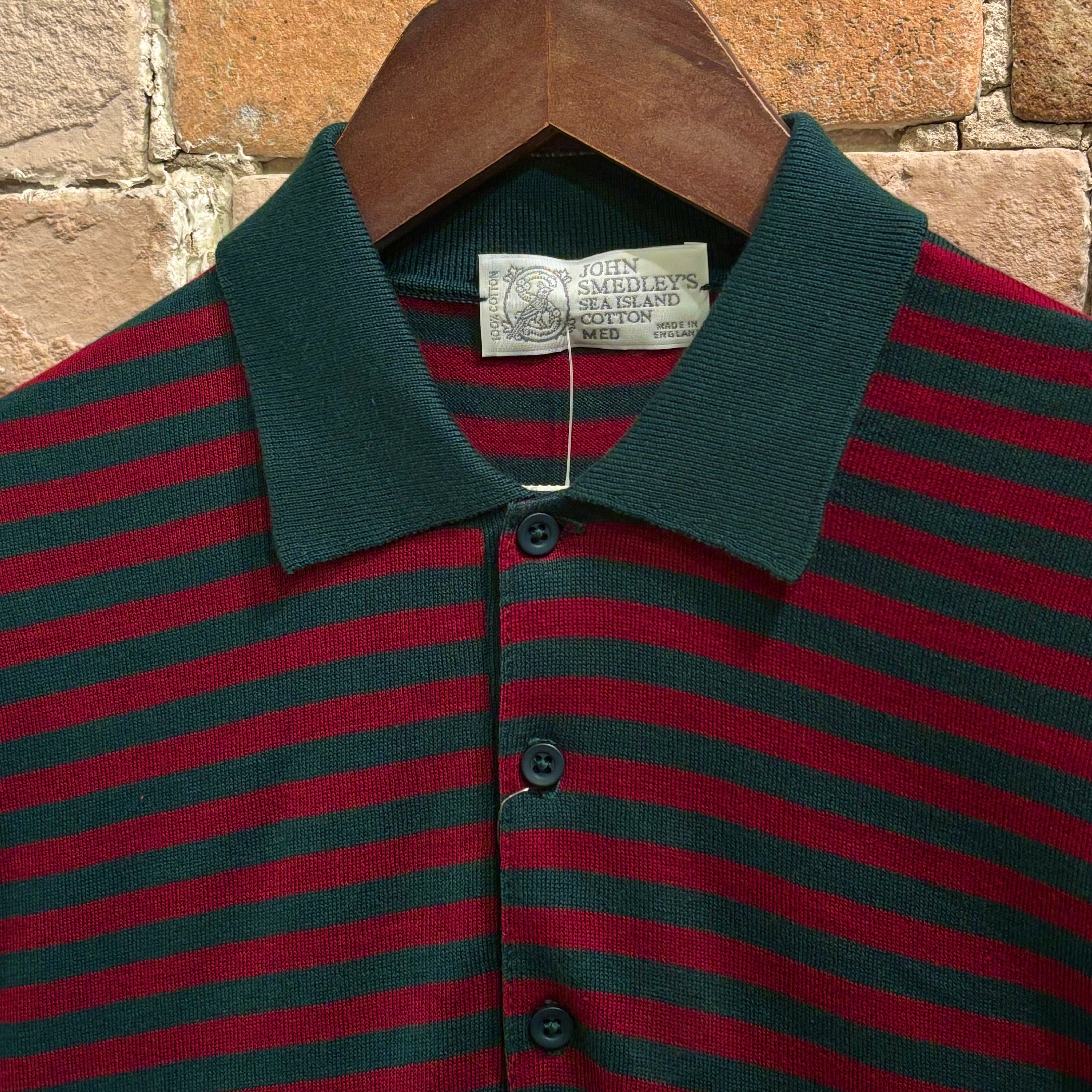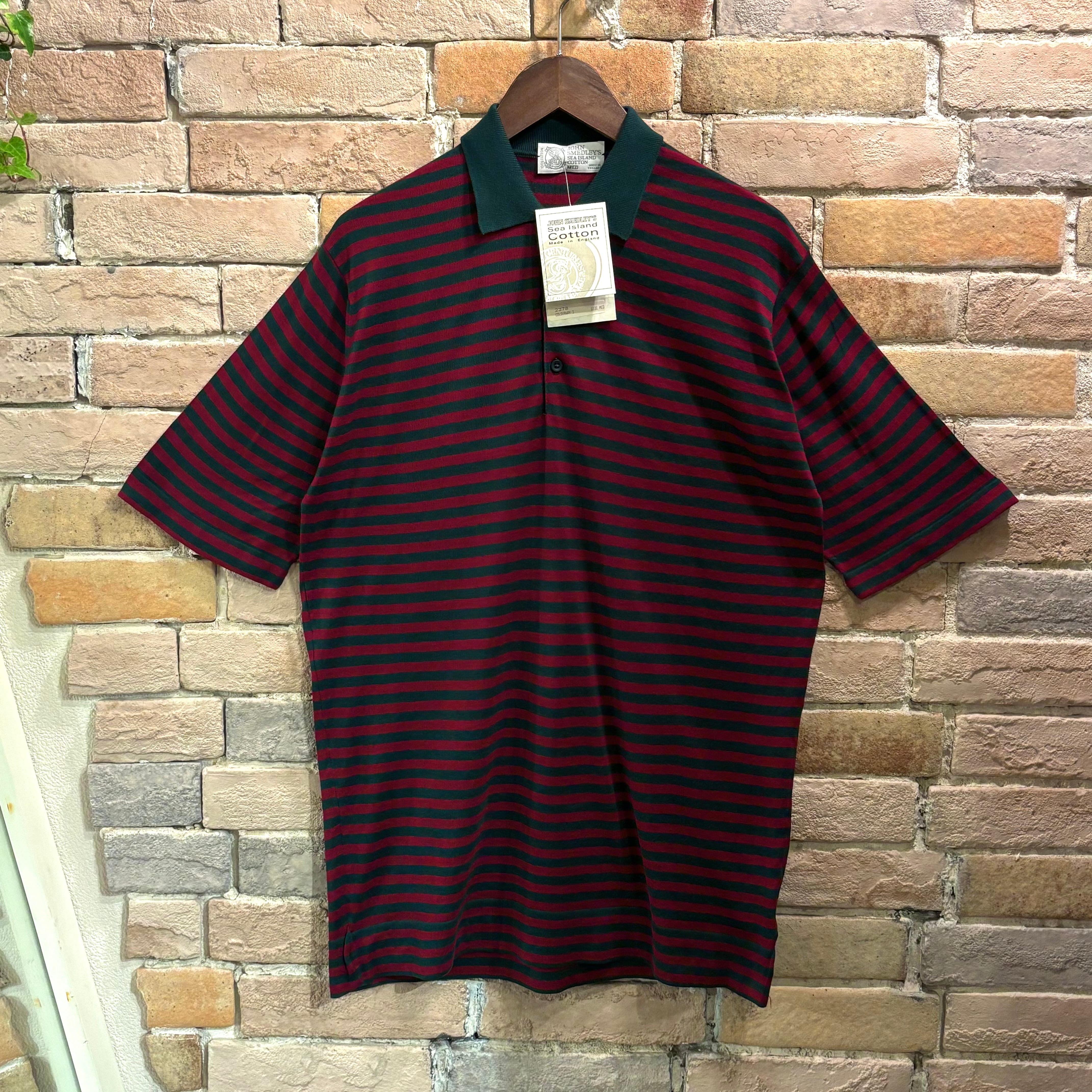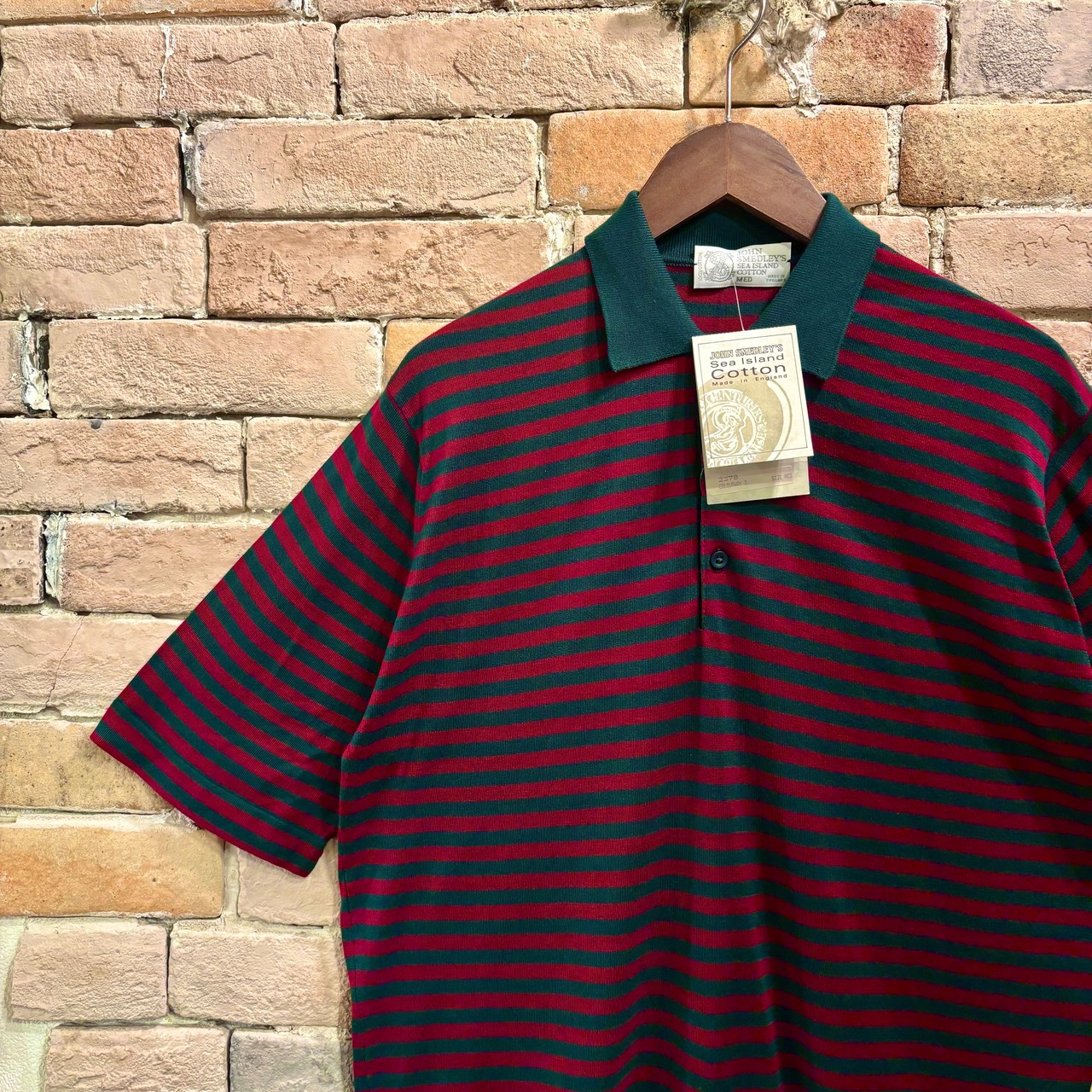 Johnsmedley Deadstock Mサイズ シーアイランドコットン グリーン×バーガンディボーダー 半袖ニットポロ デッドストック ジョンスメドレー イングランド製