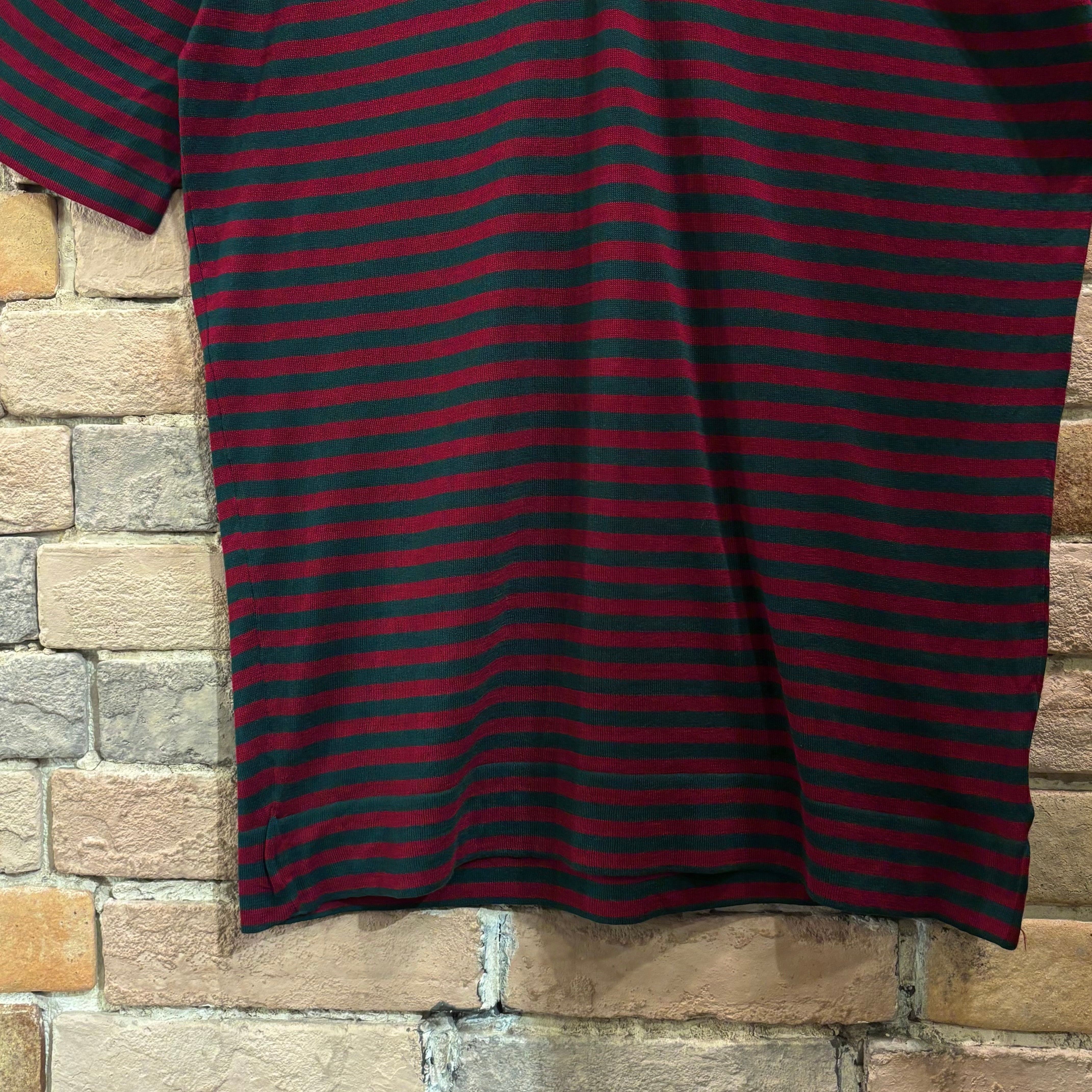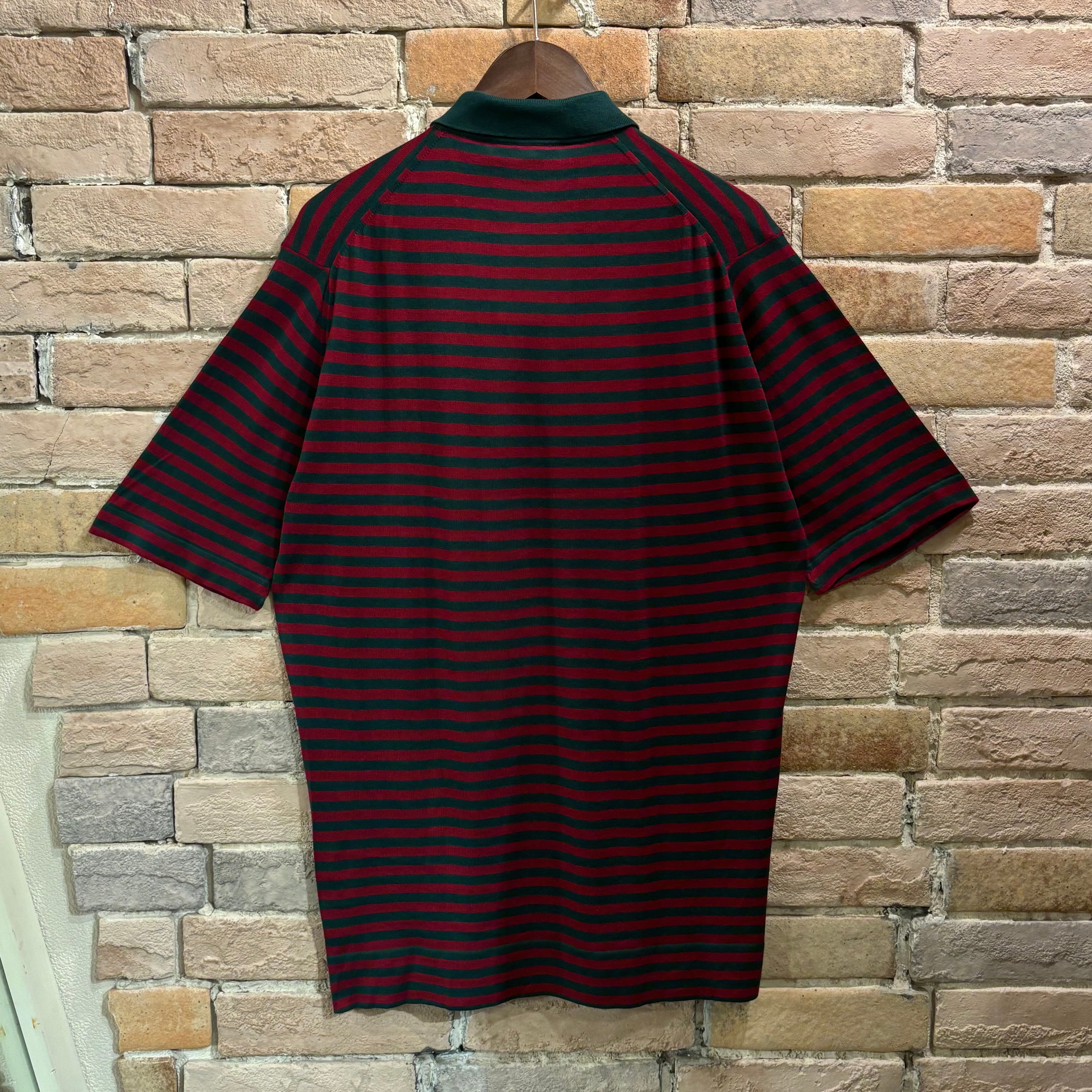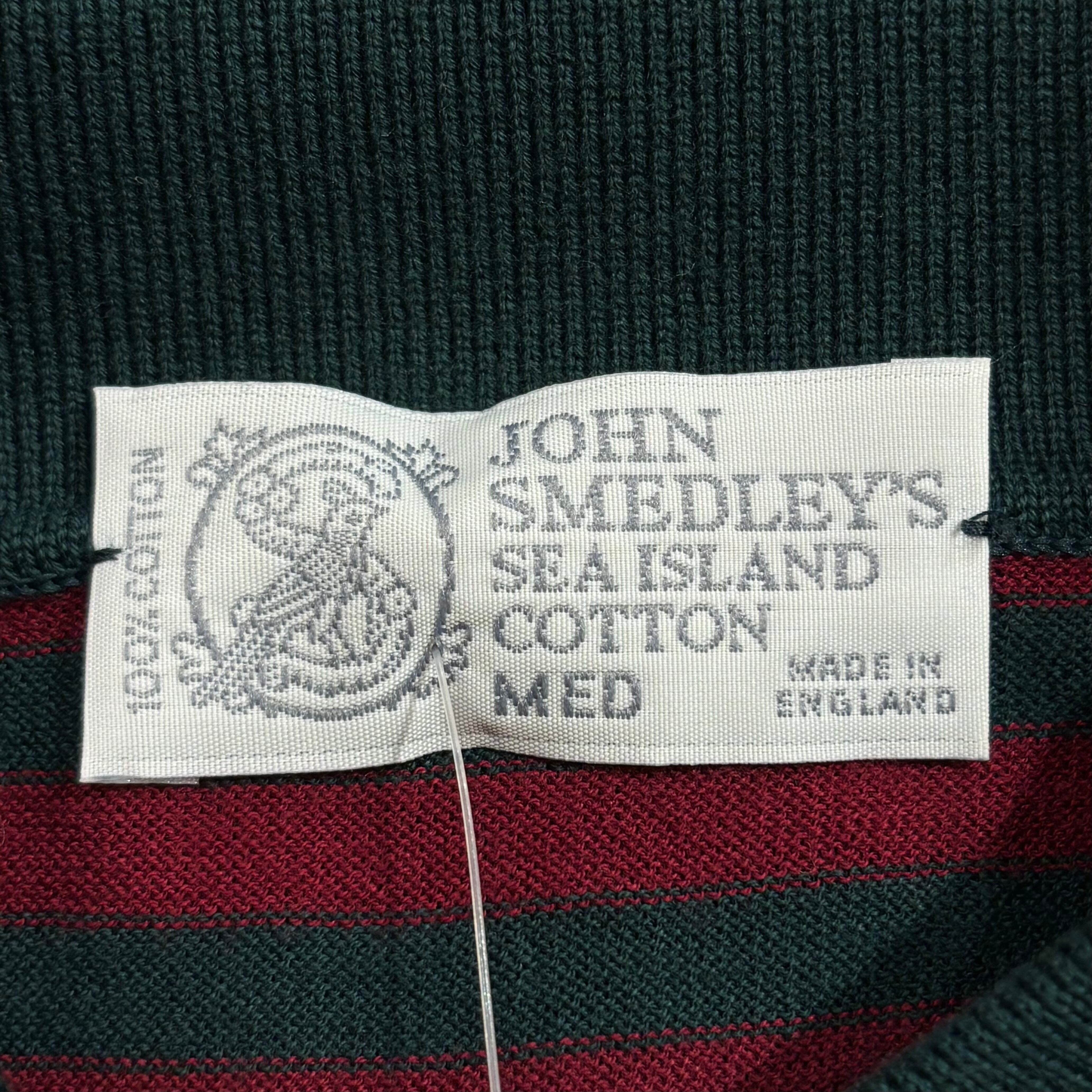 Johnsmedley Deadstock Mサイズ シーアイランドコットン グリーン×バーガンディボーダー 半袖ニットポロ デッドストック ジョンスメドレー イングランド製