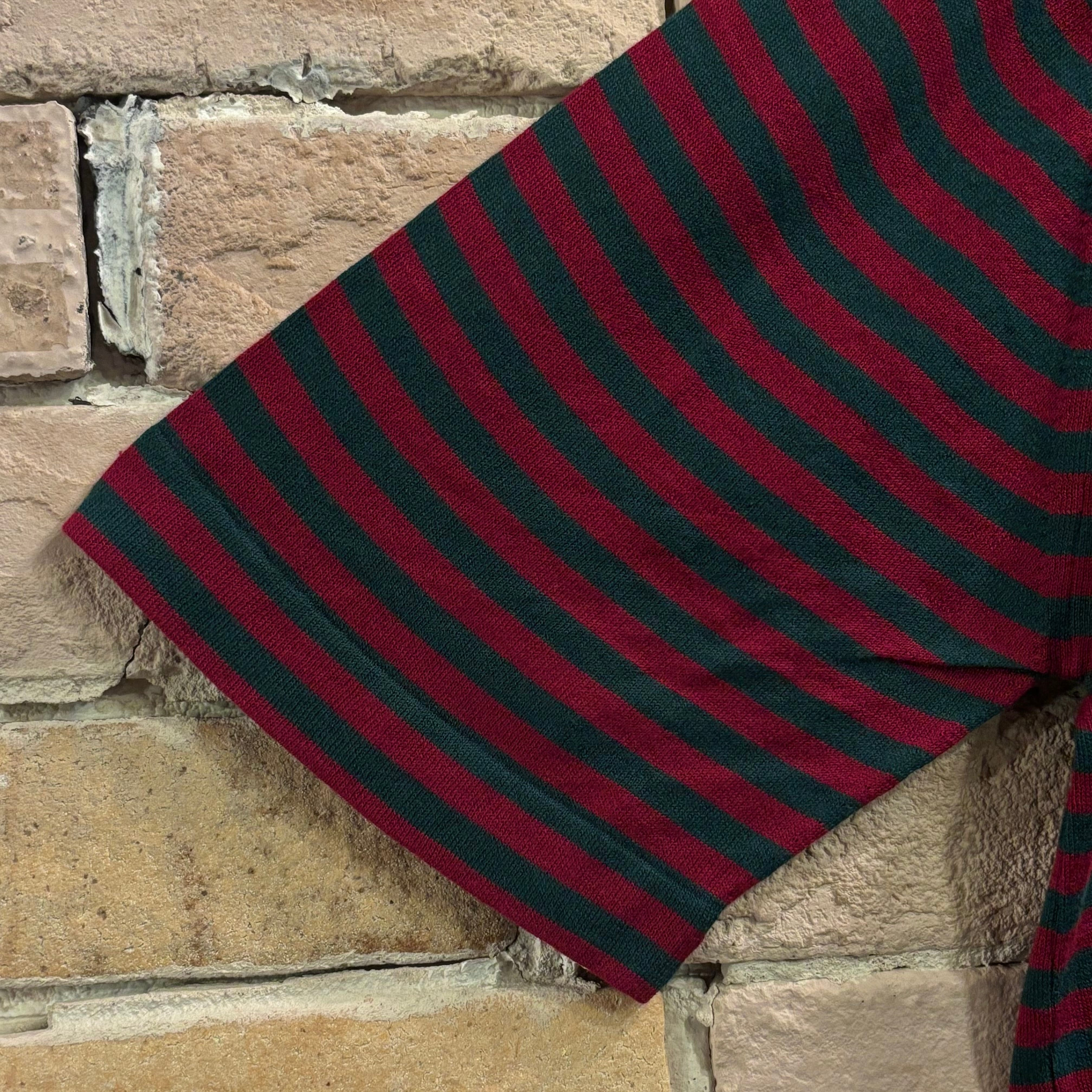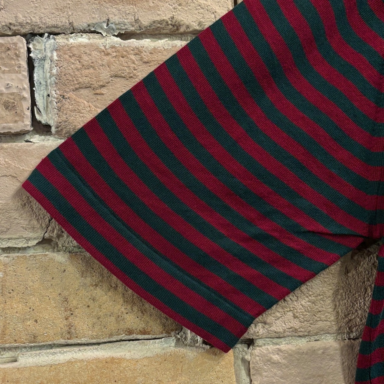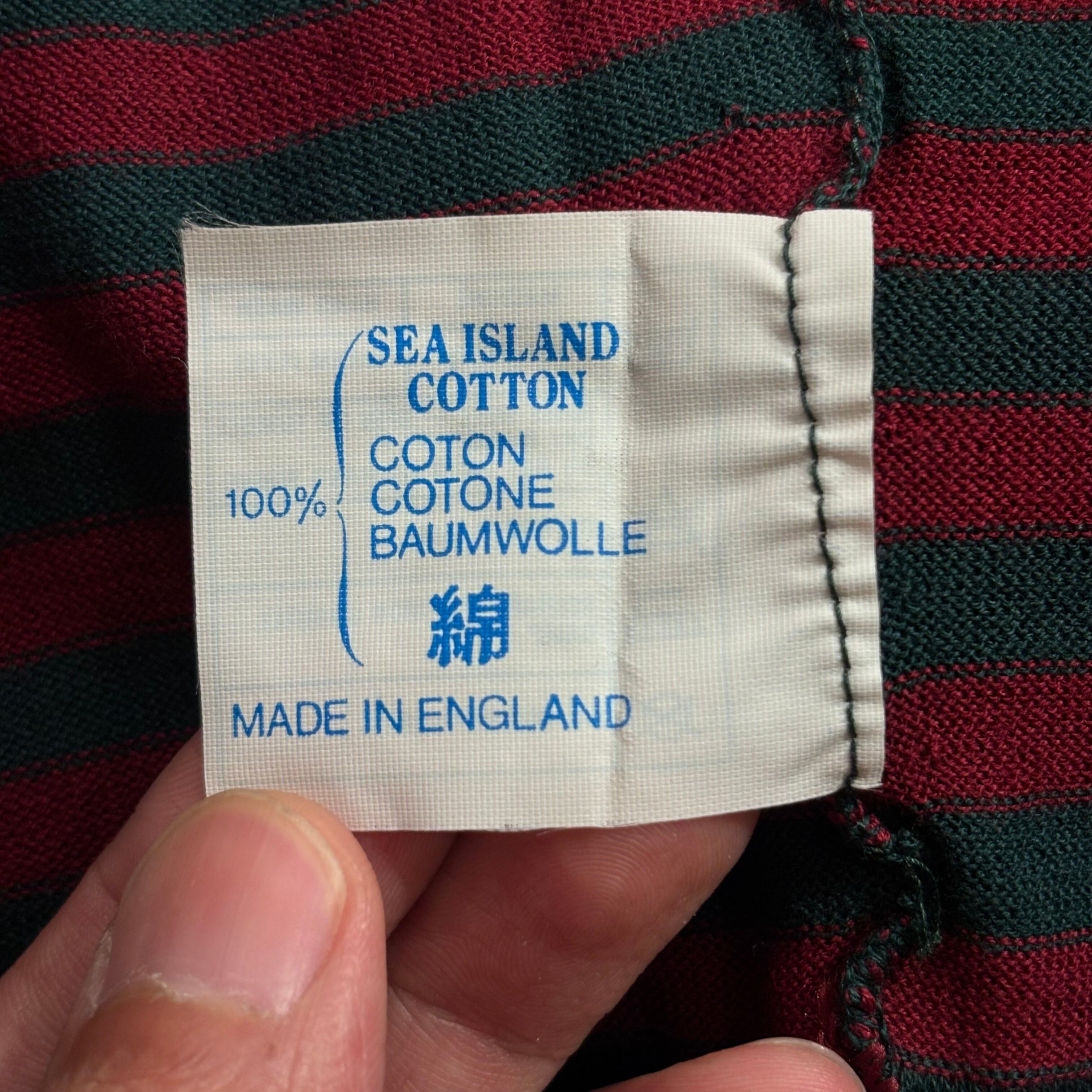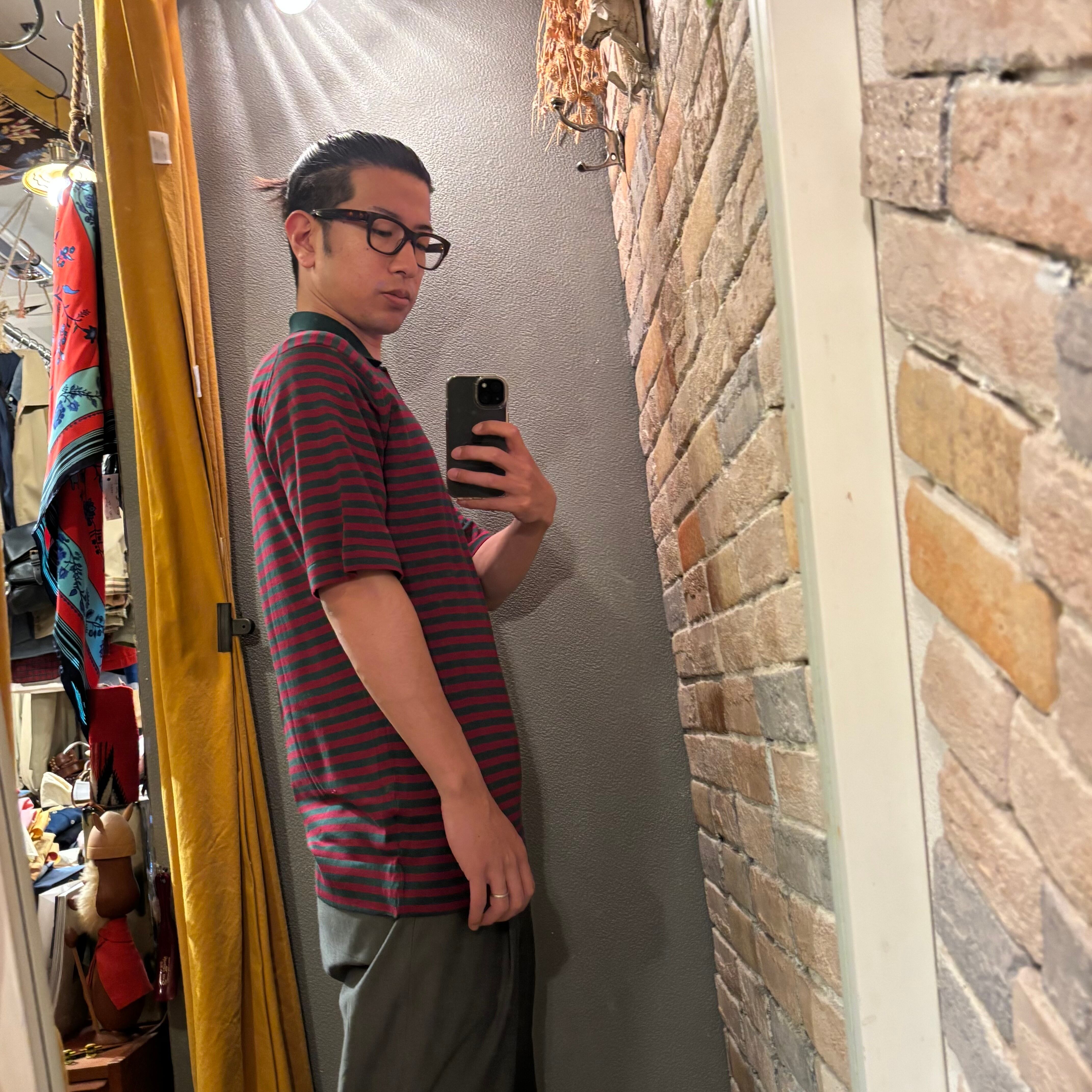 Johnsmedley Deadstock Mサイズ シーアイランドコットン グリーン×バーガンディボーダー 半袖ニットポロ デッドストック ジョンスメドレー イングランド製