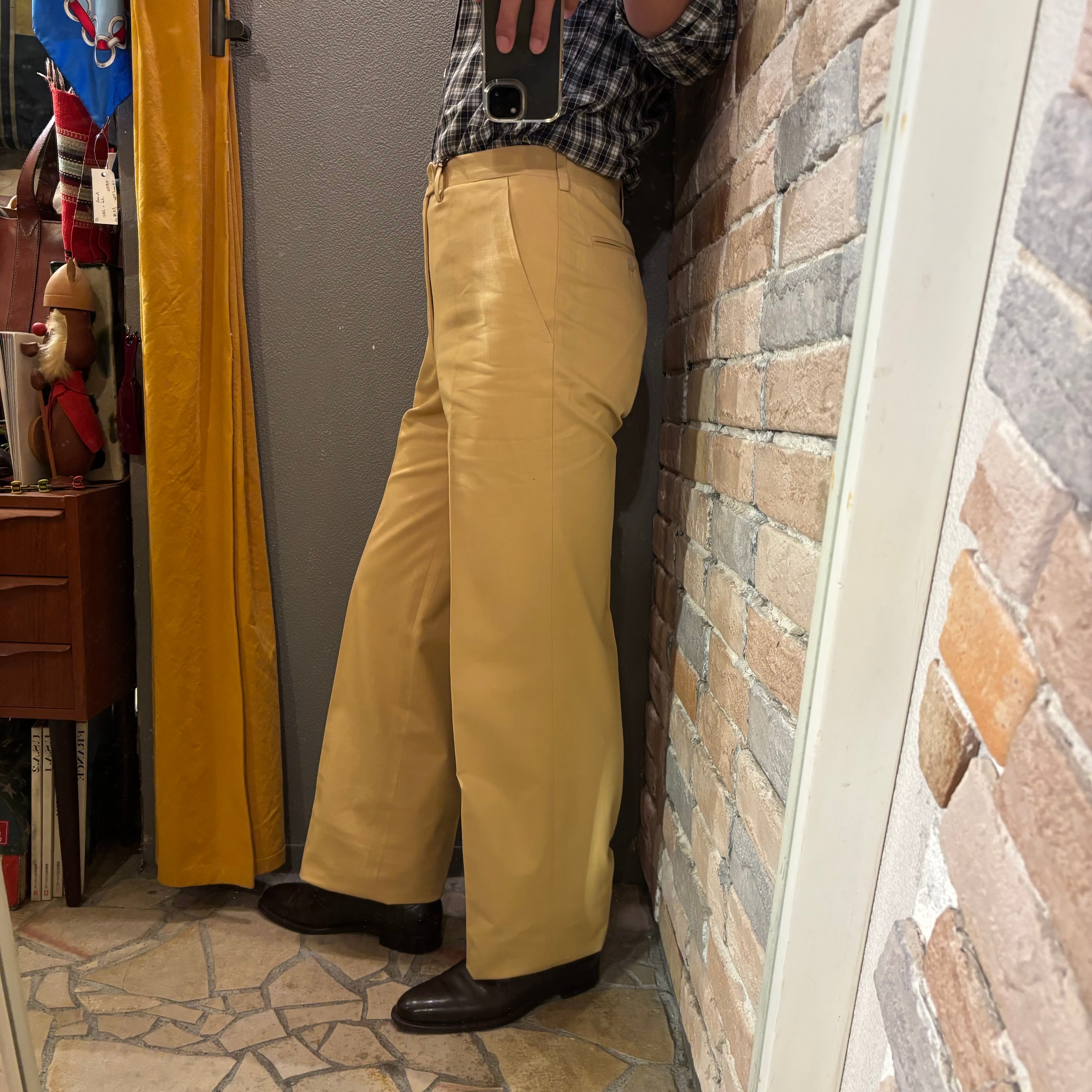 柔らかな色合いのコットン生地に裾に掛けてのクラシックなシルエットが特徴的なデッドストックのノープリーツトラウザーズ。