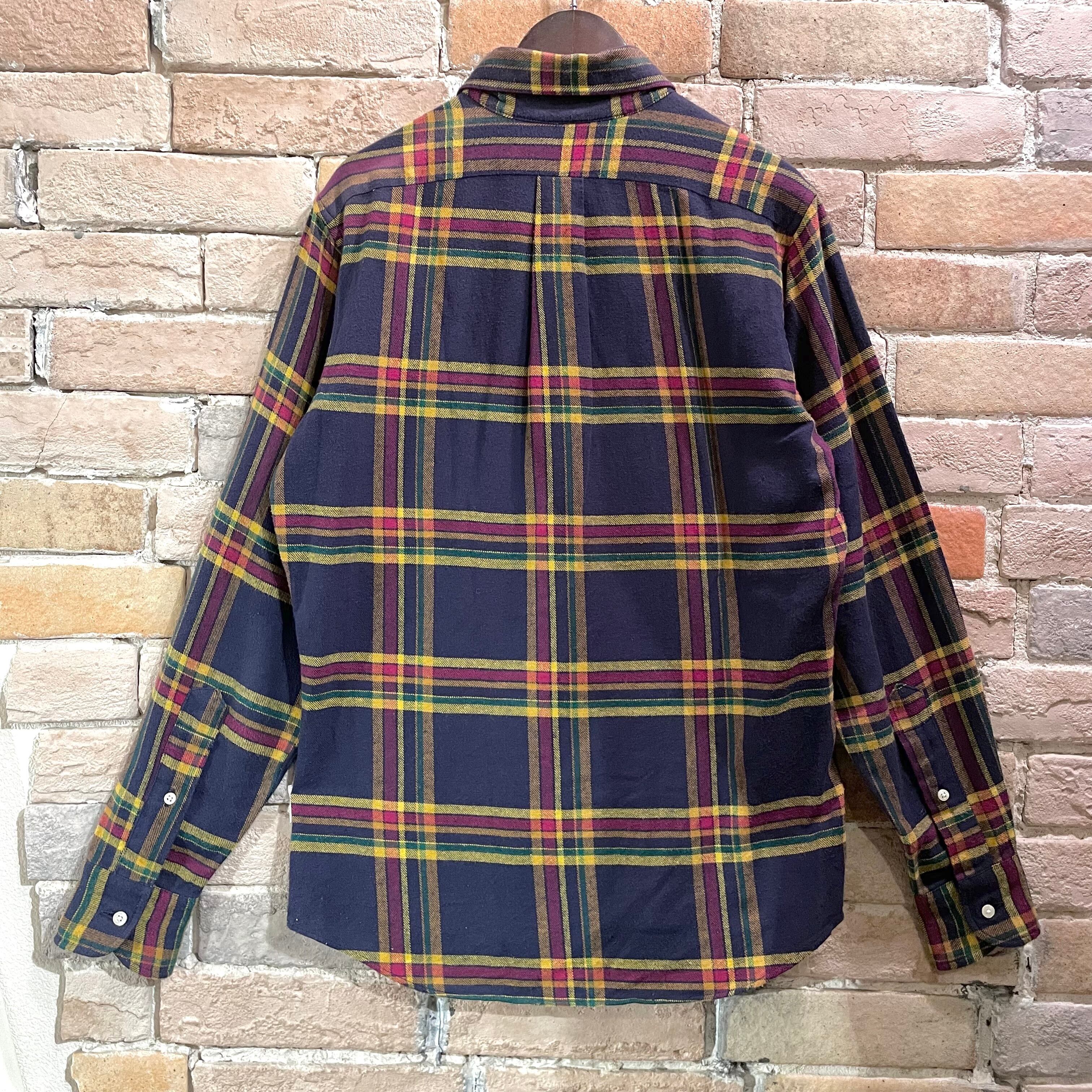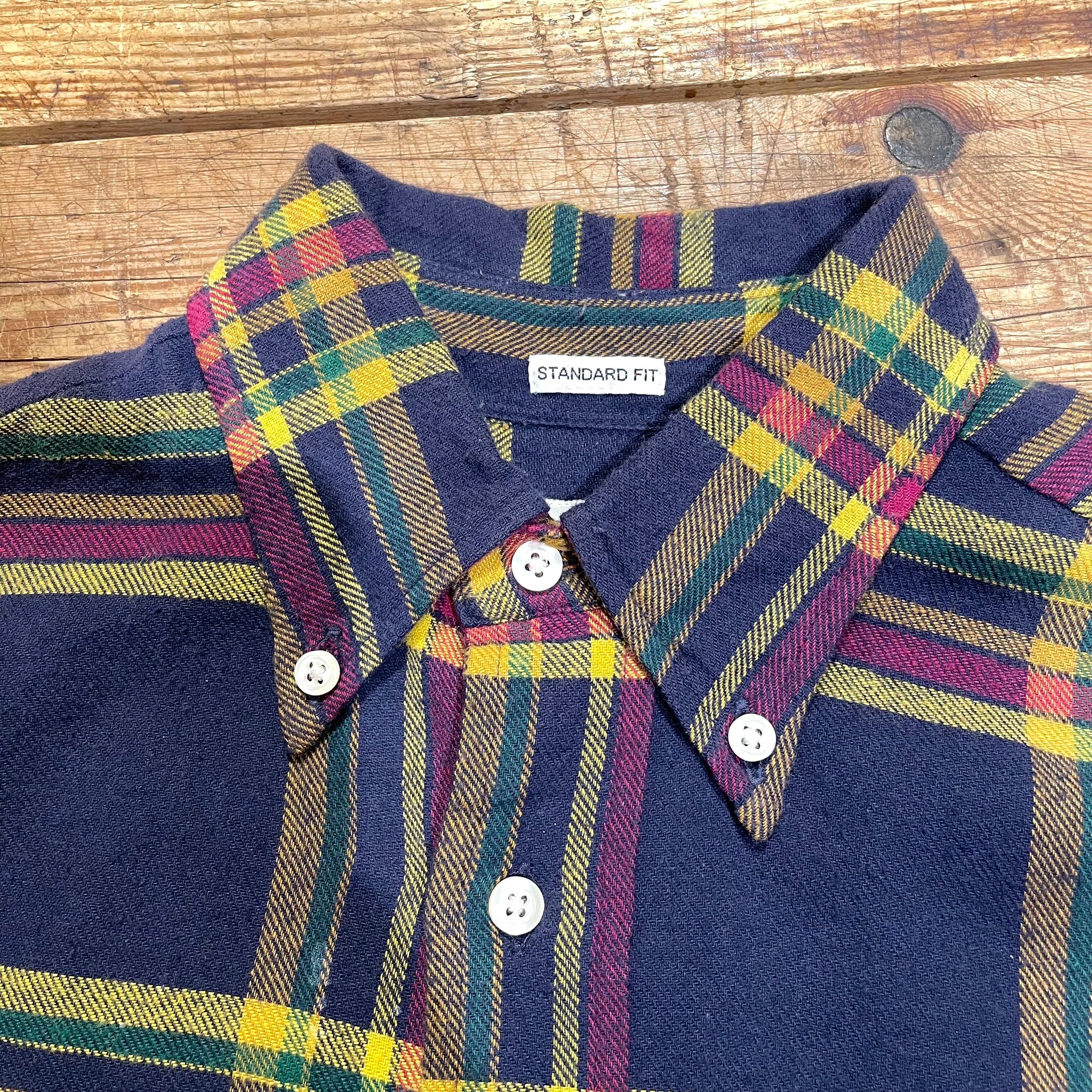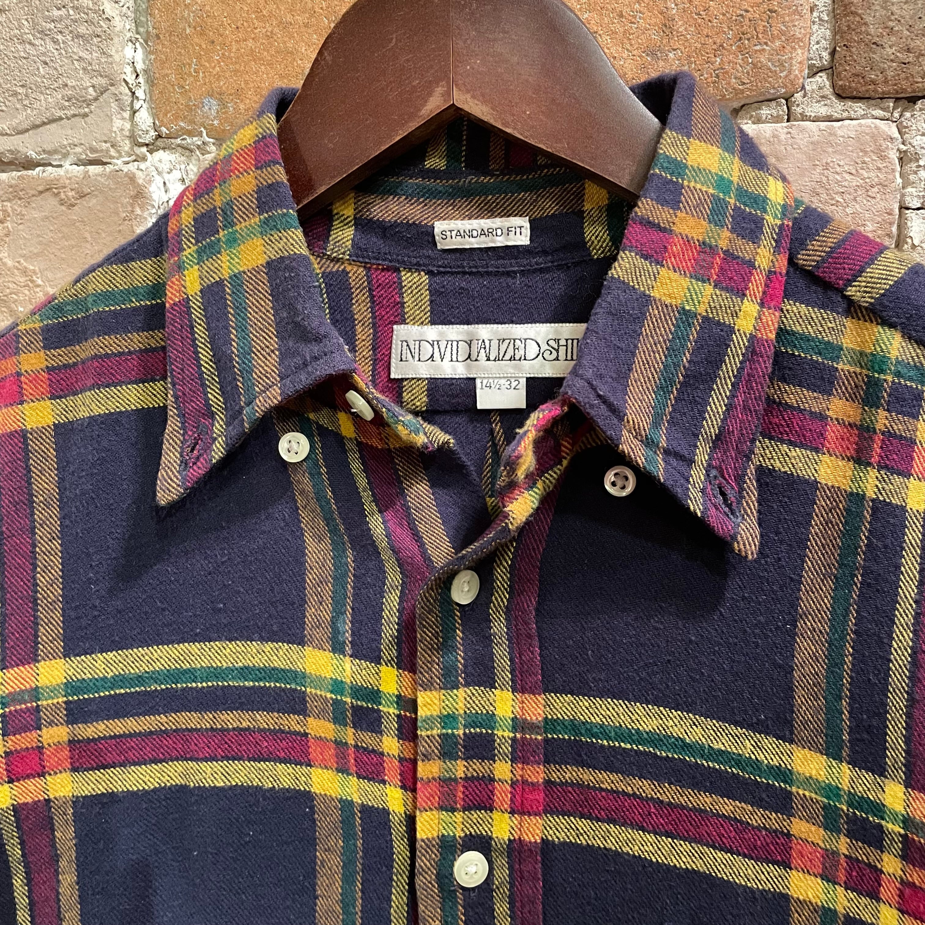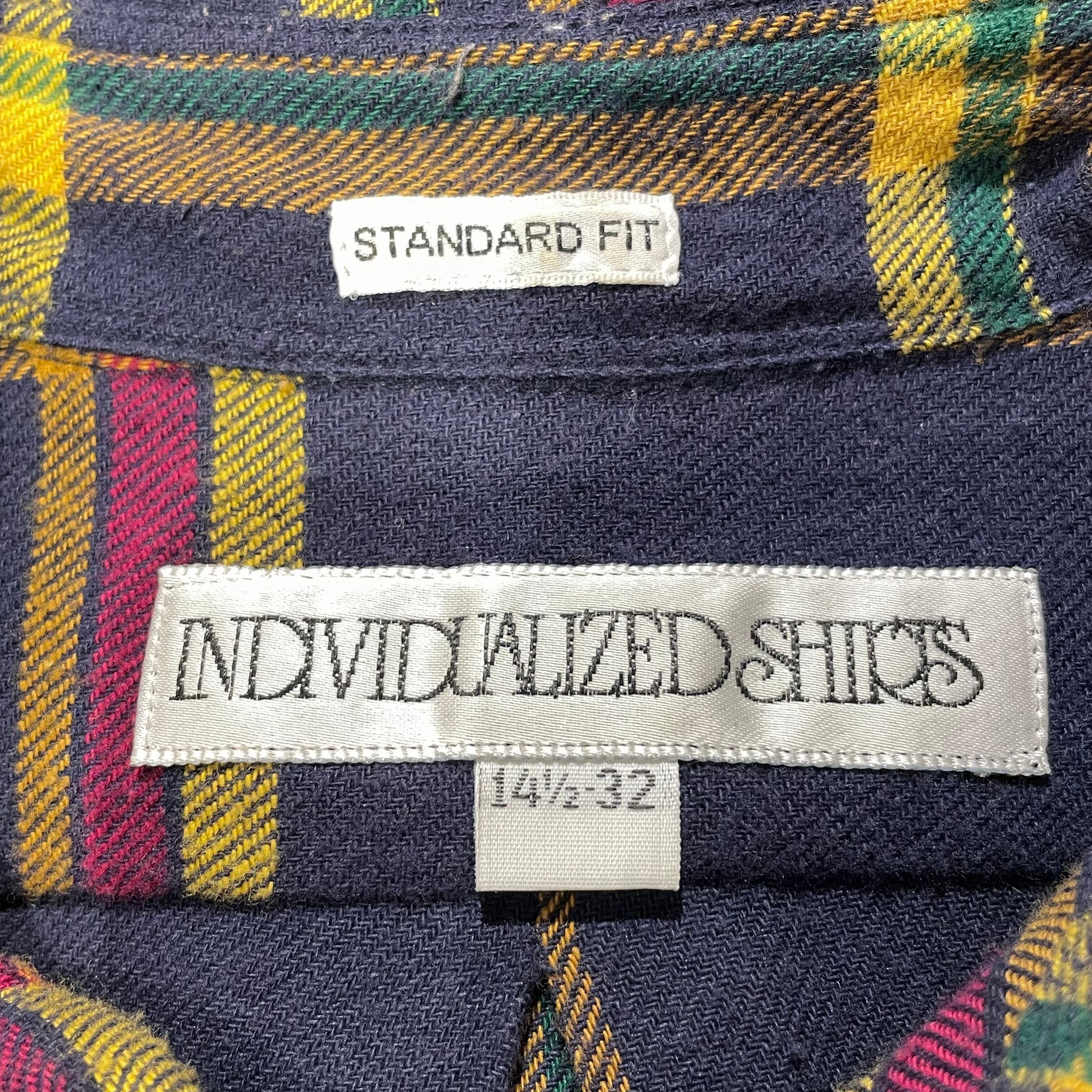 Individualized Shirts "flannel shirt" size14 1/2 standard fit USA製 ネイビー イエロー フランネルシャツ チェック ボタンダウンシャツ インディビジュアライズドシャツ