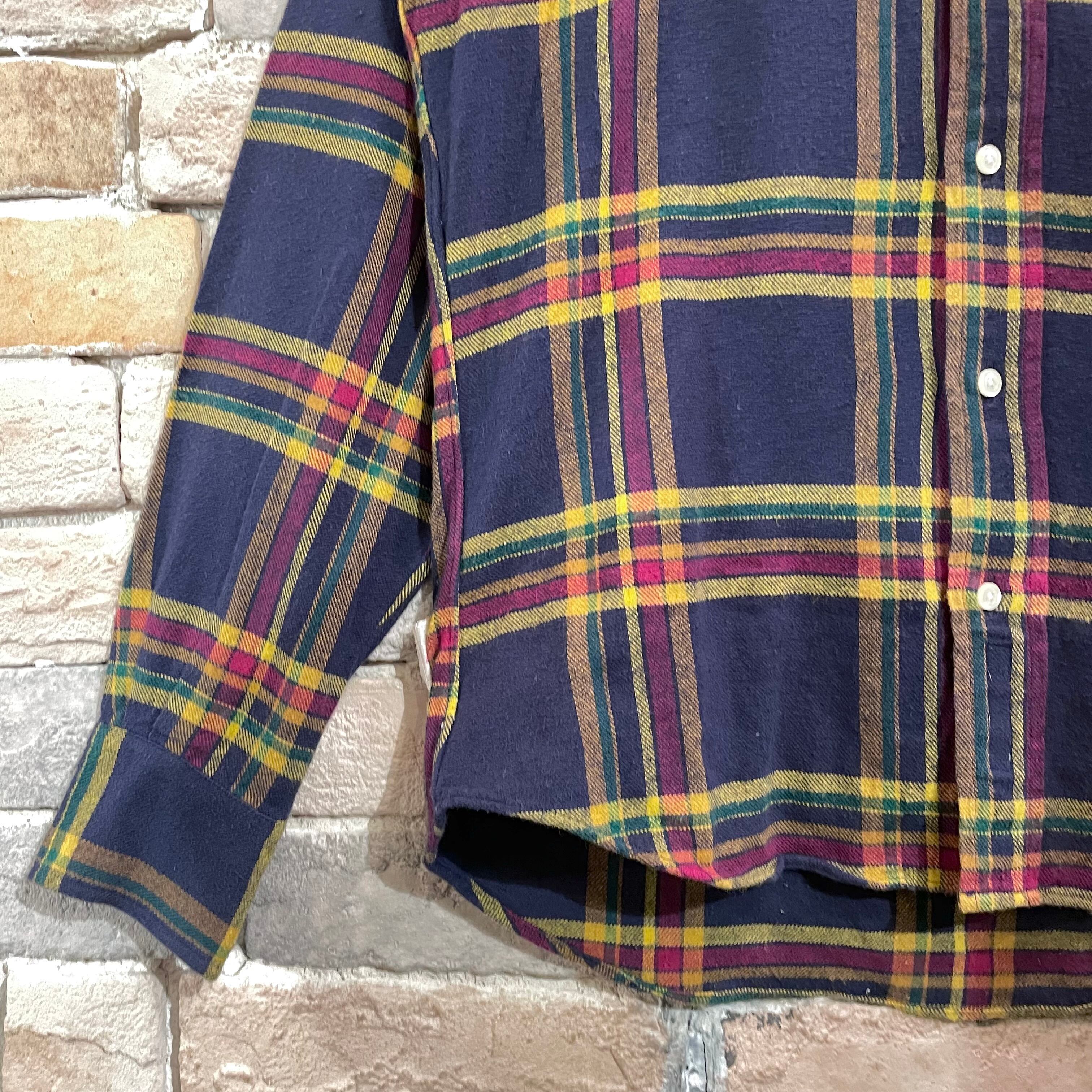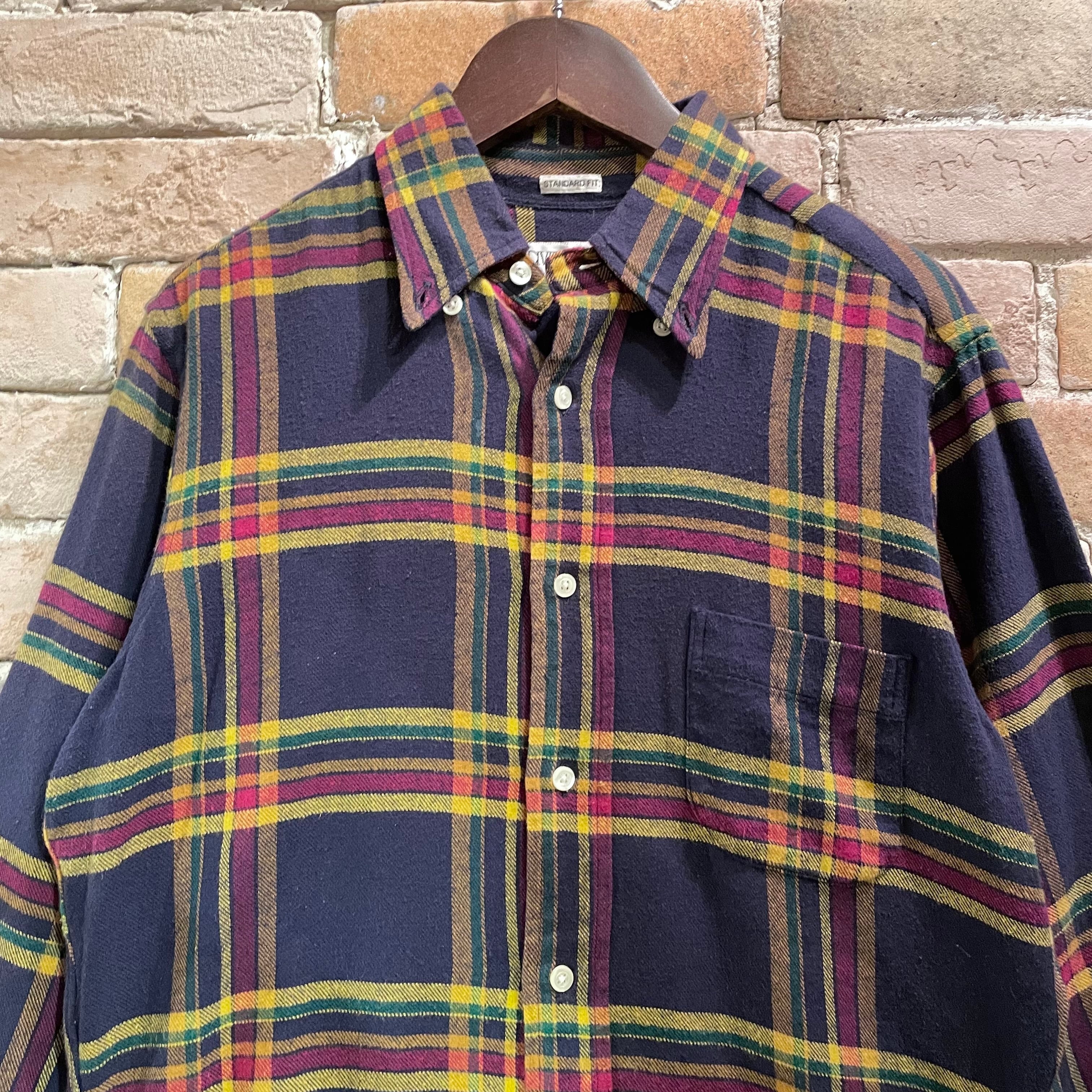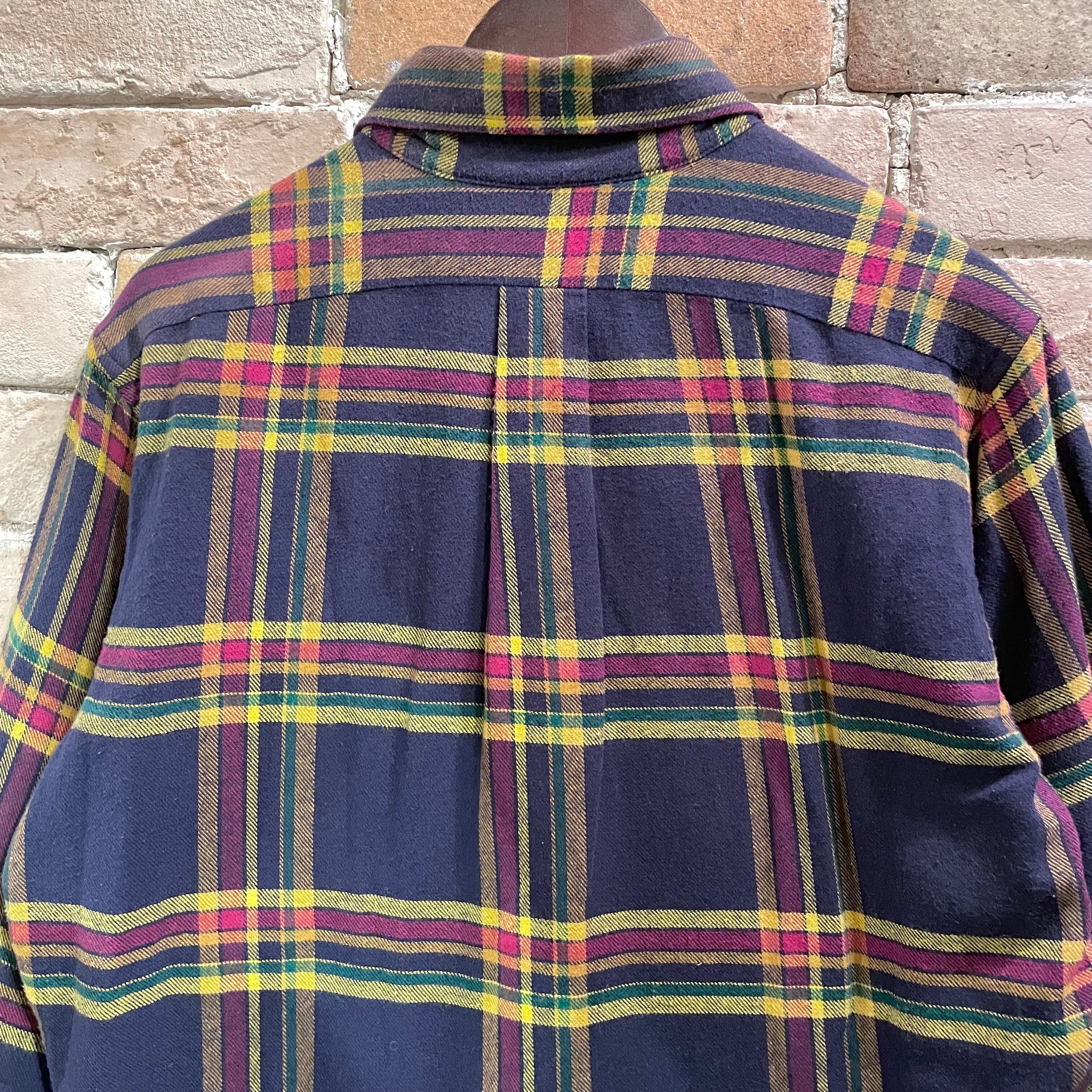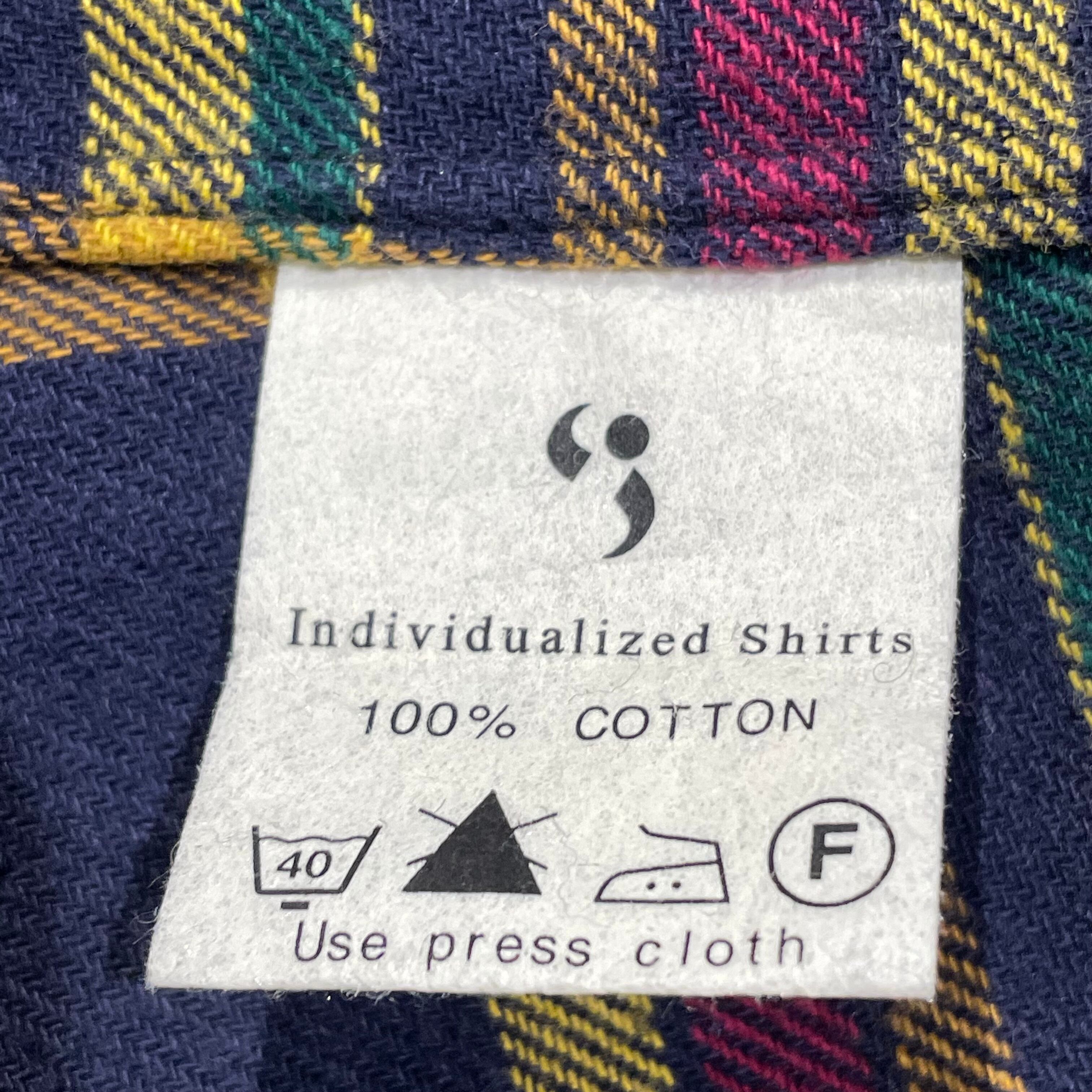 Individualized Shirts "flannel shirt" size14 1/2 standard fit USA製 ネイビー イエロー フランネルシャツ チェック ボタンダウンシャツ インディビジュアライズドシャツ