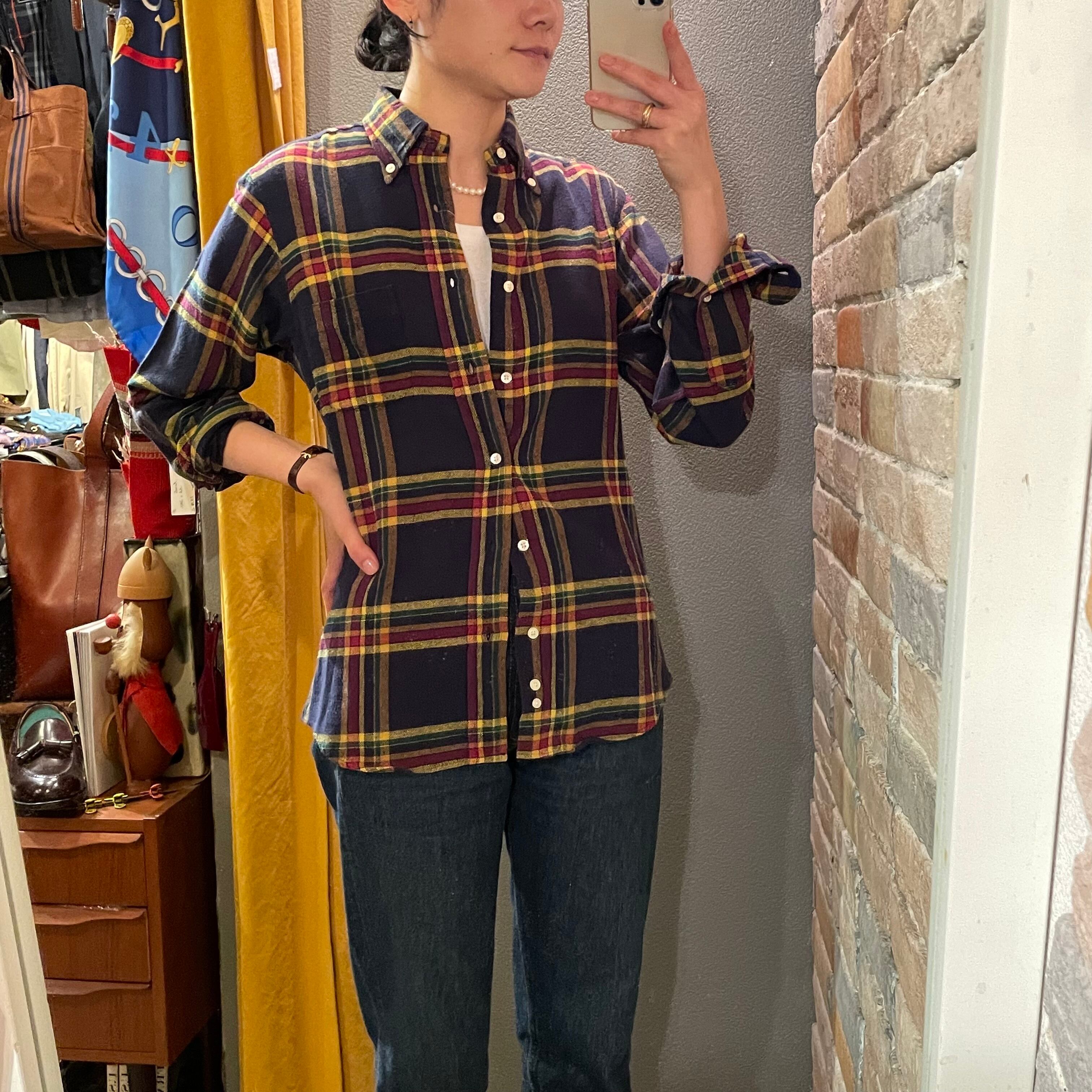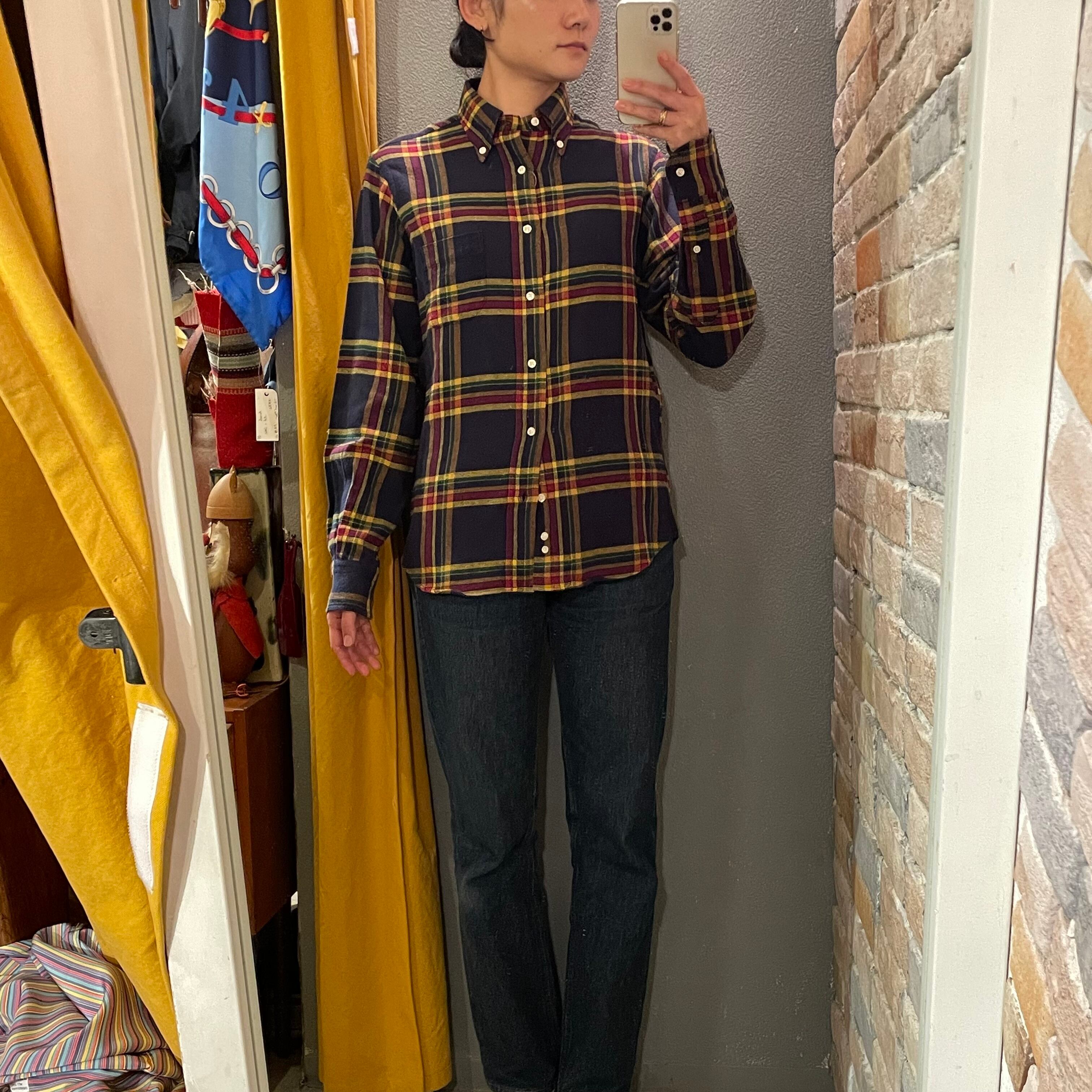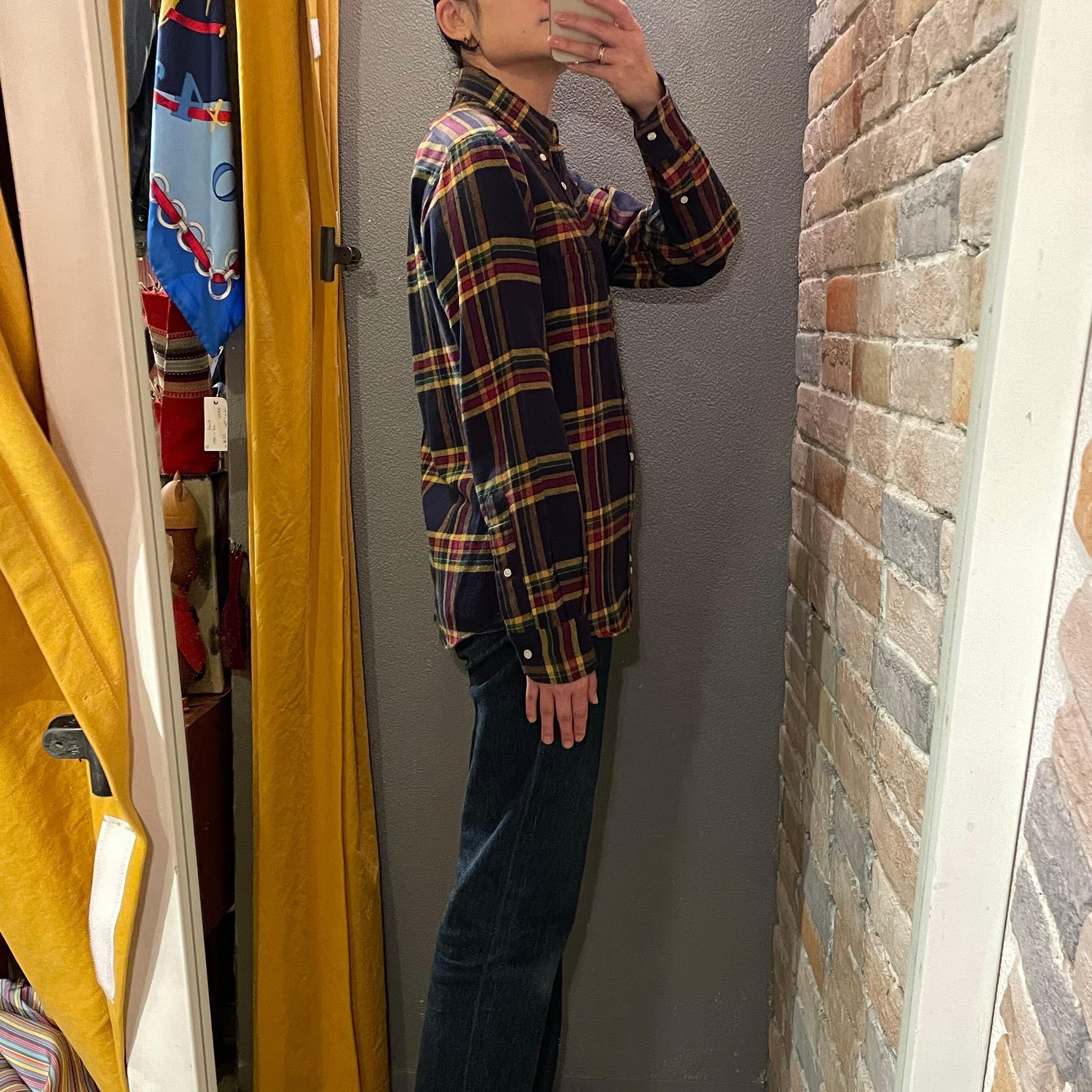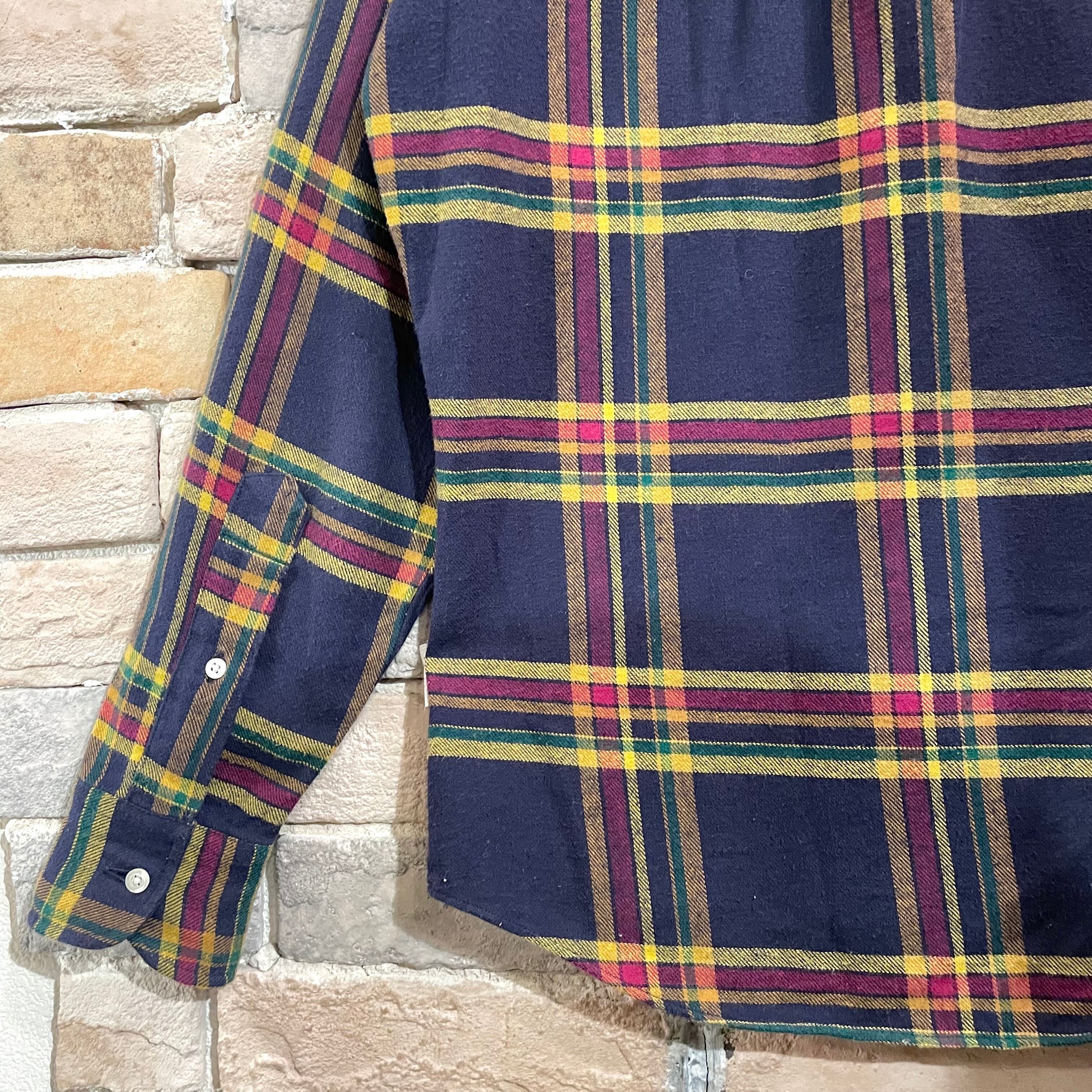 Individualized Shirts "flannel shirt" size14 1/2 standard fit USA製 ネイビー イエロー フランネルシャツ チェック ボタンダウンシャツ インディビジュアライズドシャツ