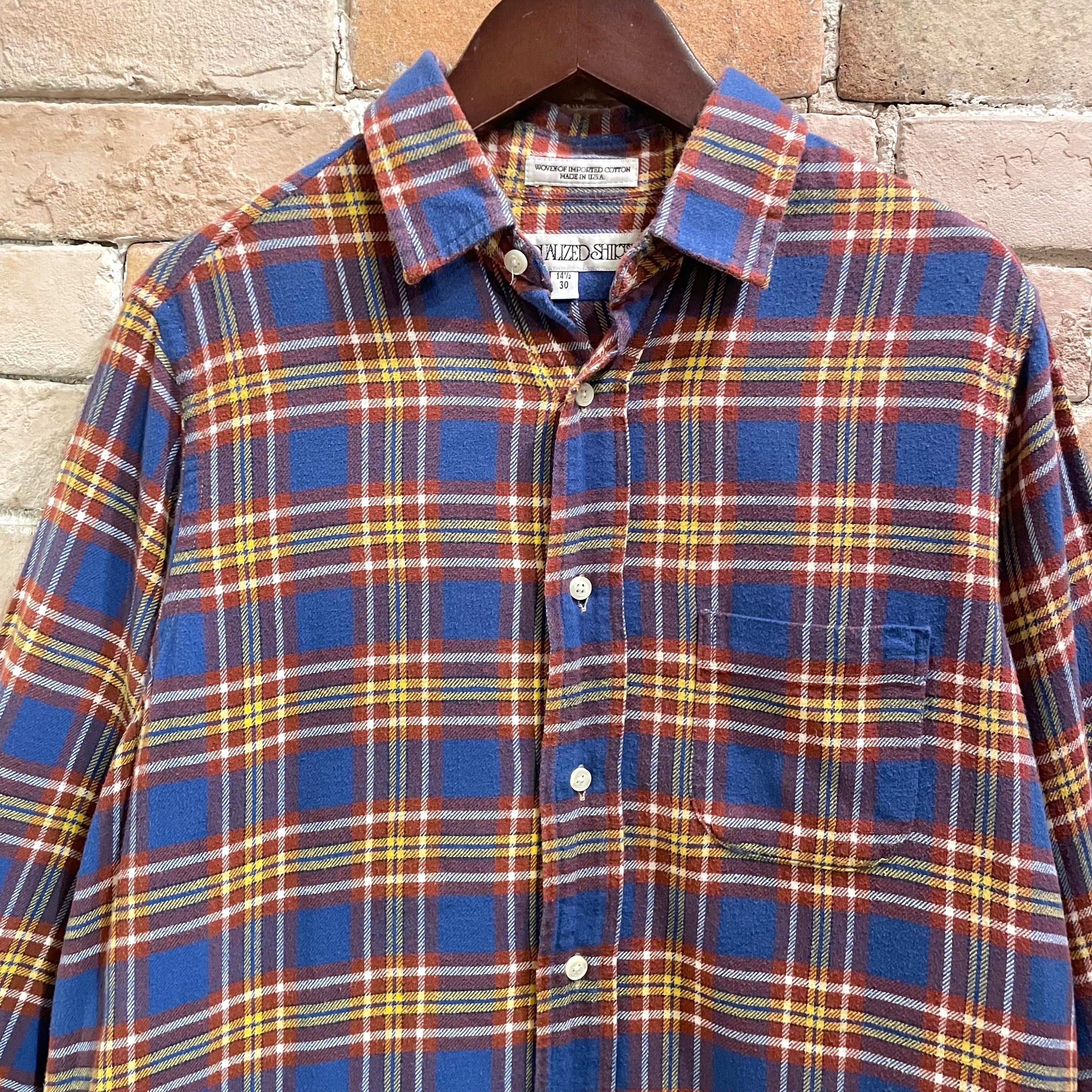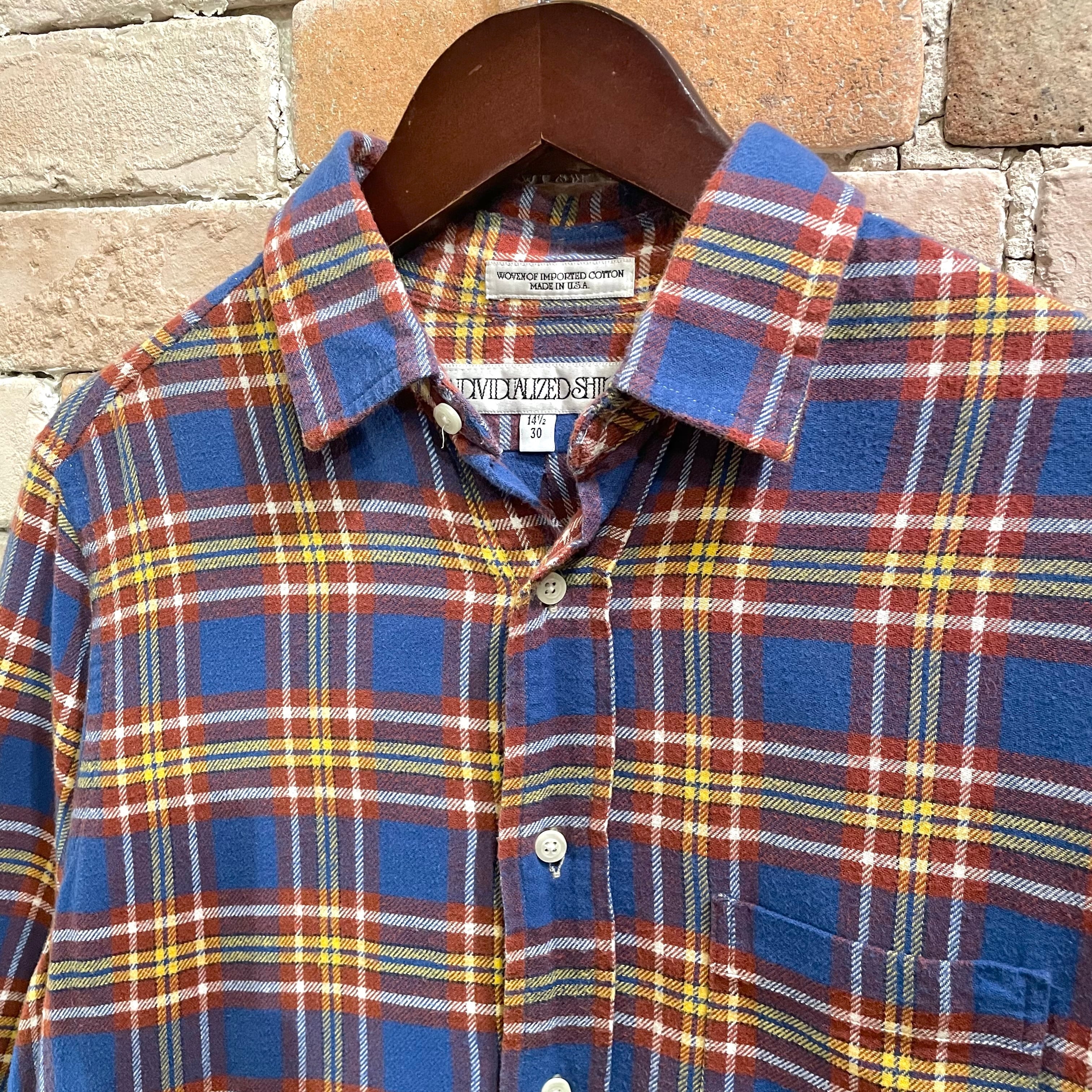Individualized Shirts "flannel long shirt" size14 1/2 USA製 ブルー イエロー フランネルシャツ チェック ボタンダウンシャツ インディビジュアライズドシャツ