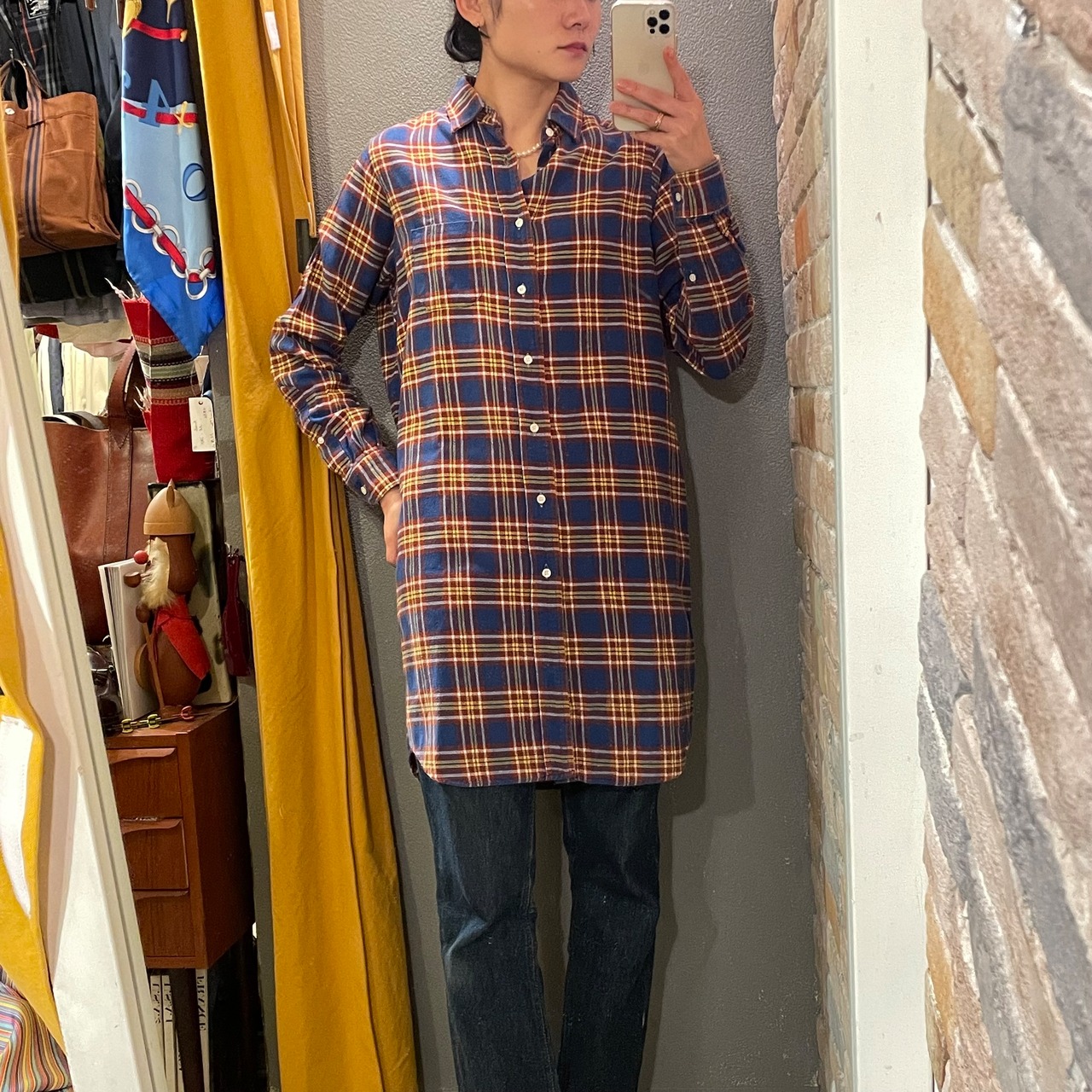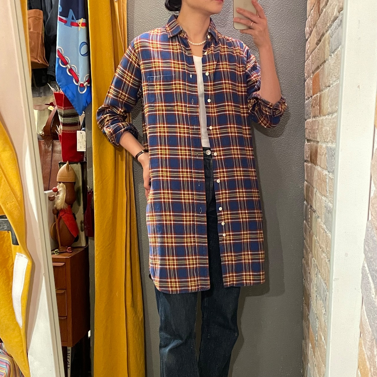 一枚ワンピースとしても重ね着用の羽織りとしても使いやすいフランネルロングシャツです。