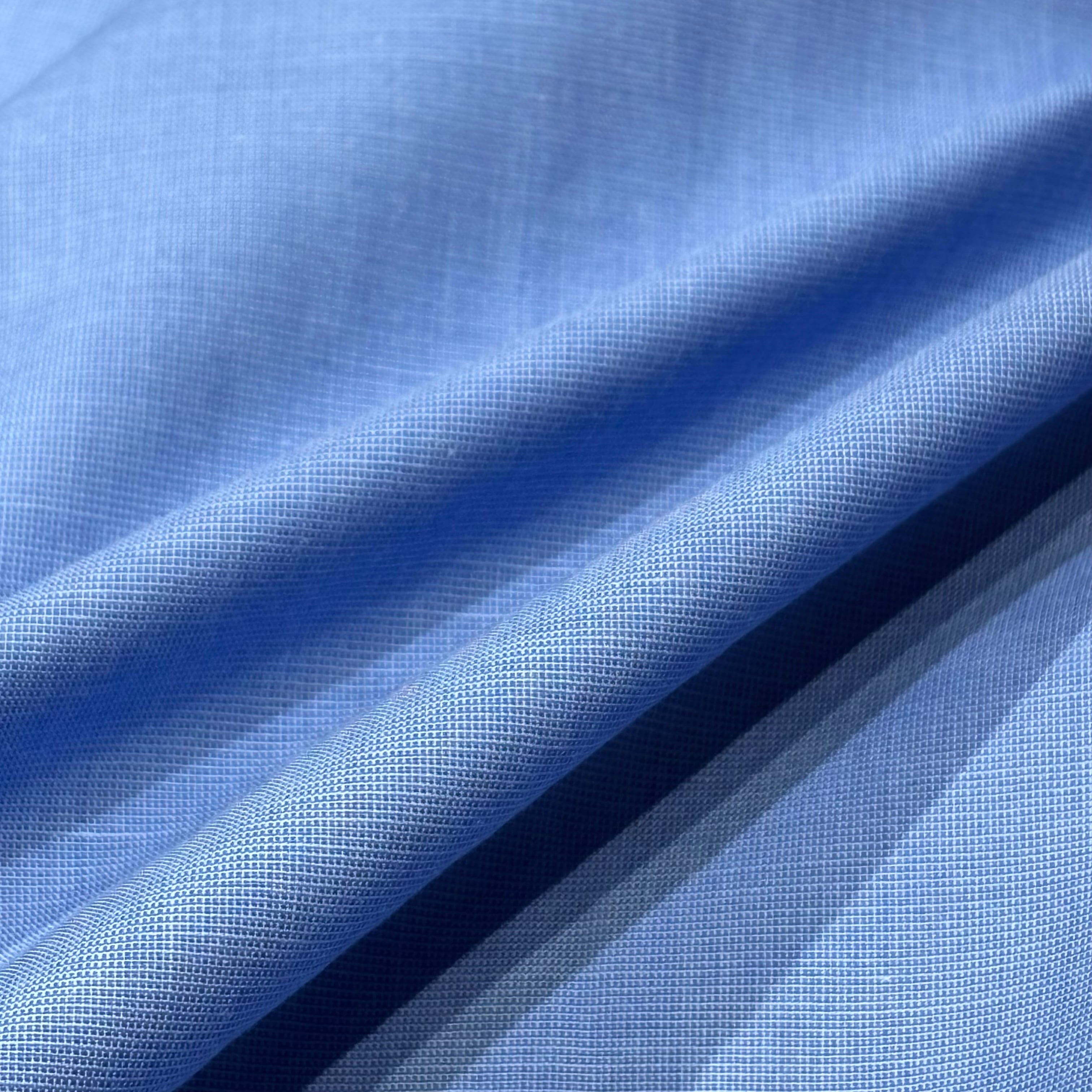 程良いゆとりに表情のあるハケメ生地の鮮やかなライトブルー色。