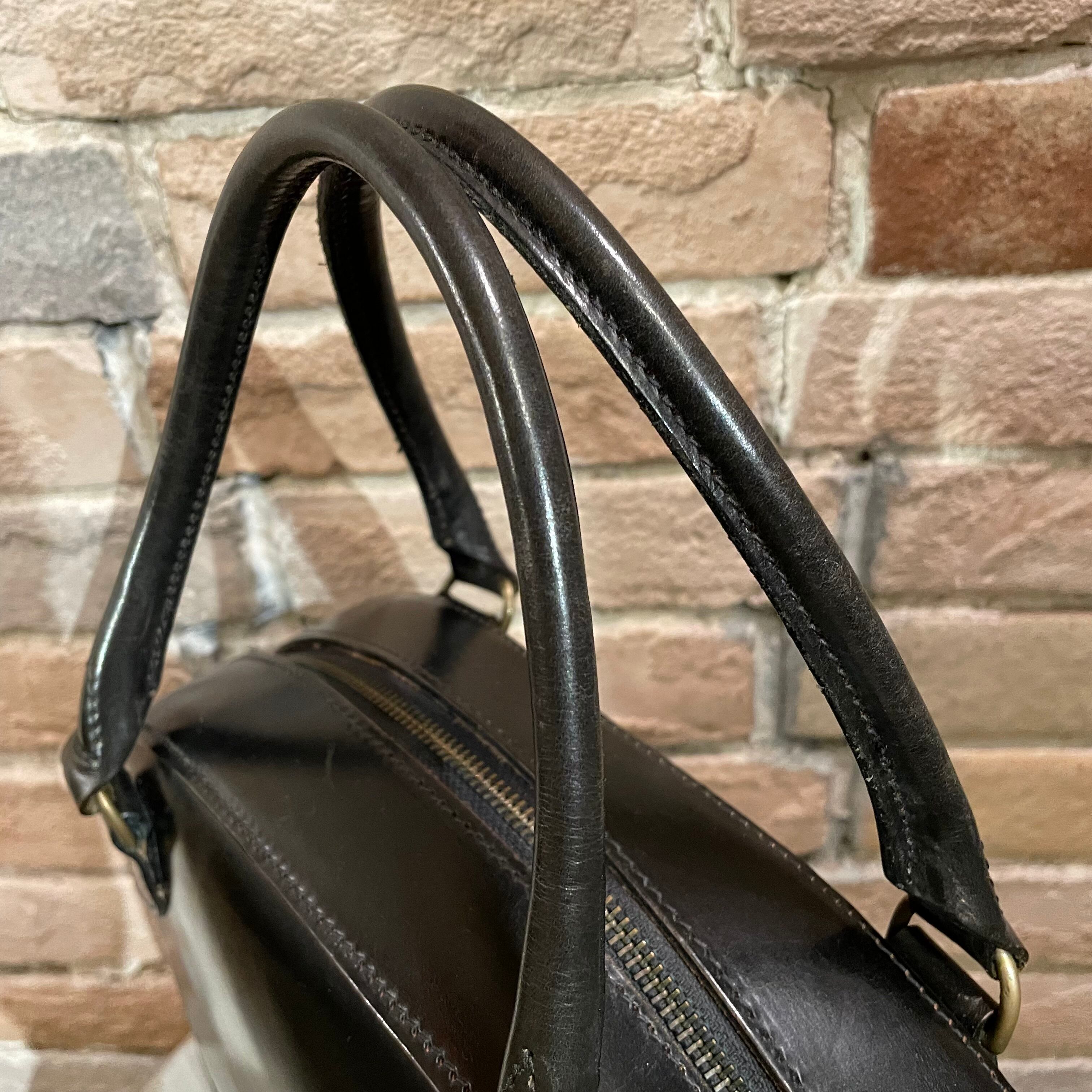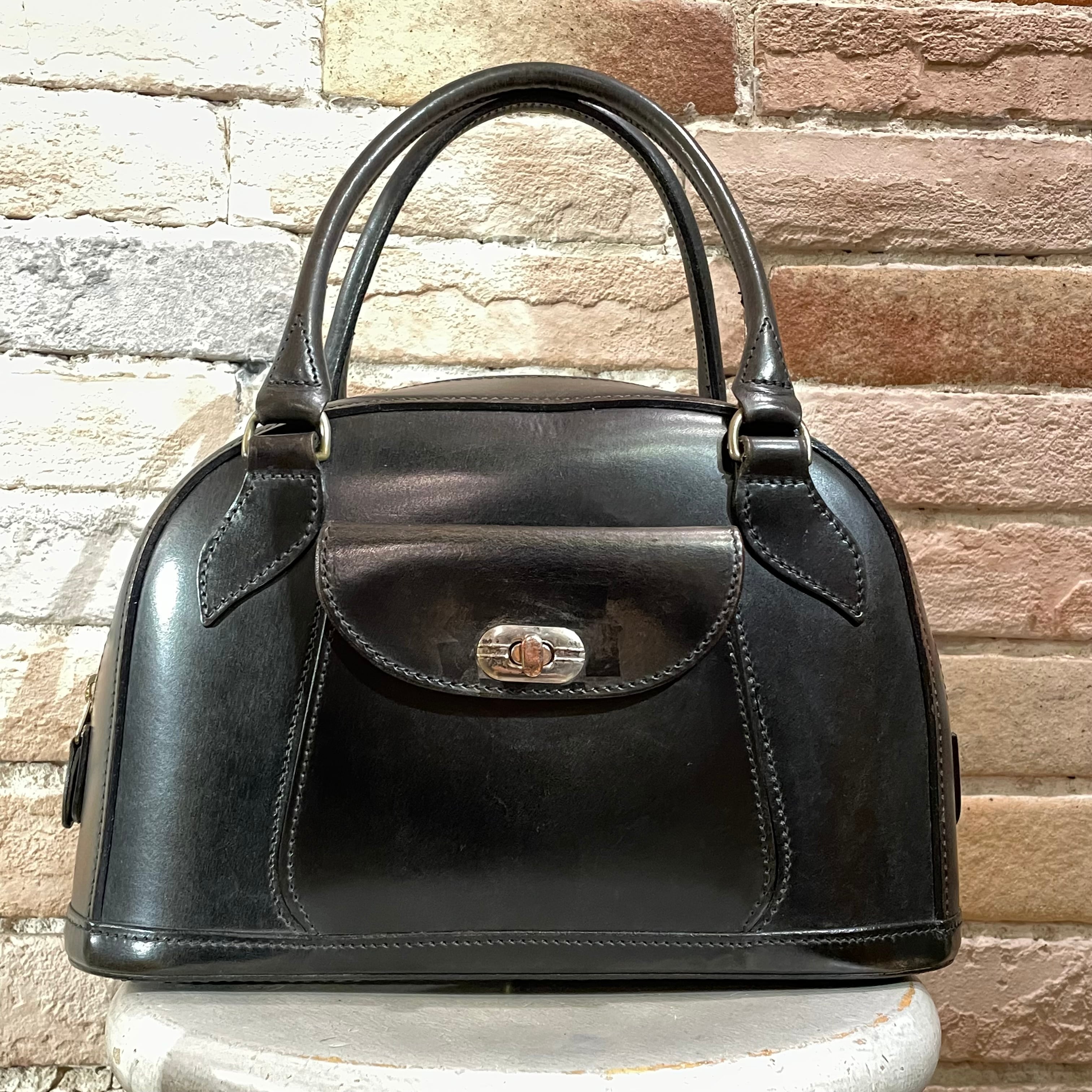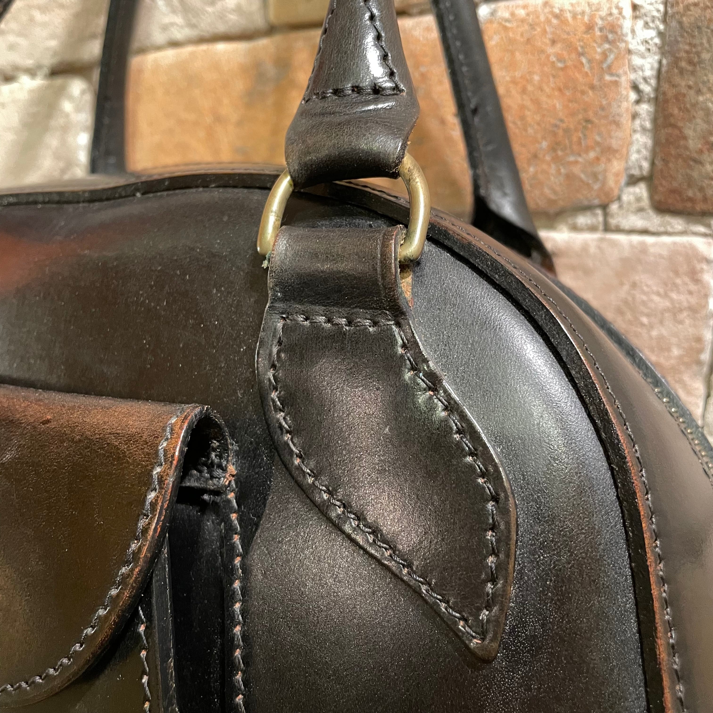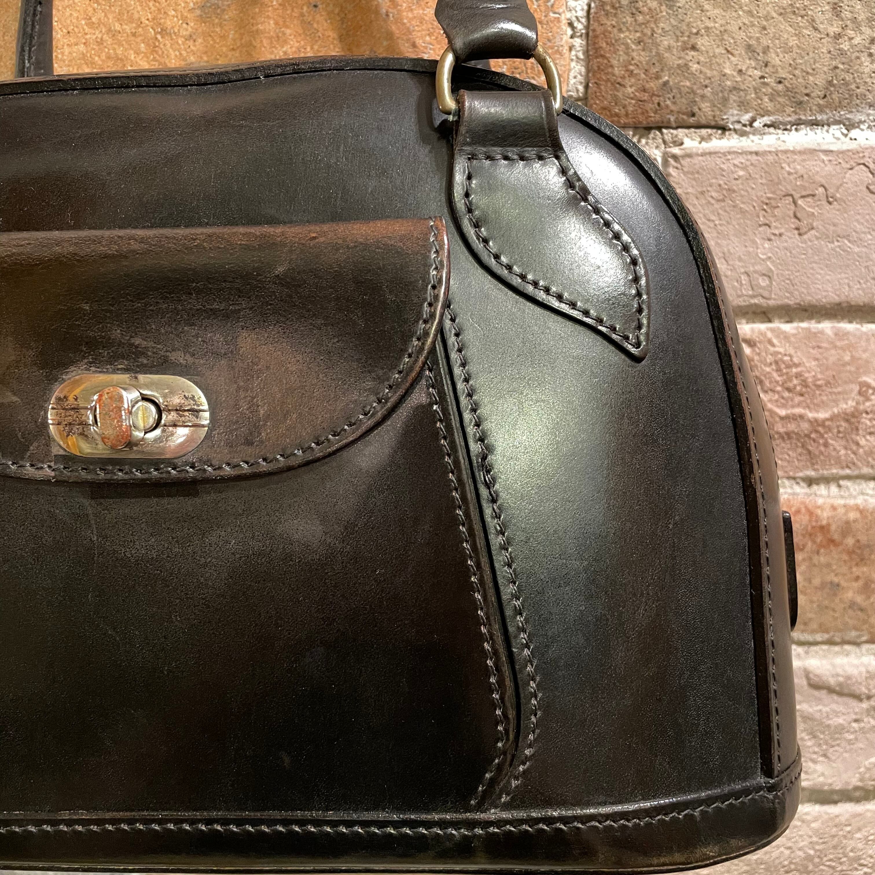 ブライドルレザーの独特の光沢感と厚みのある一枚革を使用したクラシカルなハンドバッグ。