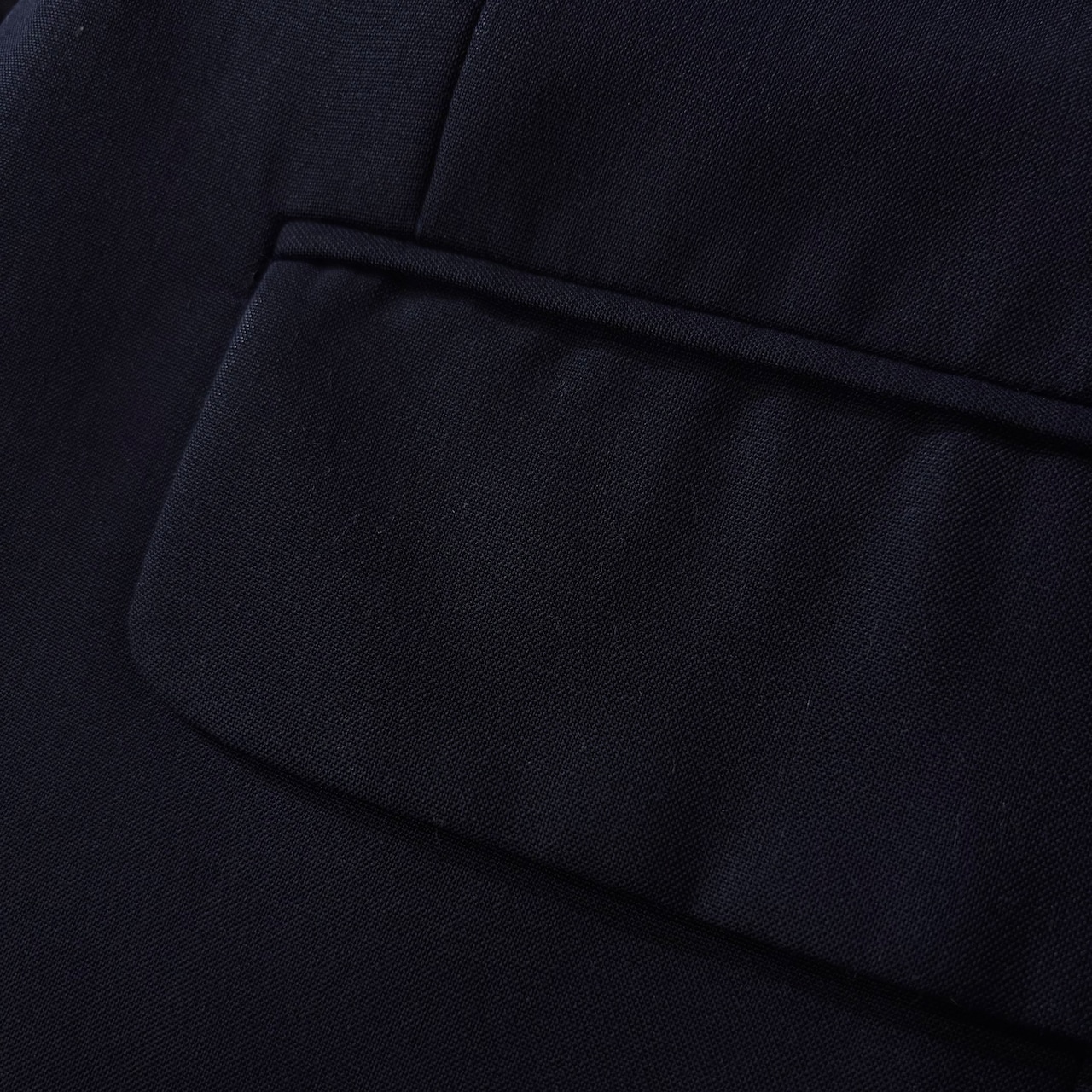 トラディショナな雰囲気を感じる英国的なシルエットのネイビーブレザー。