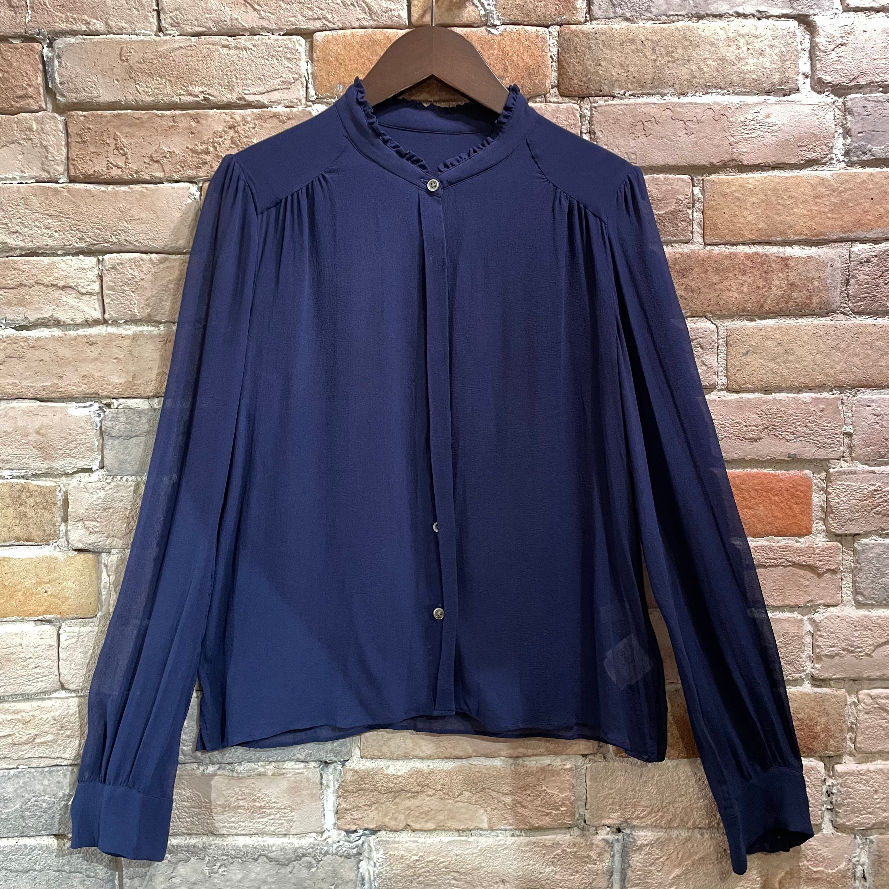 margarethowell “ladies silk blouse”navy size2 マーガレットハウエル レディース ネイビー シルクブラウス シャツ