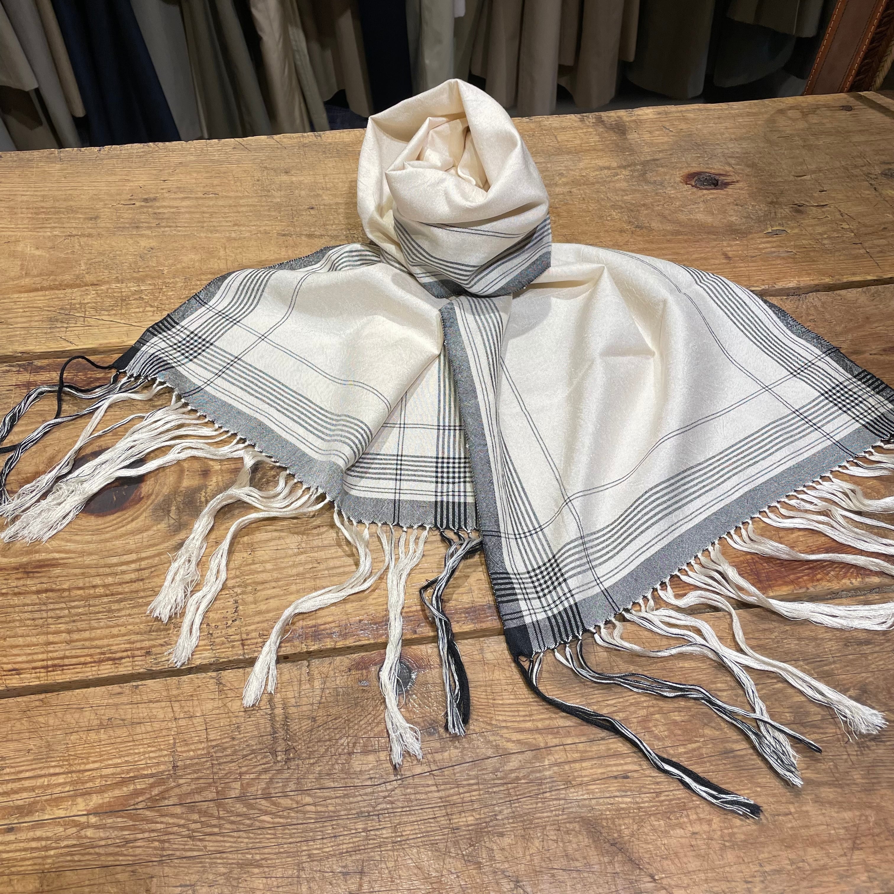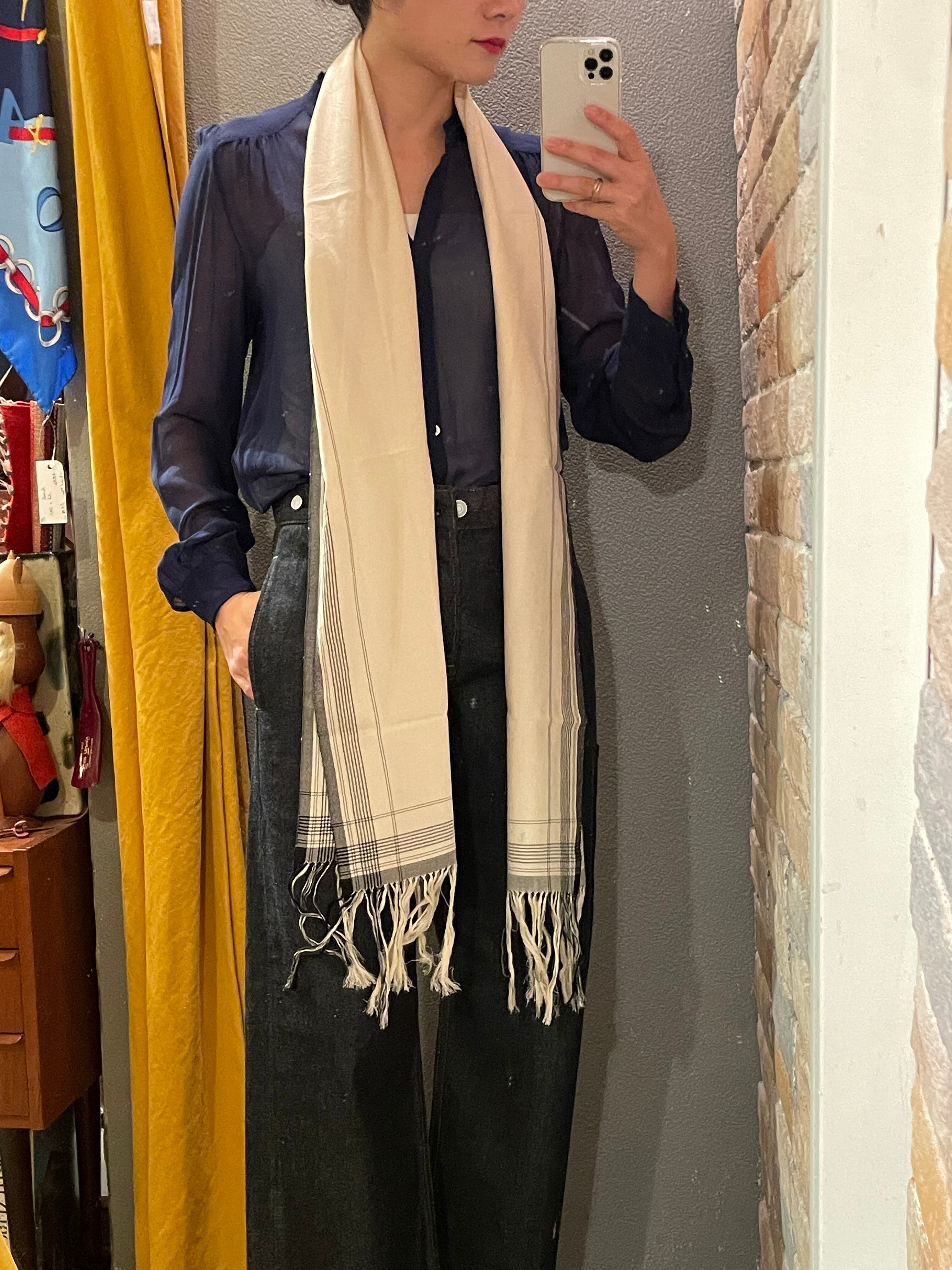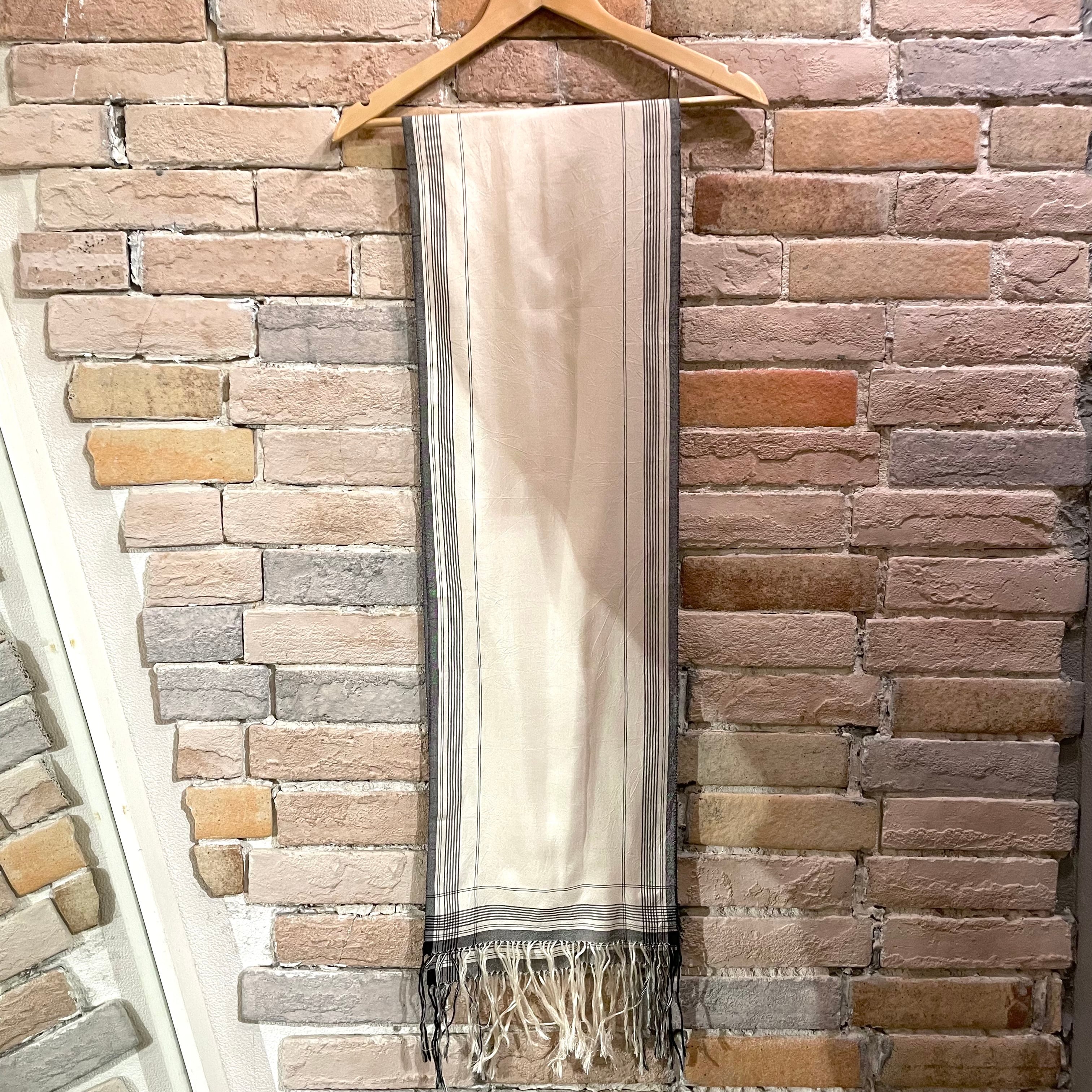margaret howell "silk stole" ivory×gray イギリス製 シルク ストール スカーフ マーガレットハウエル
