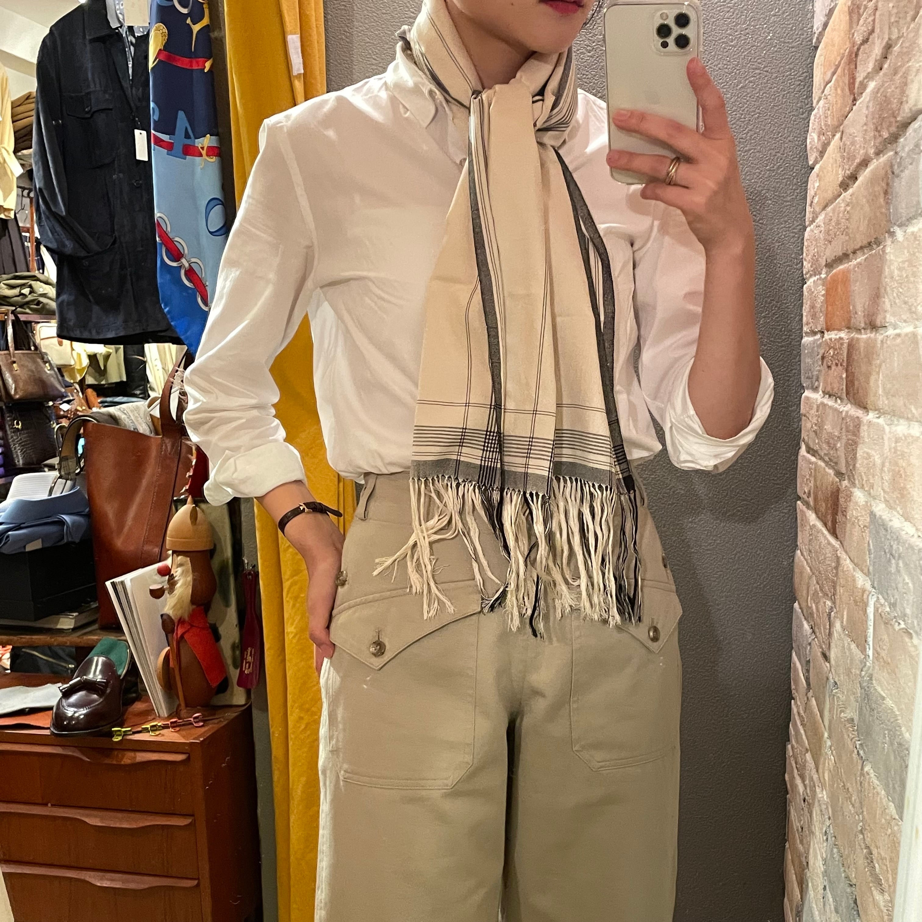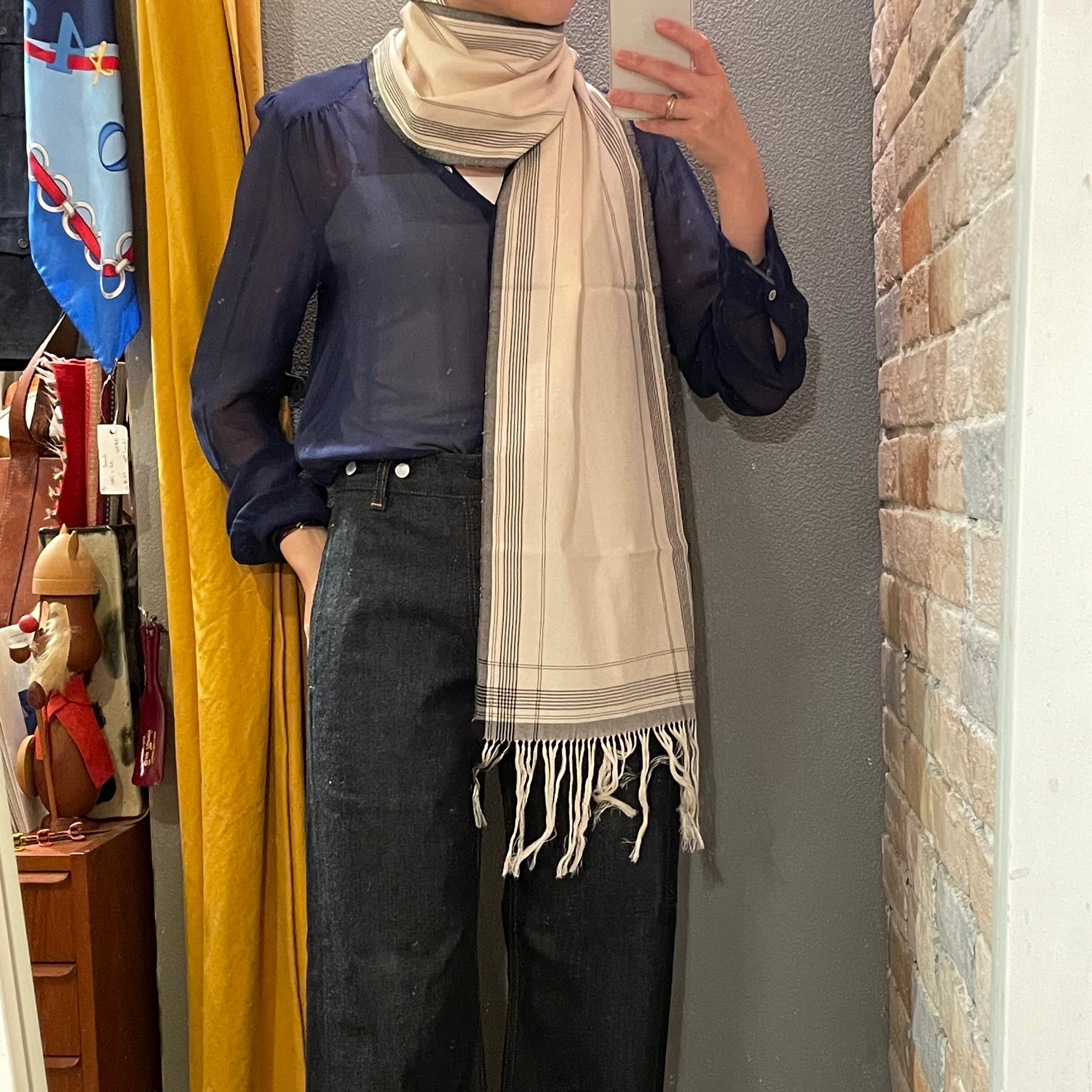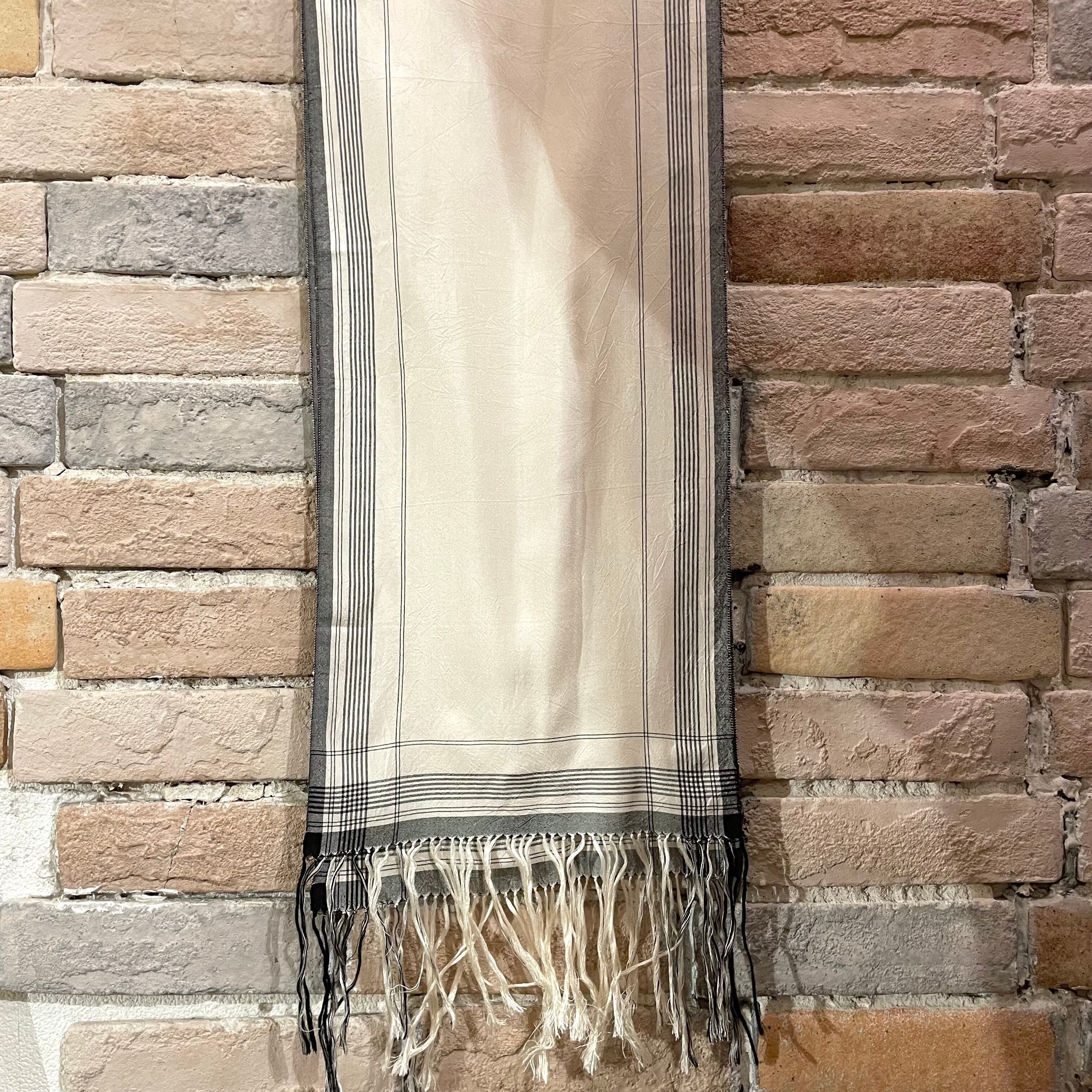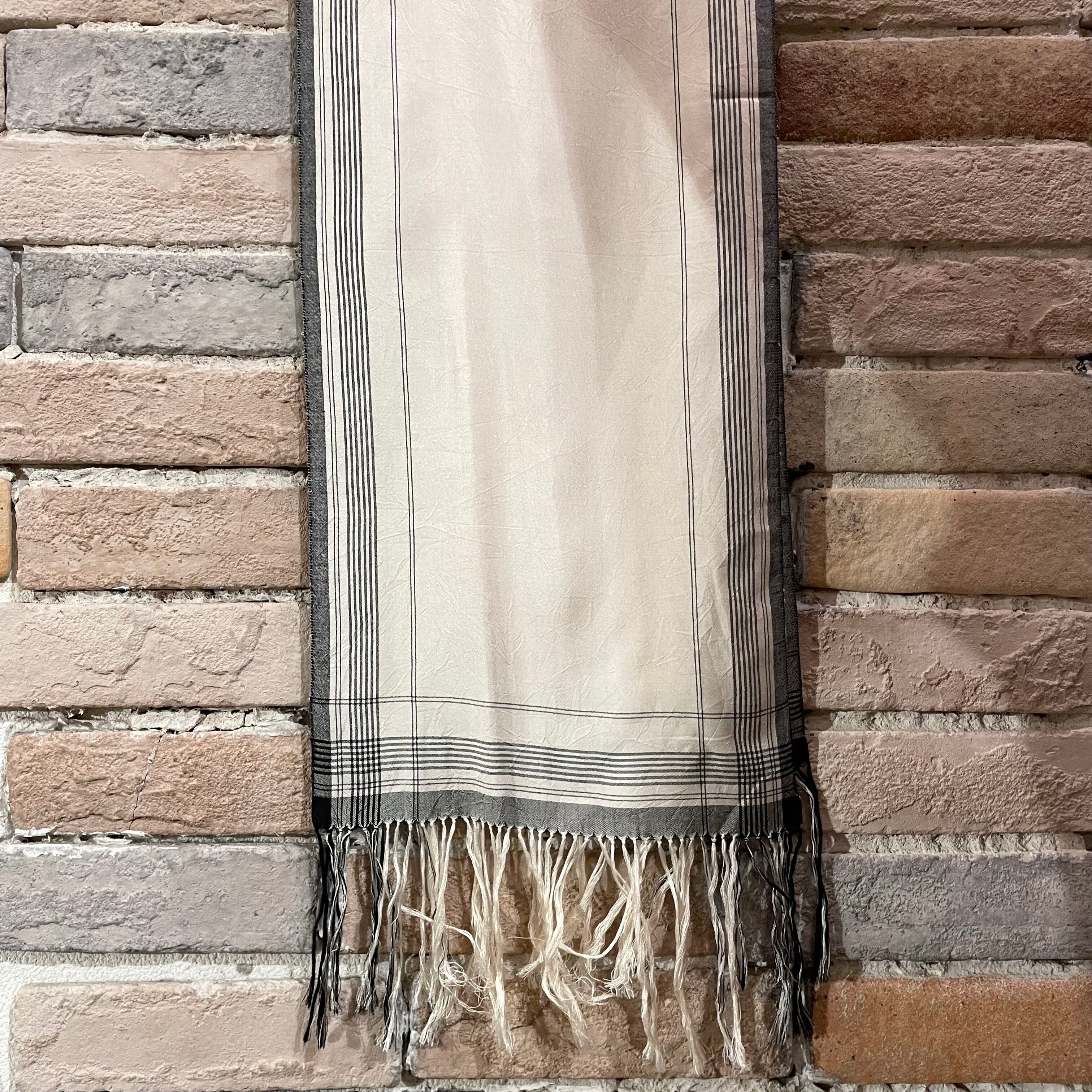 margaret howell "silk stole" ivory×gray イギリス製 シルク ストール スカーフ マーガレットハウエル