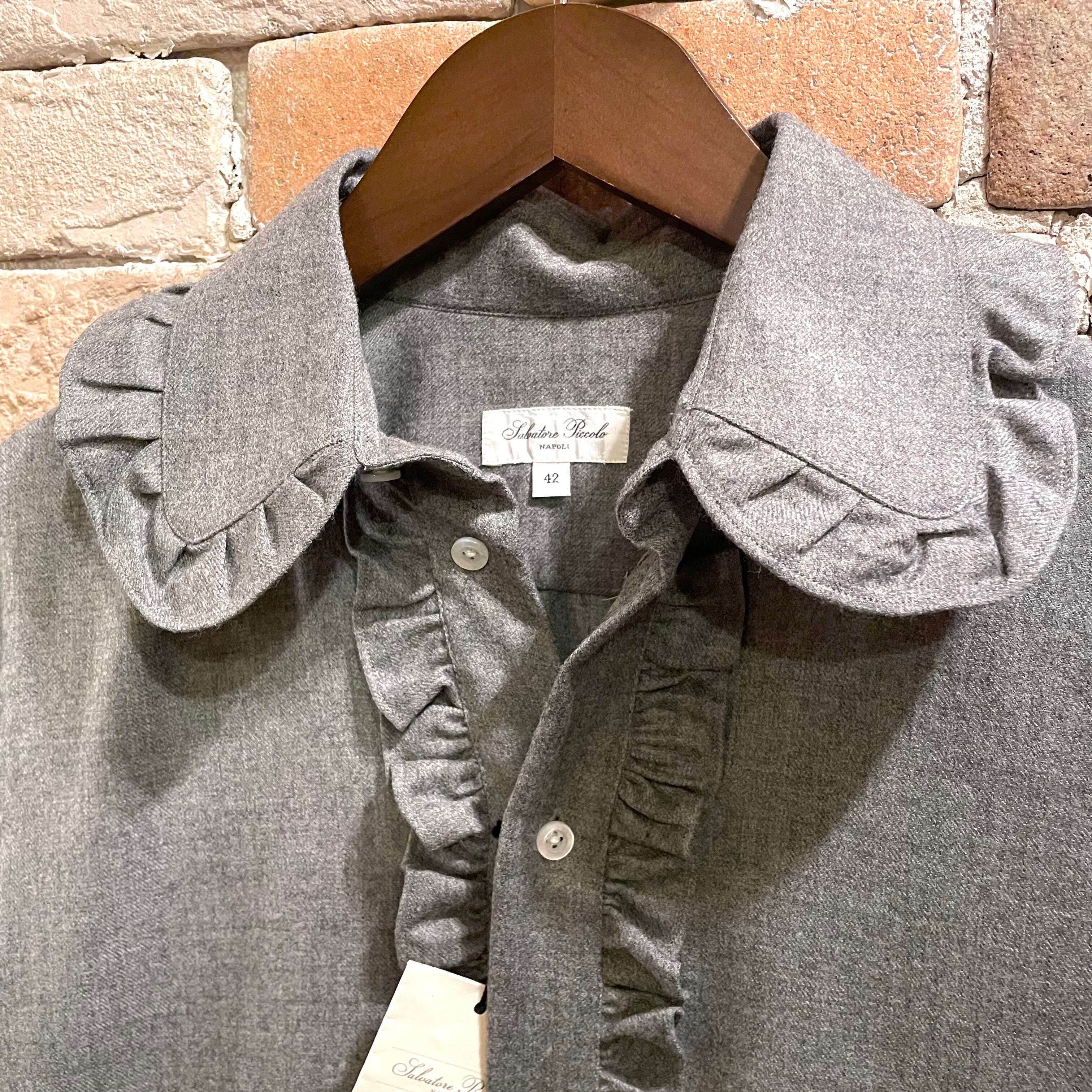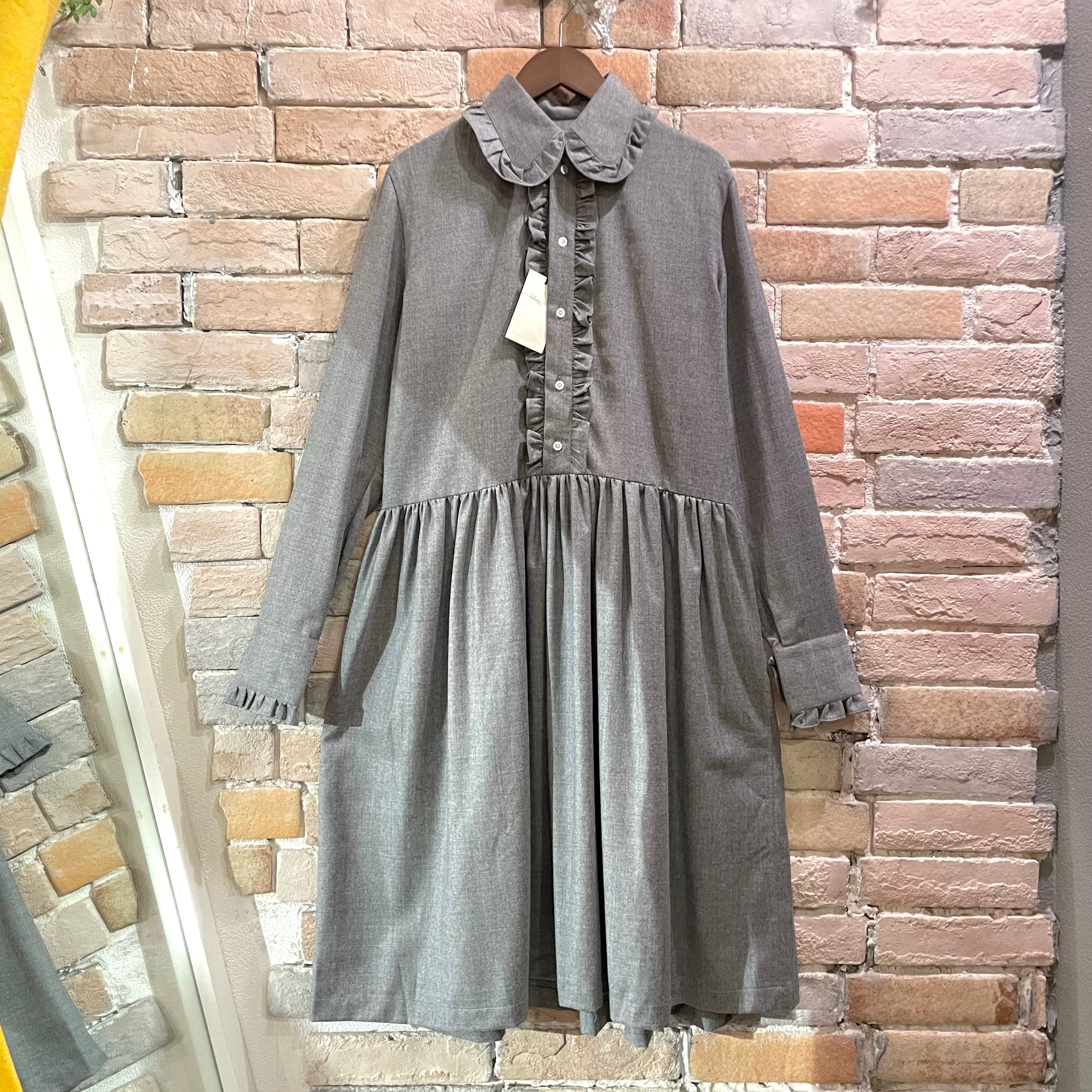 salvatore piccolo "ladies gray frill dress" 未使用 イタリア製 ウール生地 ワンピース サルバトーレピッコロ フリル グレー