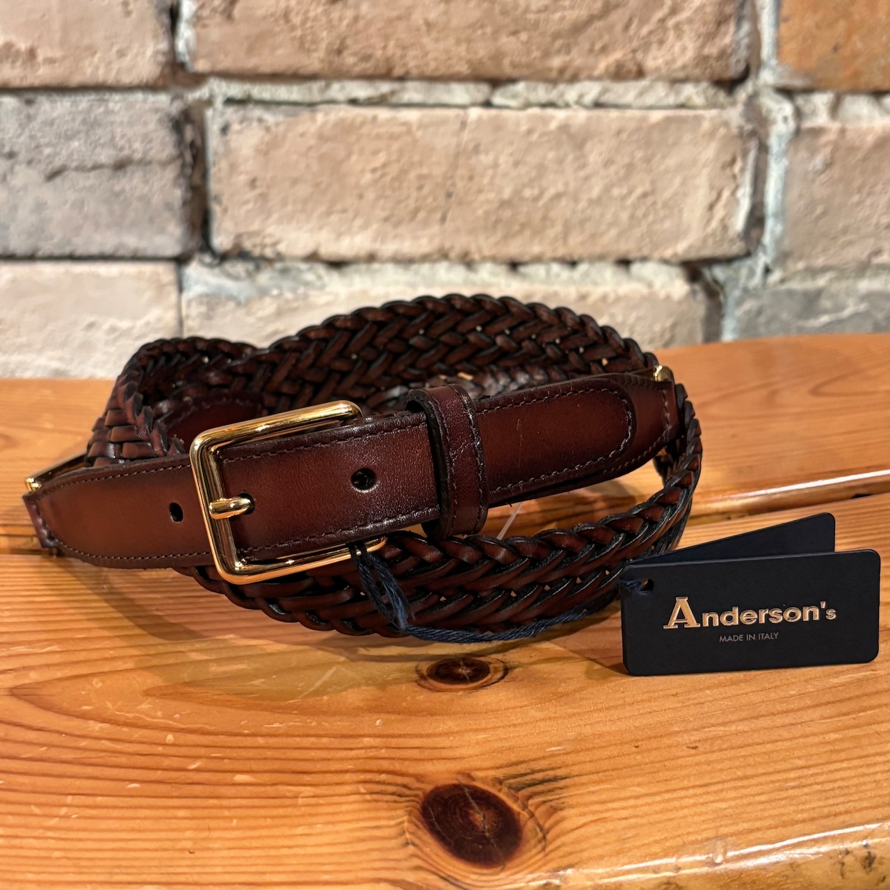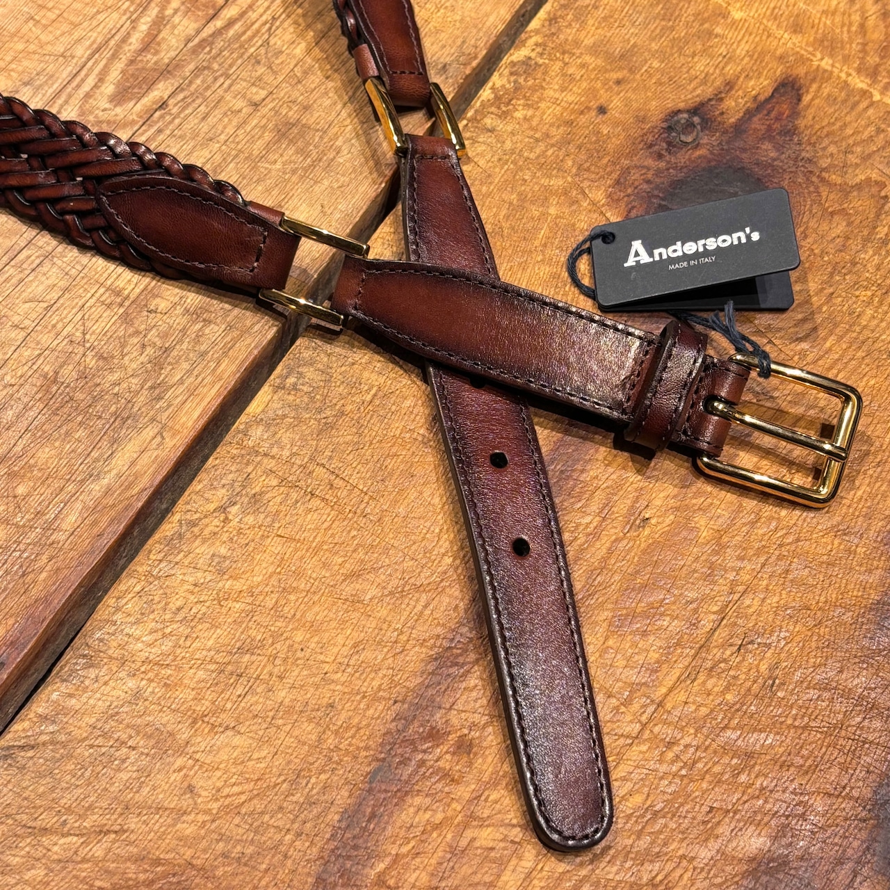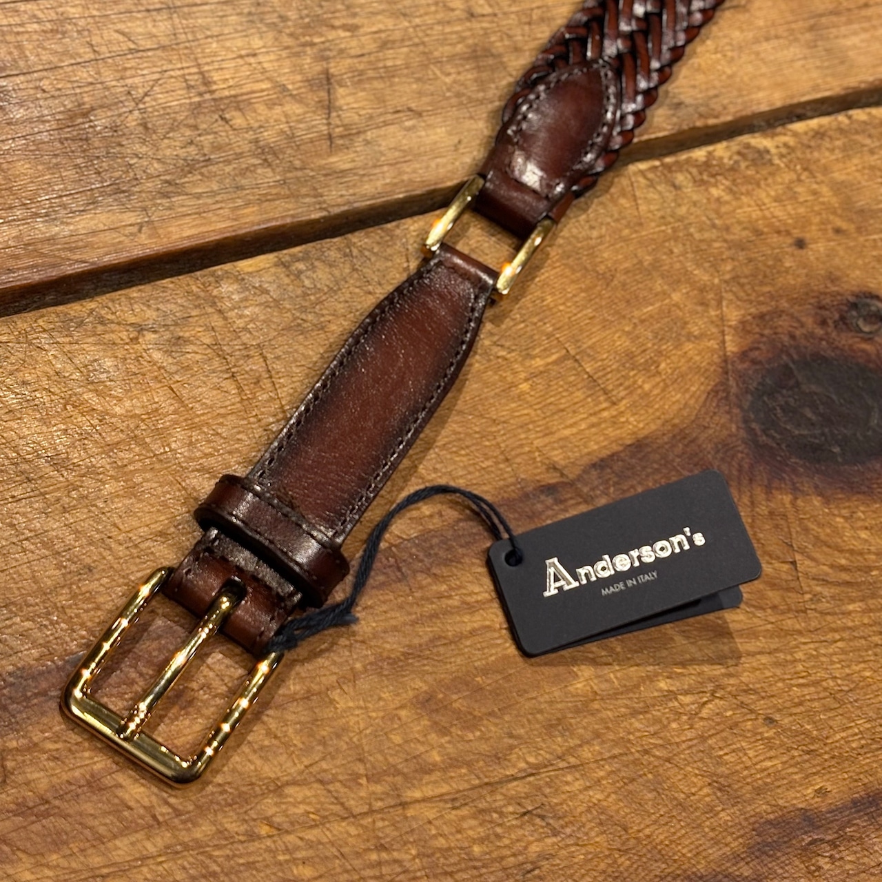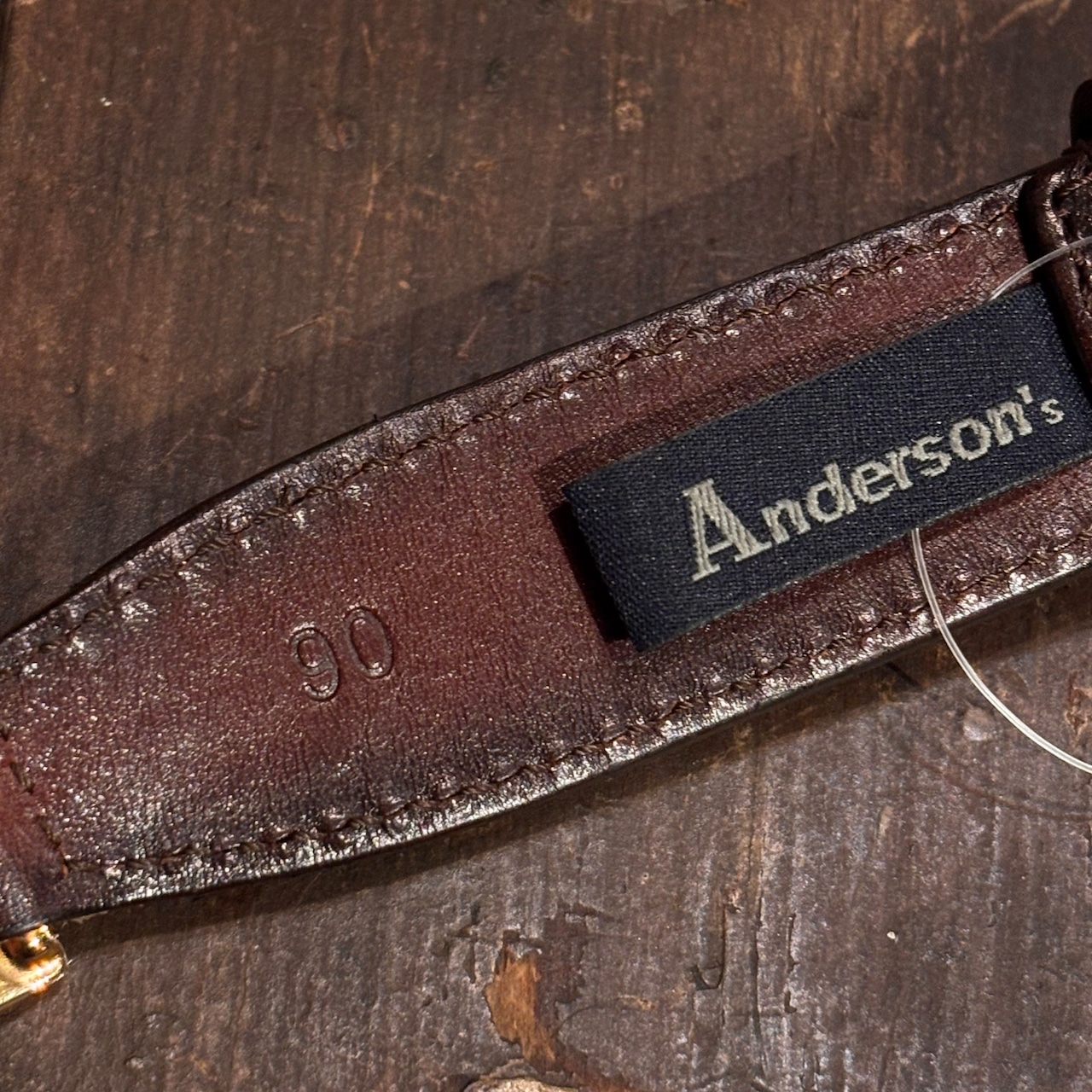Anderson's 未使用品 サイズ90 レザー×メッシュベルト ブラウン アンダーソンズ