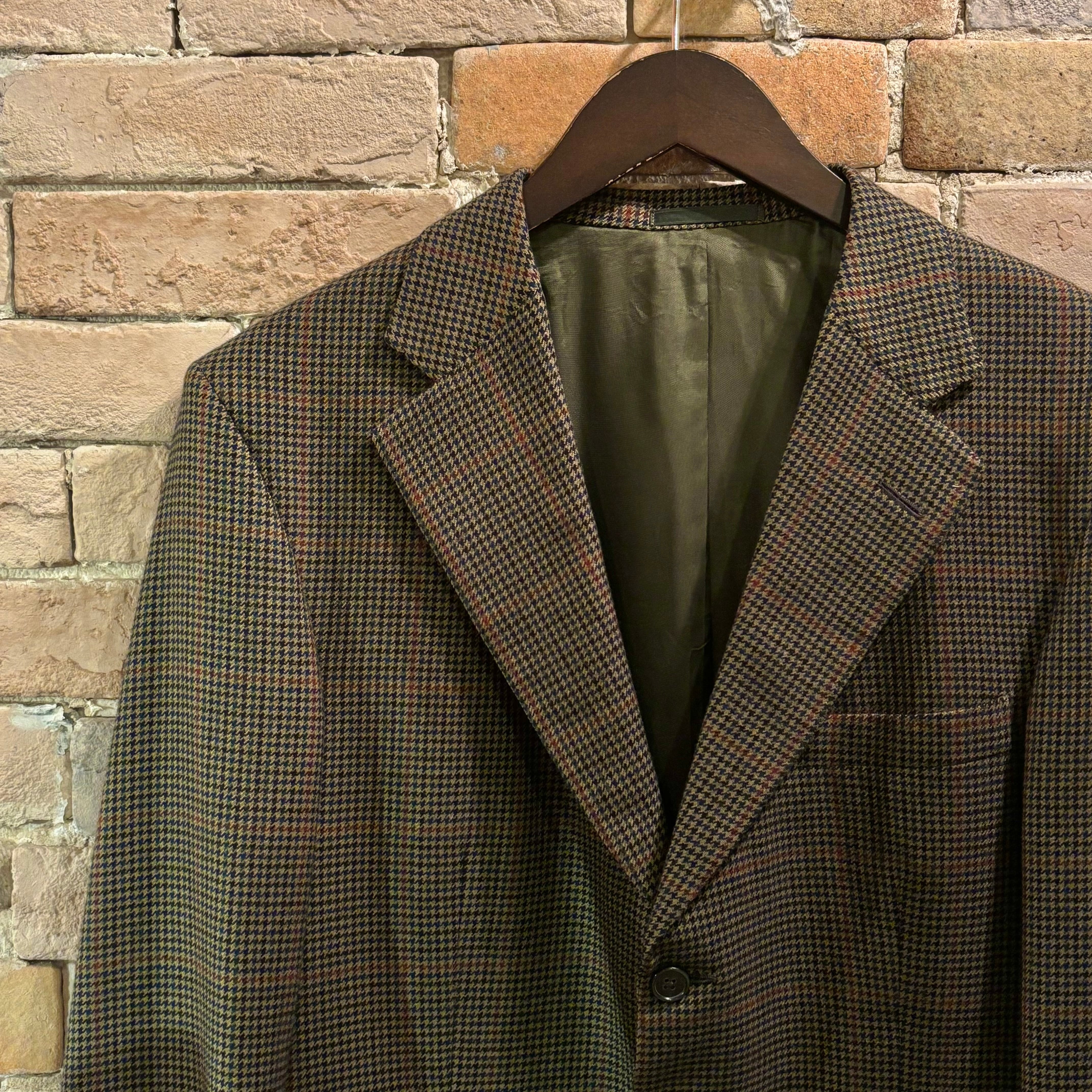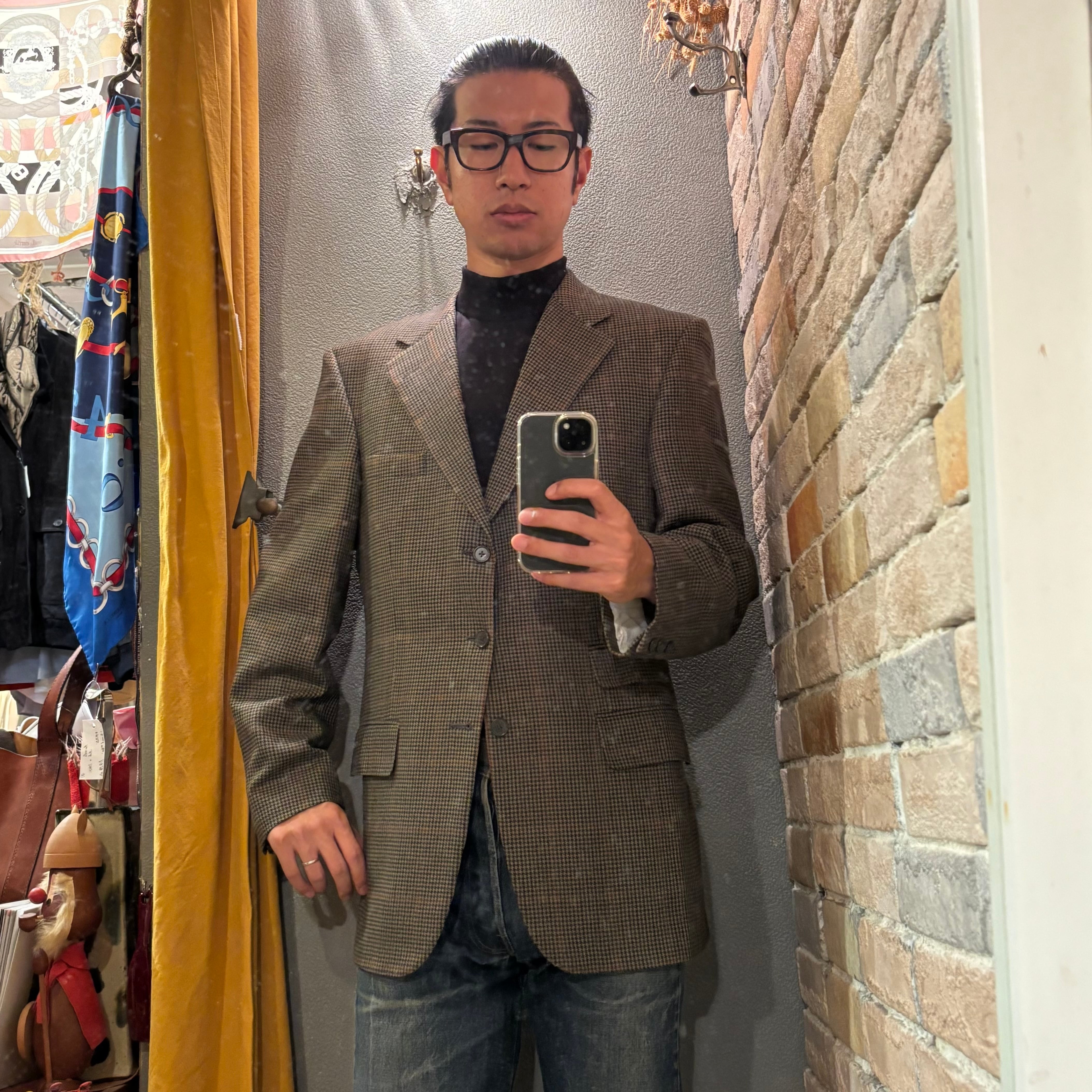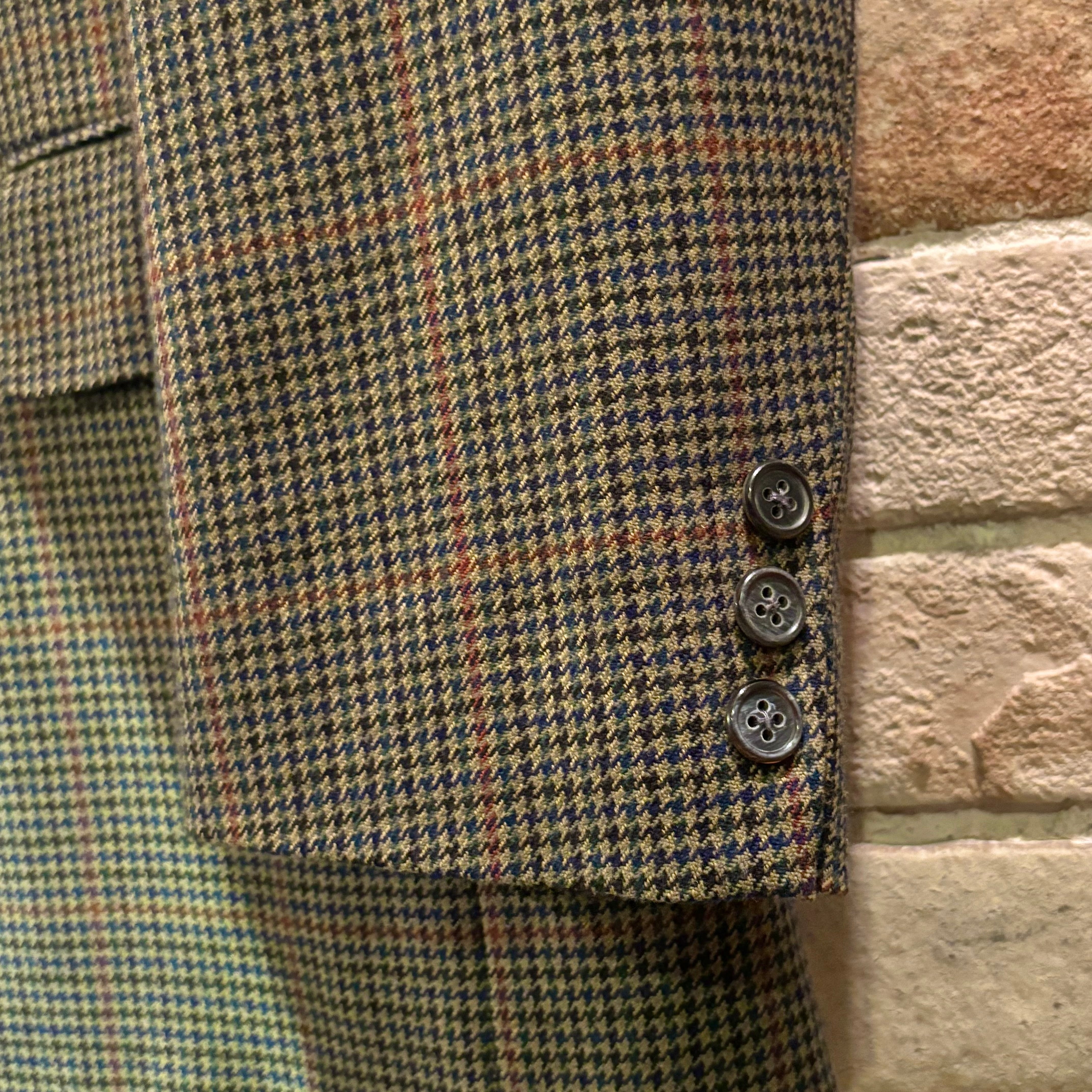 ウール×カシミヤの滑らかな生地感に細かな色使い、英国的なシルエットが特徴的な3つボタンジャケット。