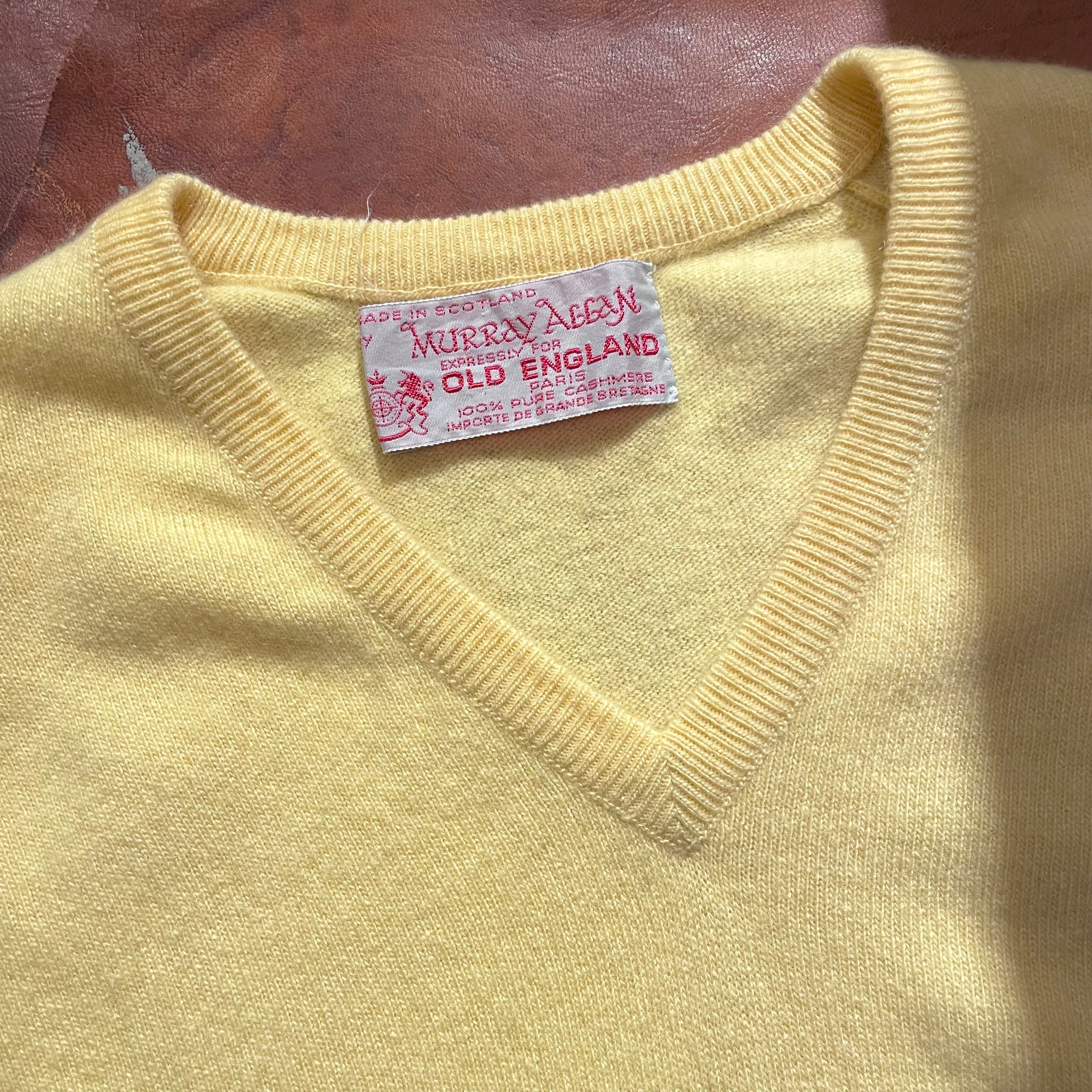old england"ladies yellow V neck cashmere knit" スコットランド製 カシミヤ Vネックニット イエロー
