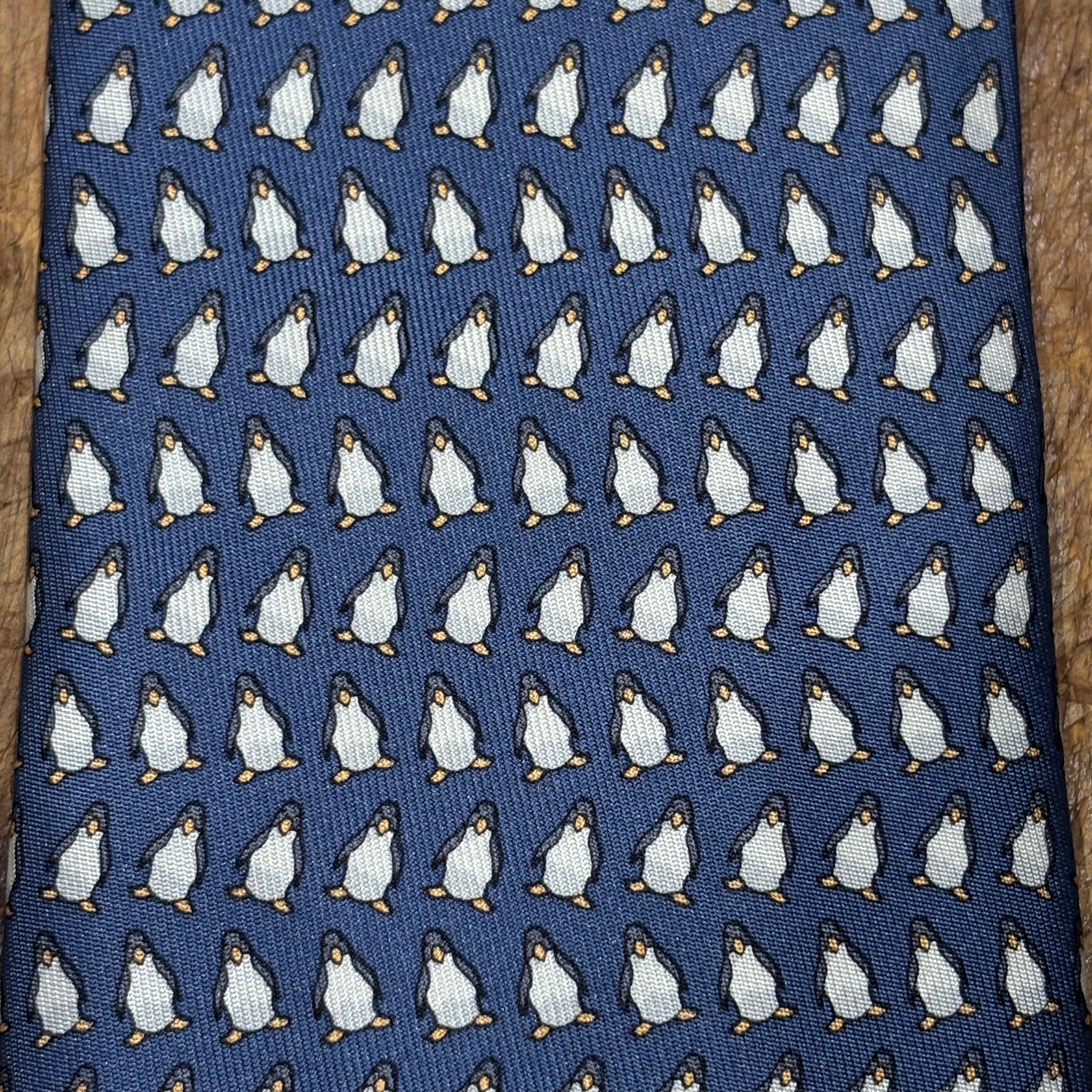 Hermes フランス製 シルクネクタイ ペンギン ブルー エルメス