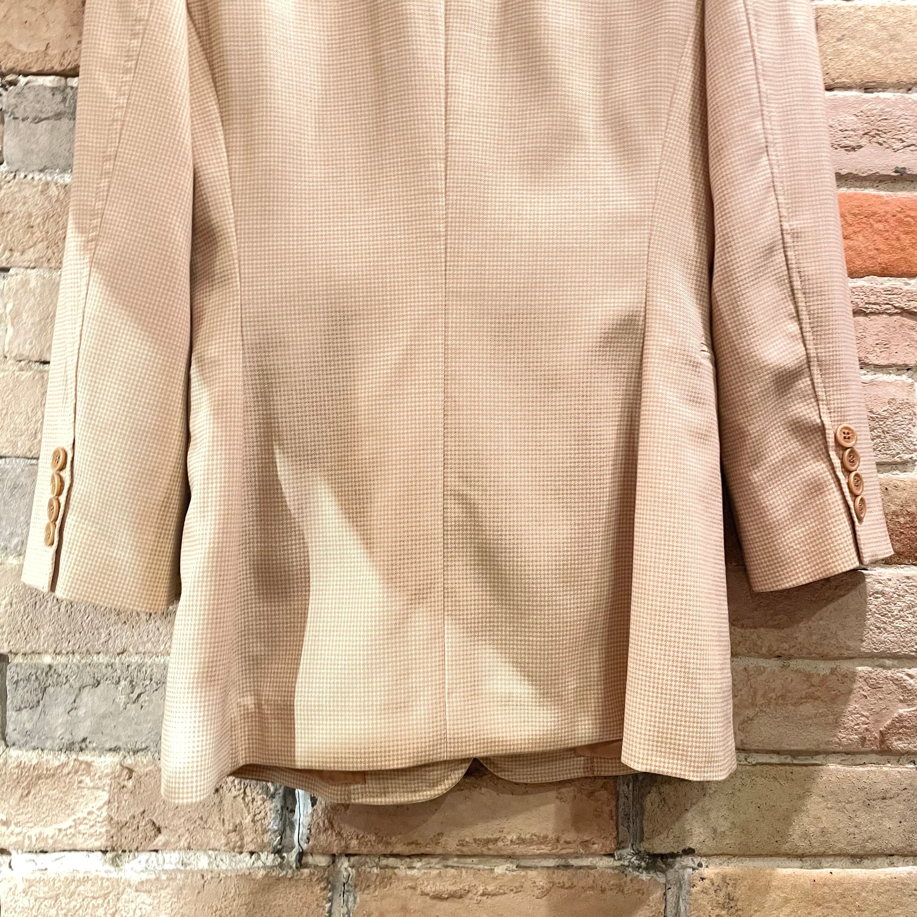 ベージュカラーのチェック柄で、カジュアルながらも色気のあるフレンチテイストなジャケットです。