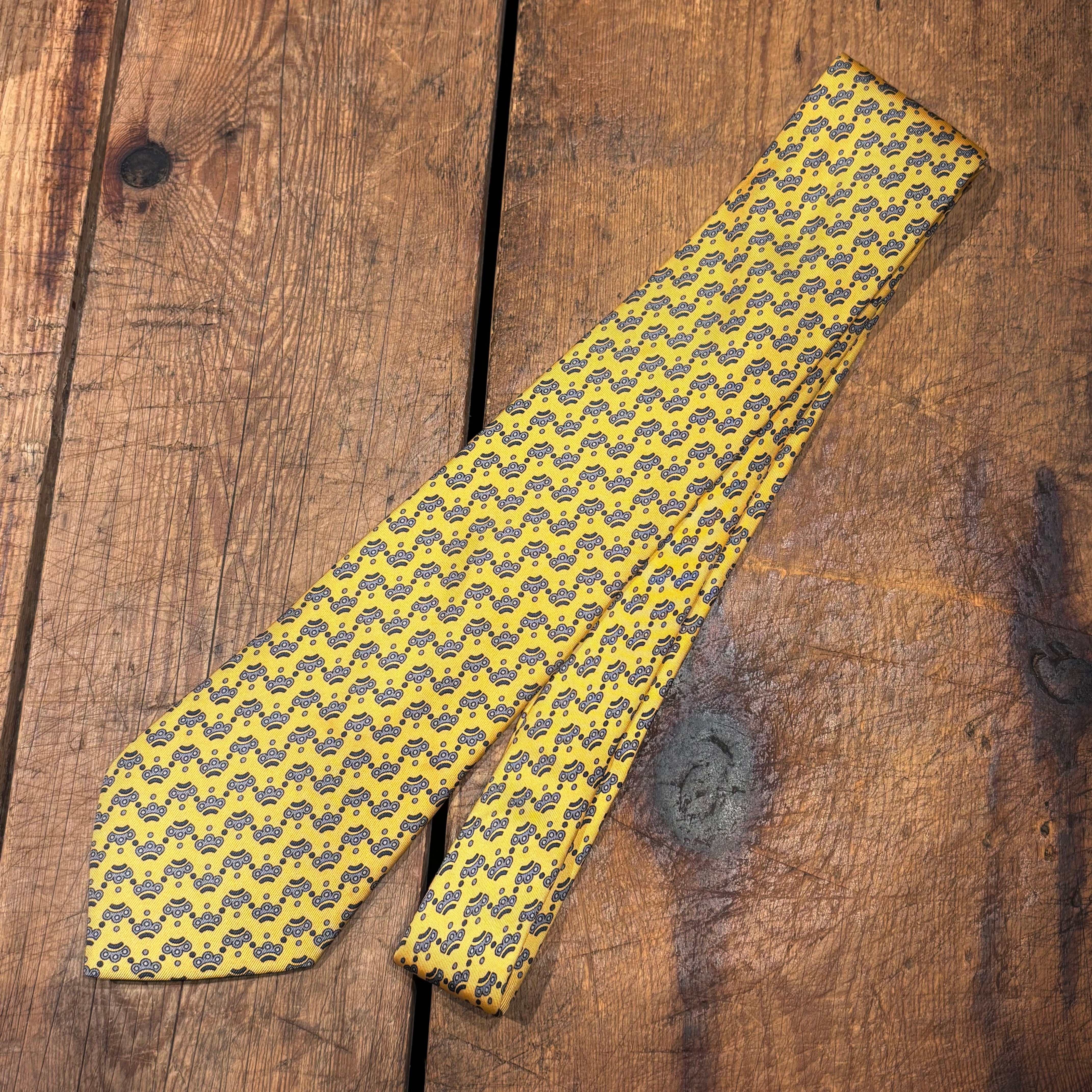 Hermes フランス製 シルクネクタイ イエロー エルメス