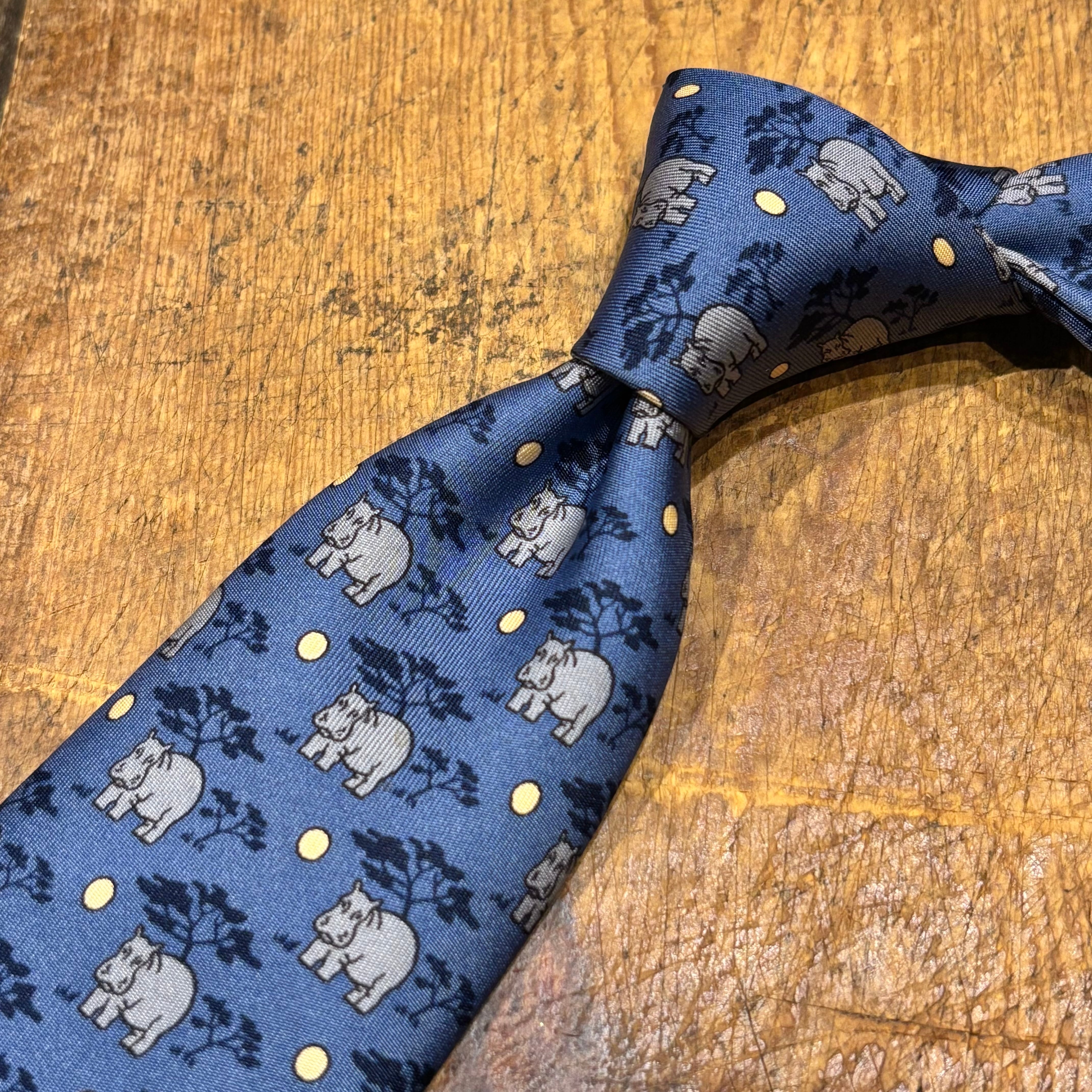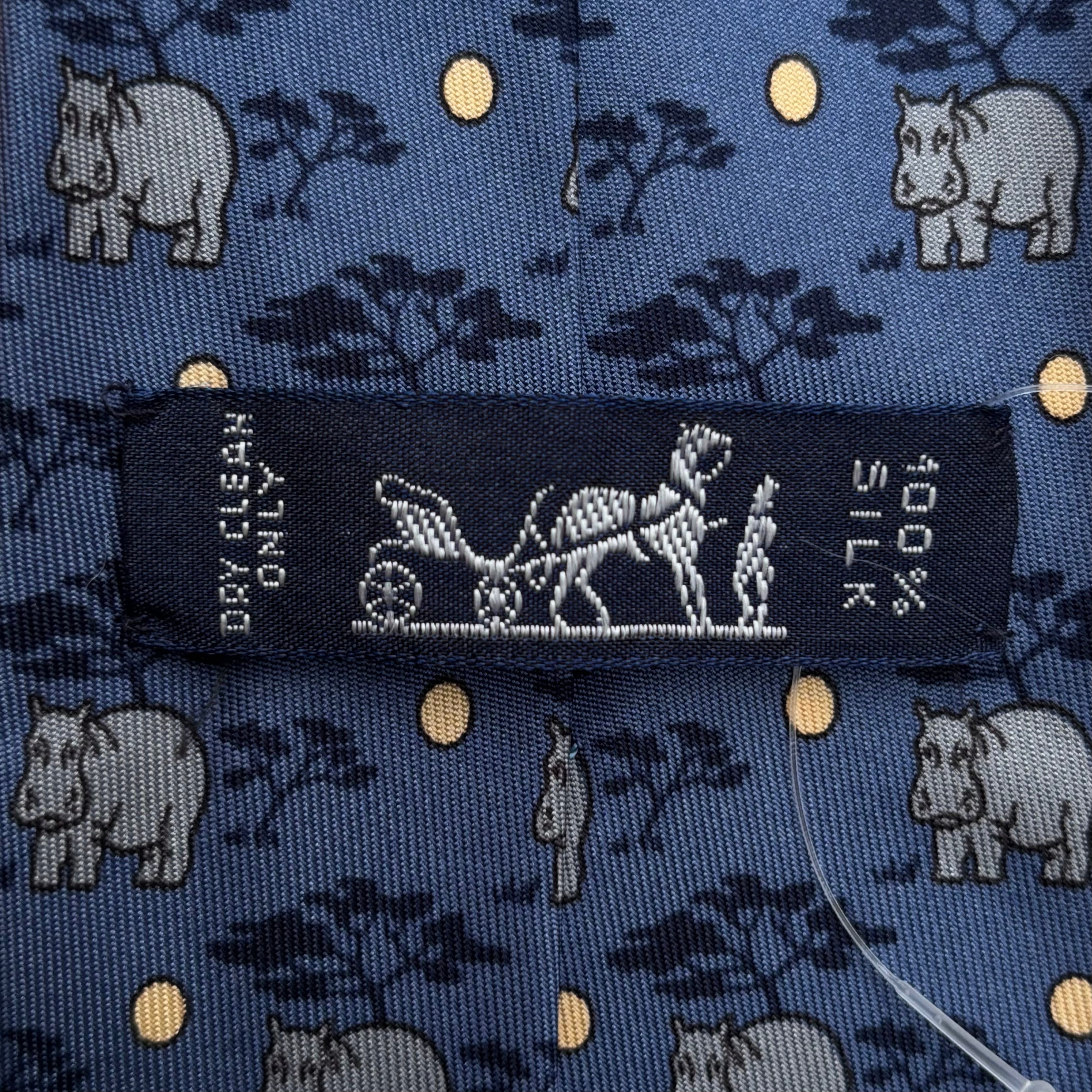 Hermes フランス製 シルクネクタイ ブルー カバ柄 エルメス