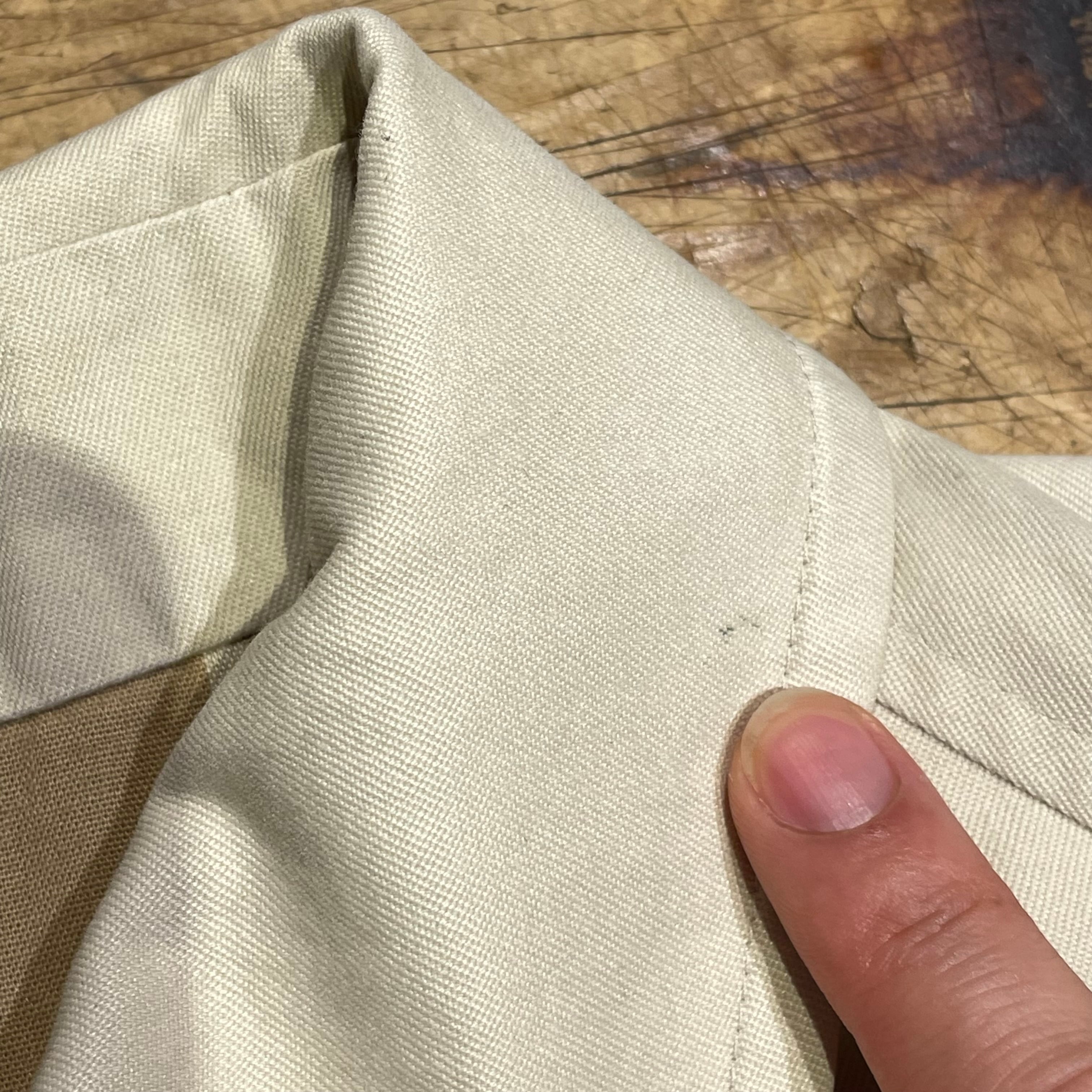 状態: 襟裏のボタンの跡、背中に線傷、襟、左袖小汚れ、ジップの使用感、全体の細かな使用感がございます。