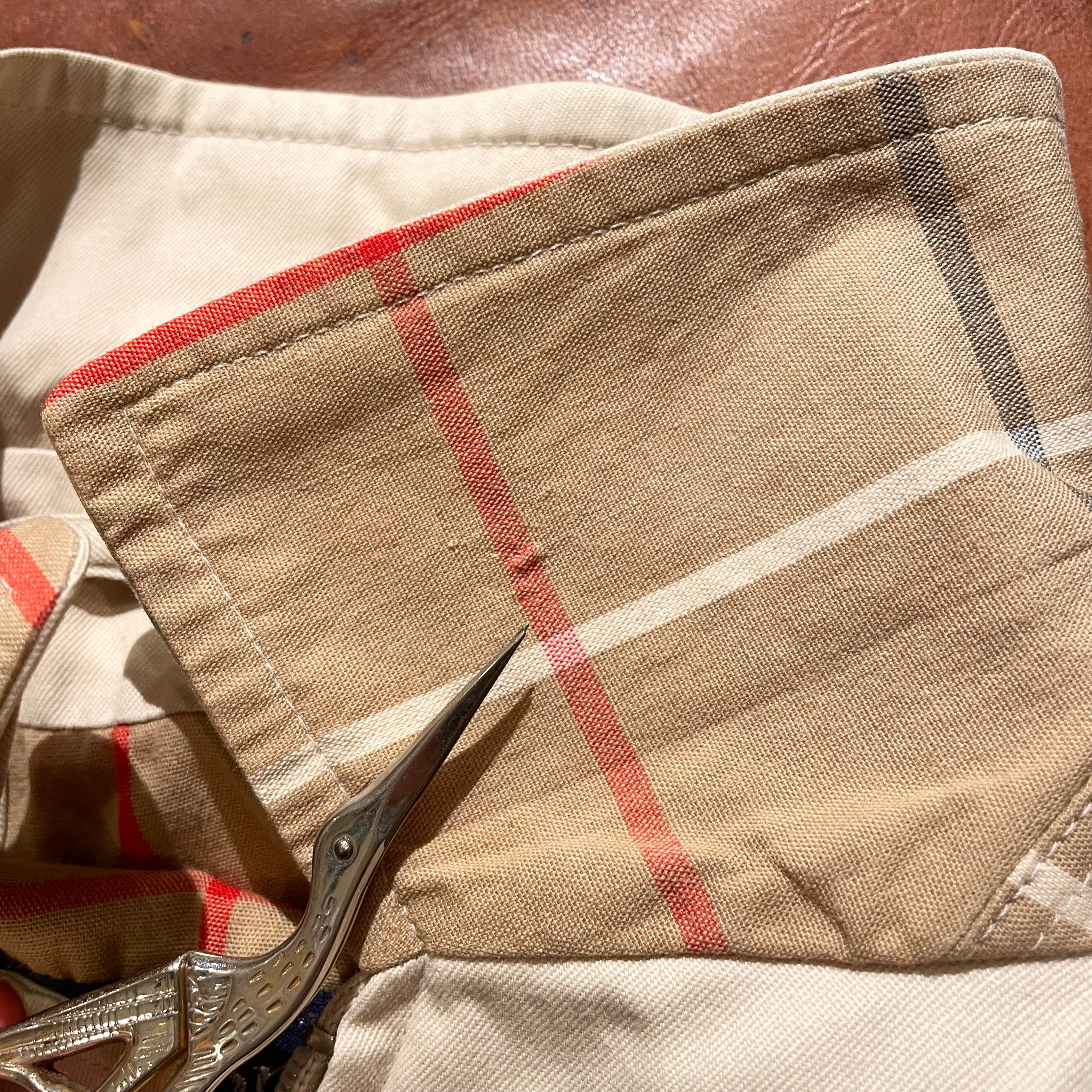 襟裏や袖裏までチェックの仕様で腕を捲ってチラッと見せる着こなしも素敵です。