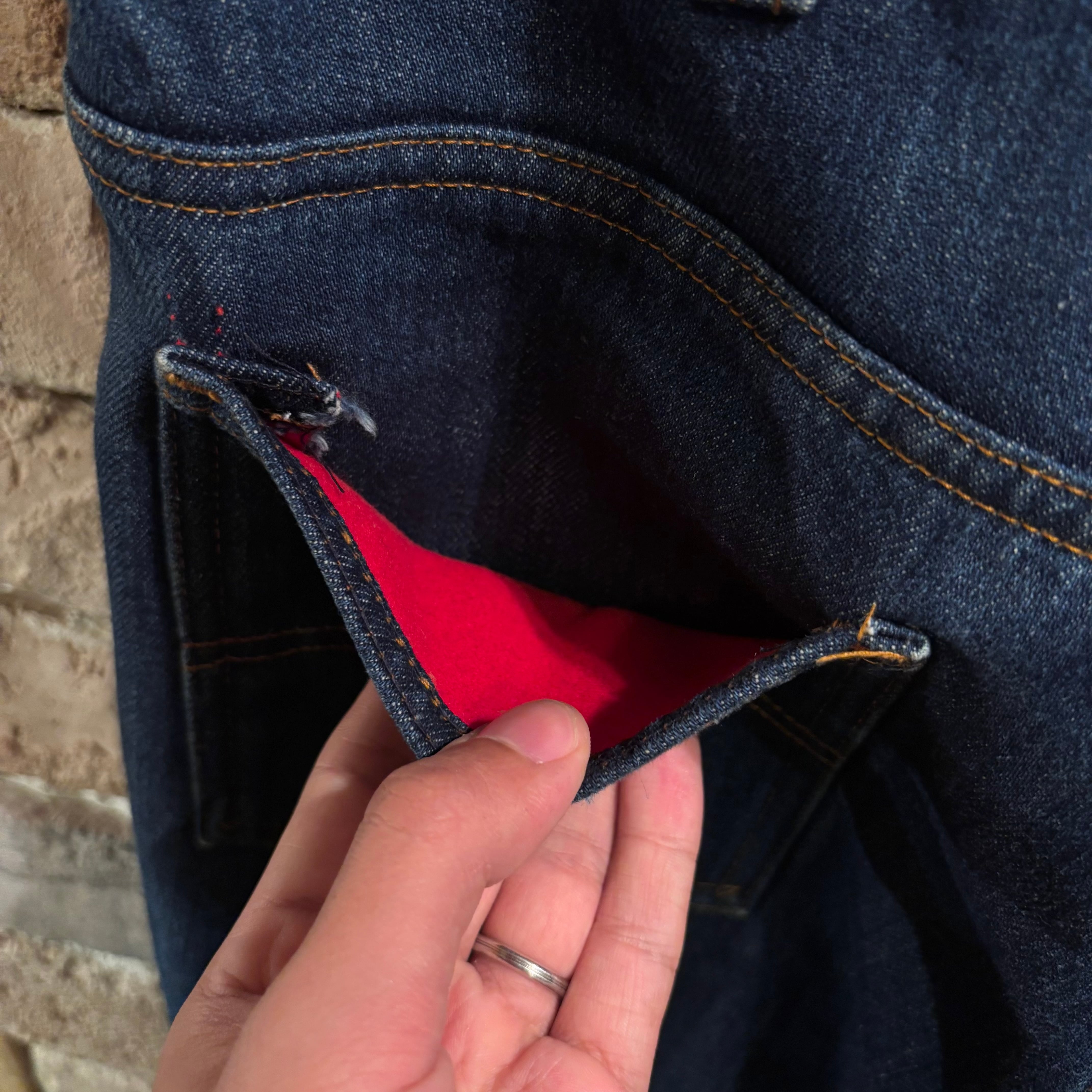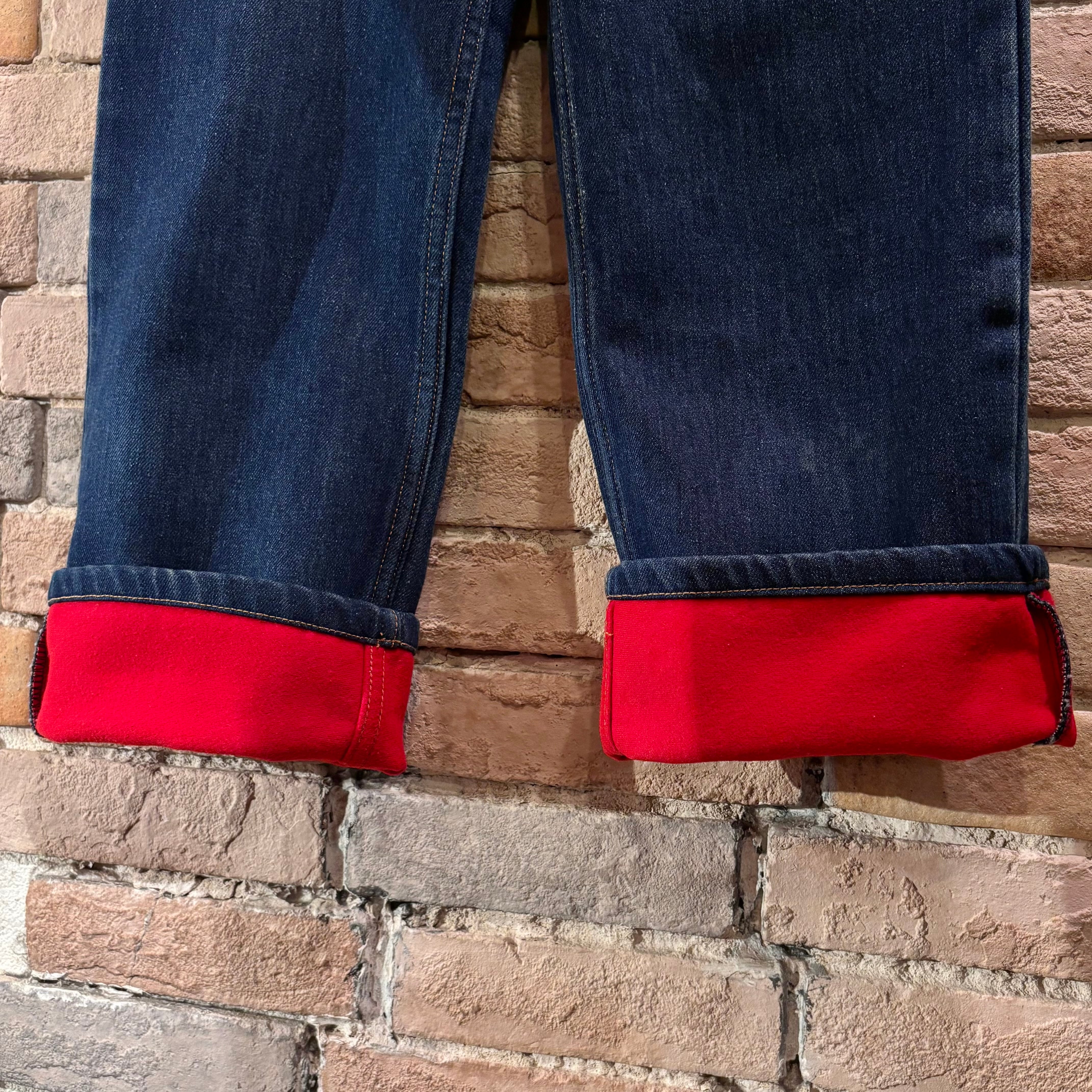 1980年に開催されたレークプラシッド冬季オリンピックを記念して作られた、鮮やかな赤の裏地が付くUSA製517ブーツカットデニム