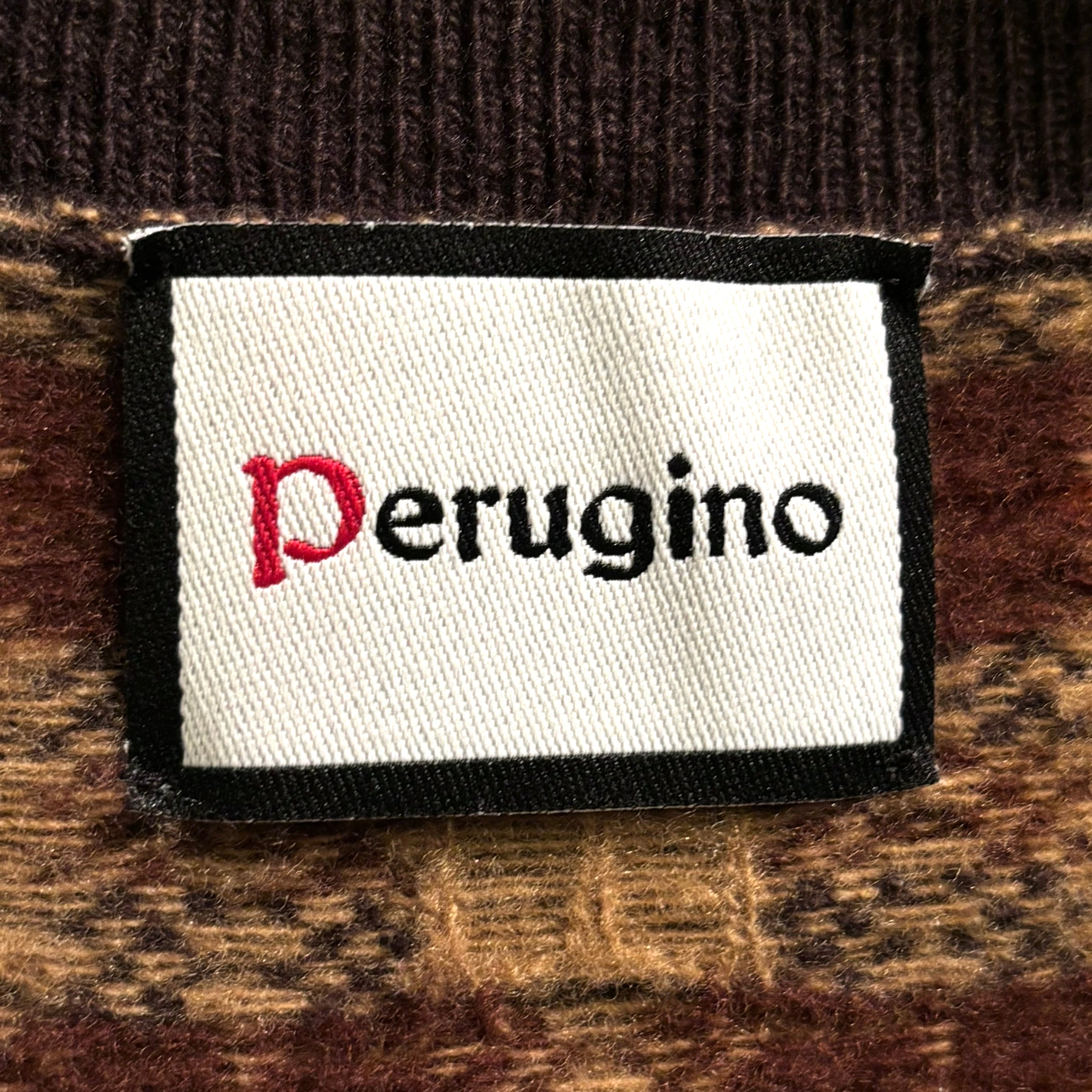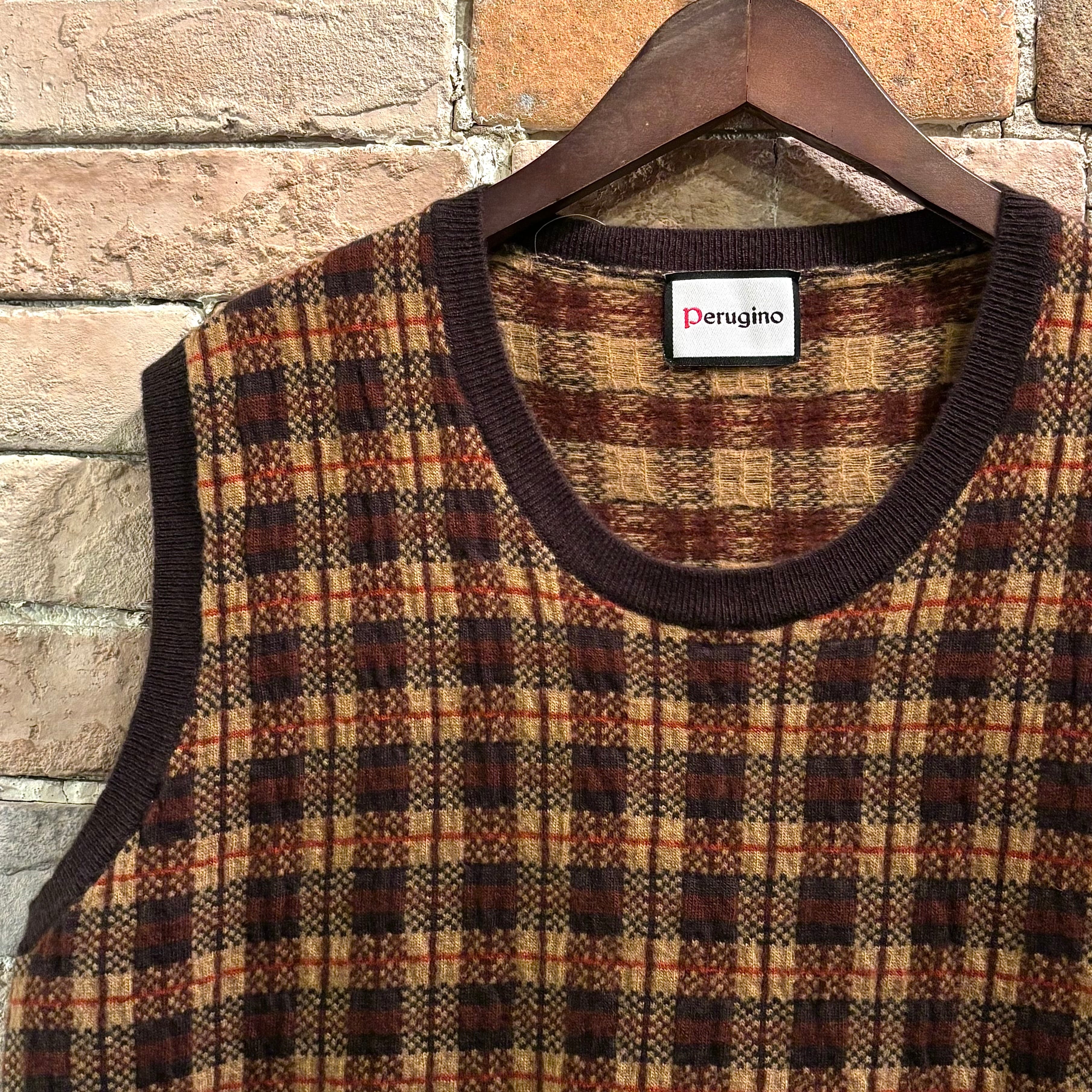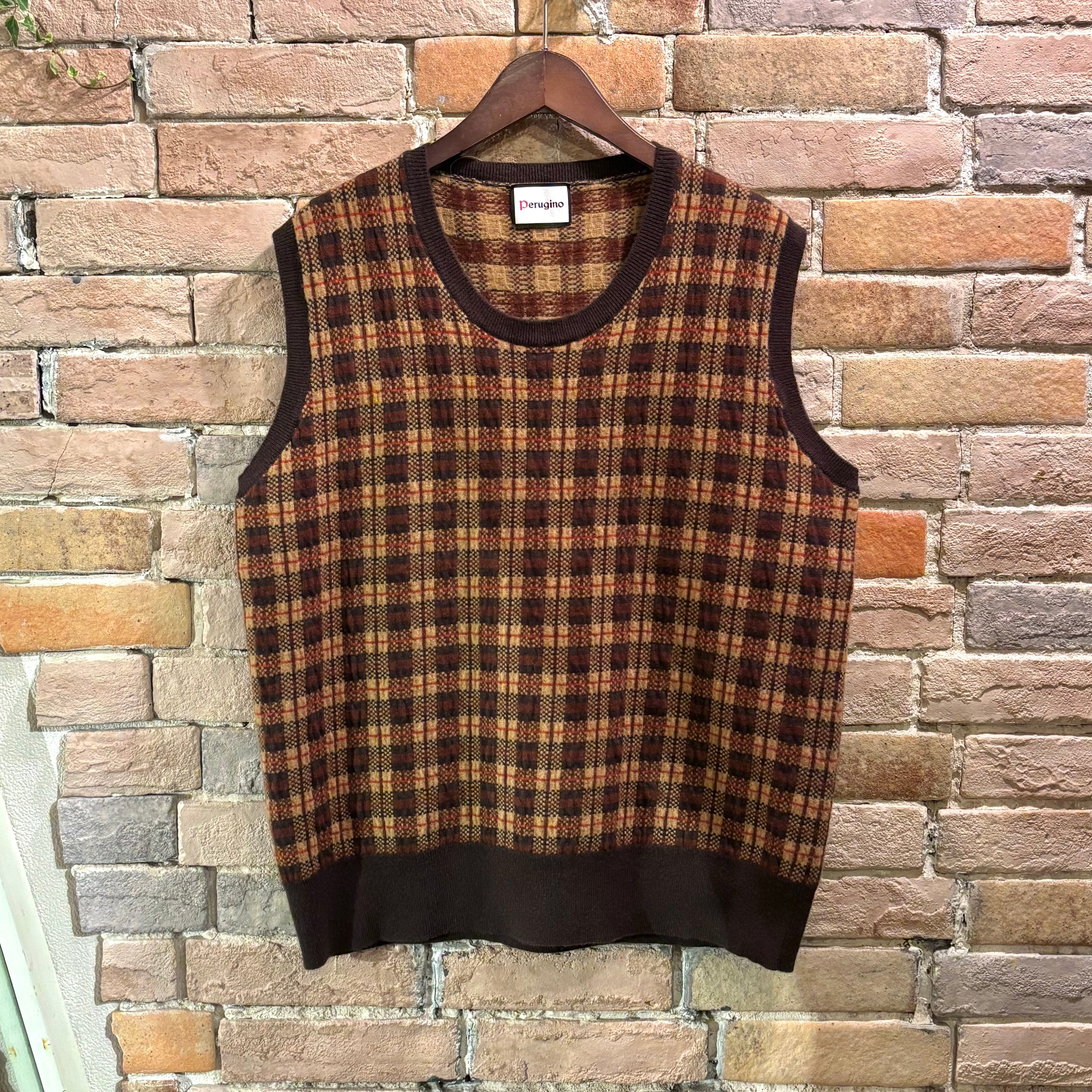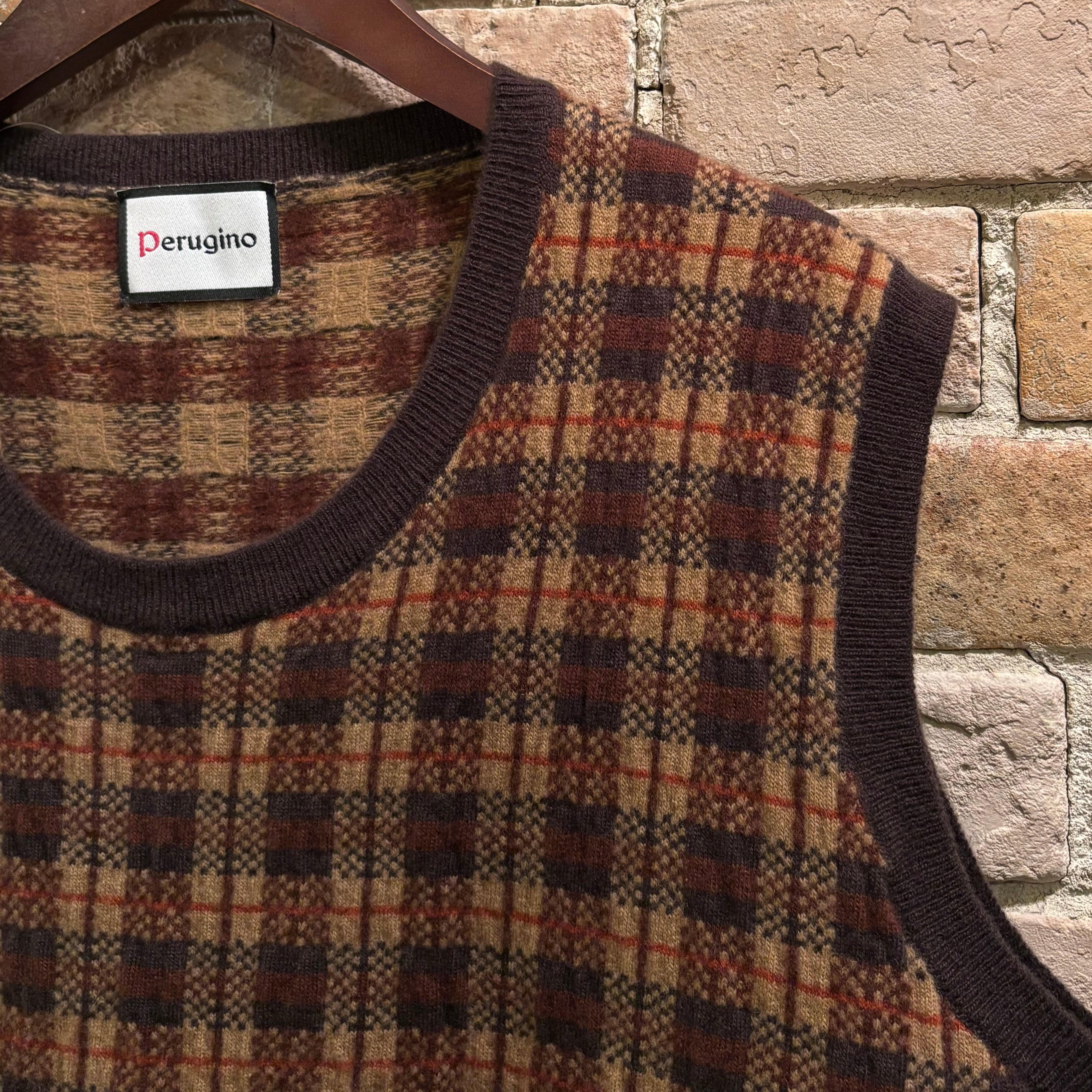 Perugino チェック柄 クルーネック ウールニットベスト イタリア製 ペルジーノ