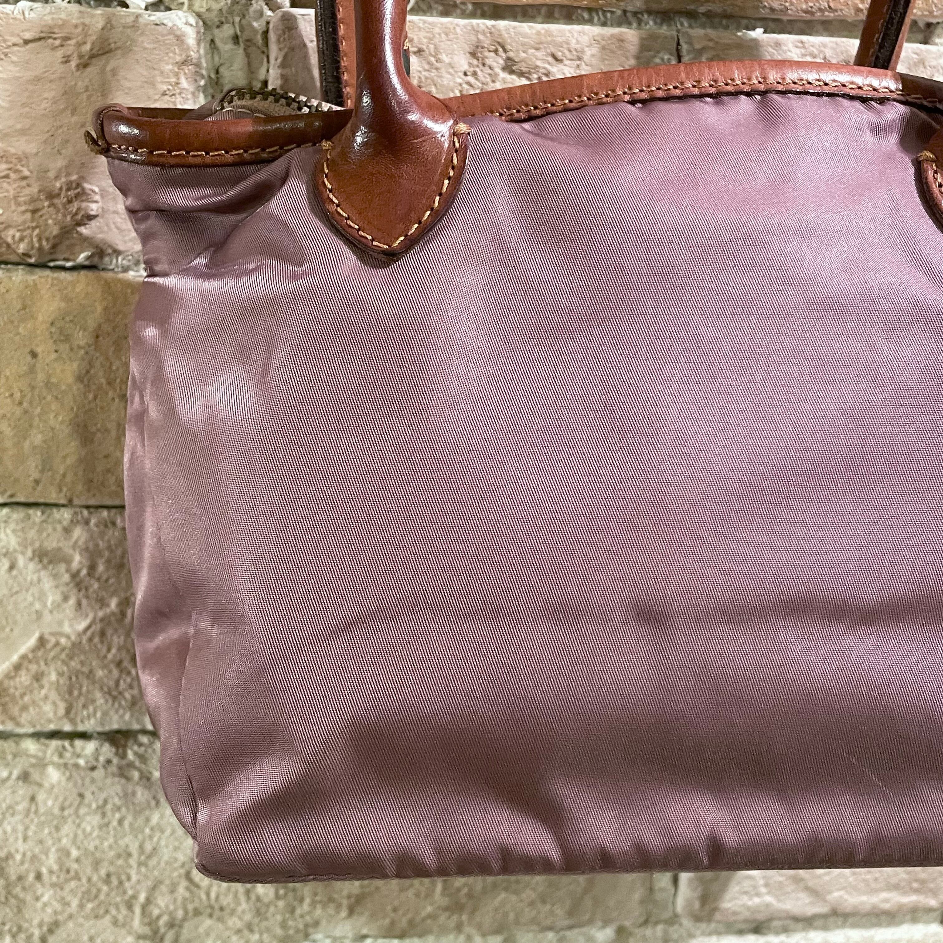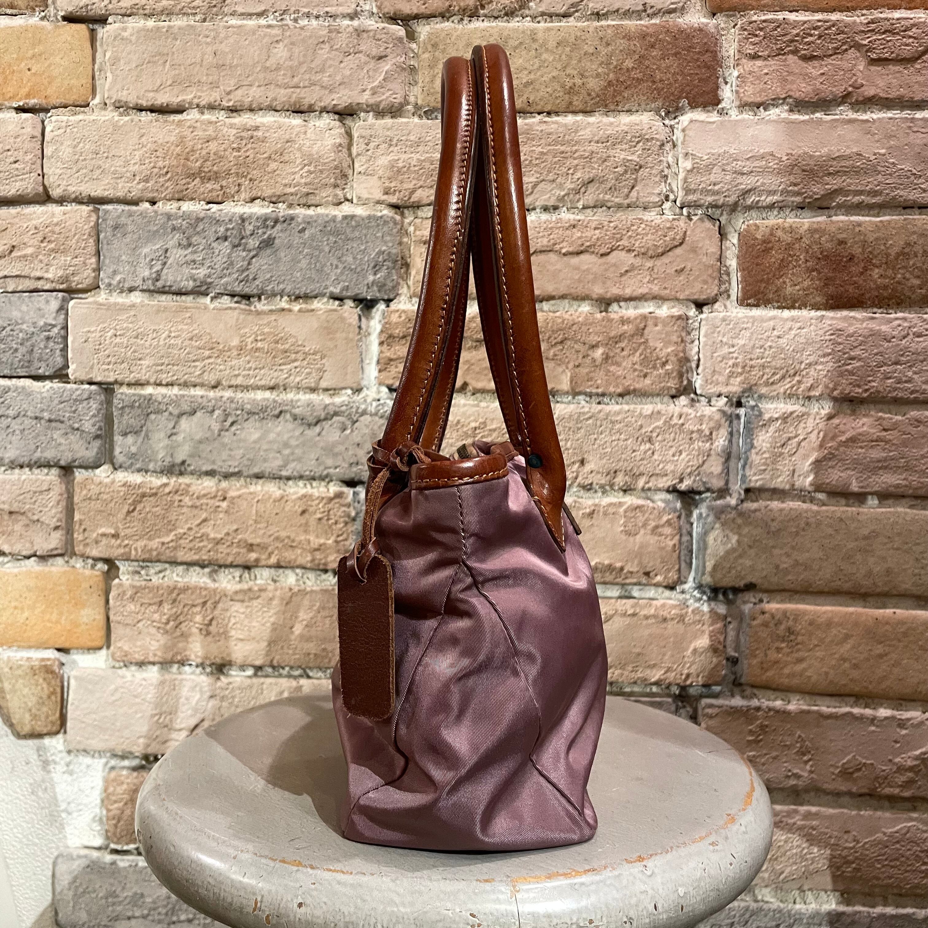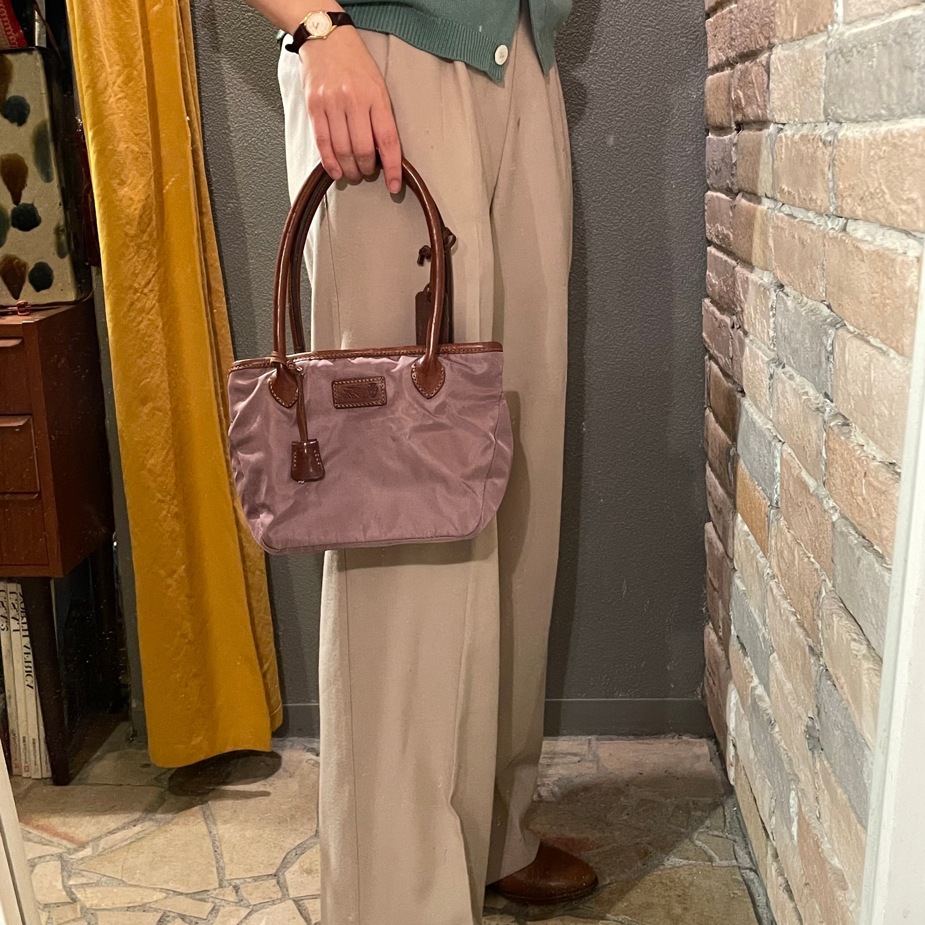 柔らかなラベンダーカラーのナイロンとレザーの組み合わせです。