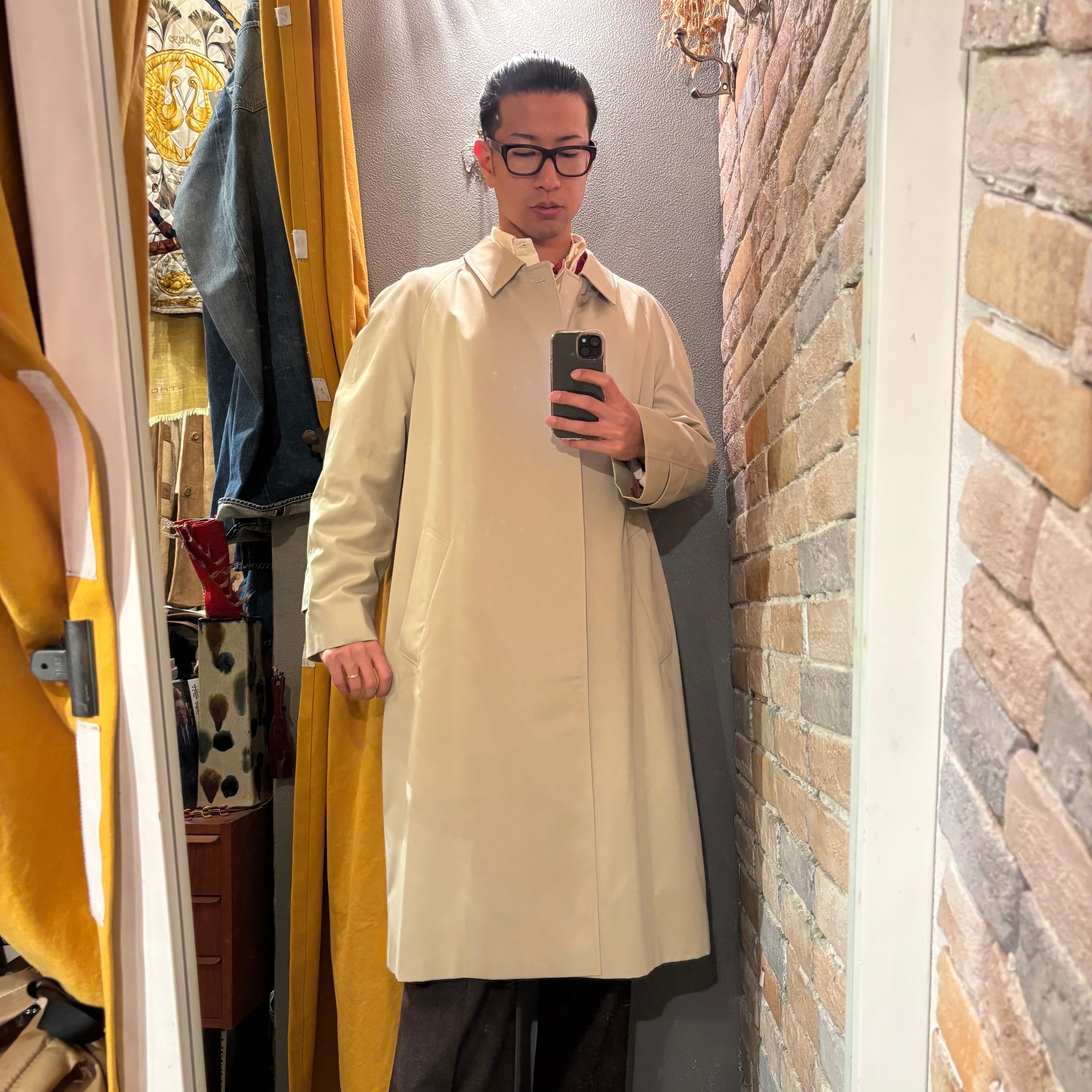 柔らかな色合いに程よいゆとりが幅広いコーディネートに使いやすい、イングランド製ステンカラーコート。