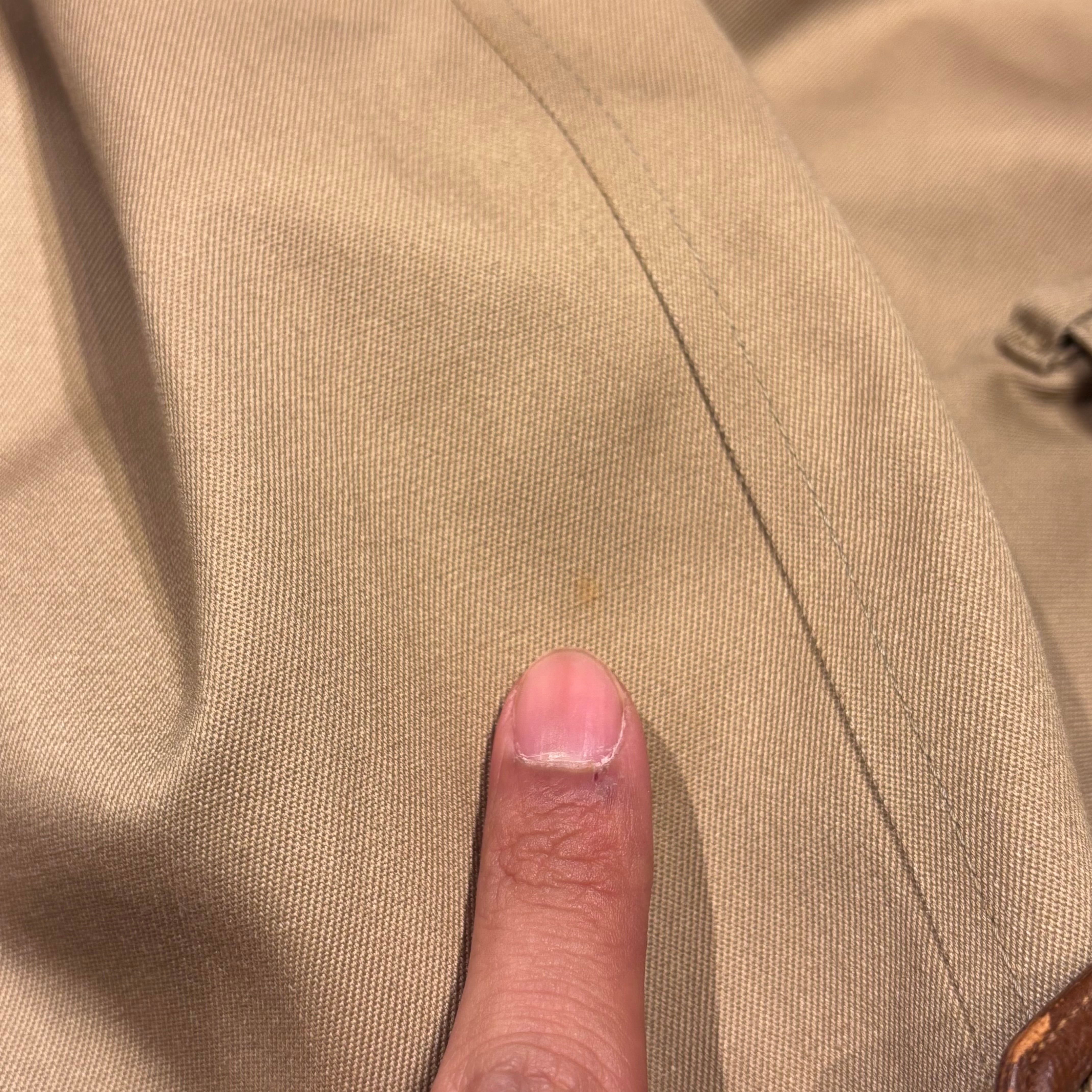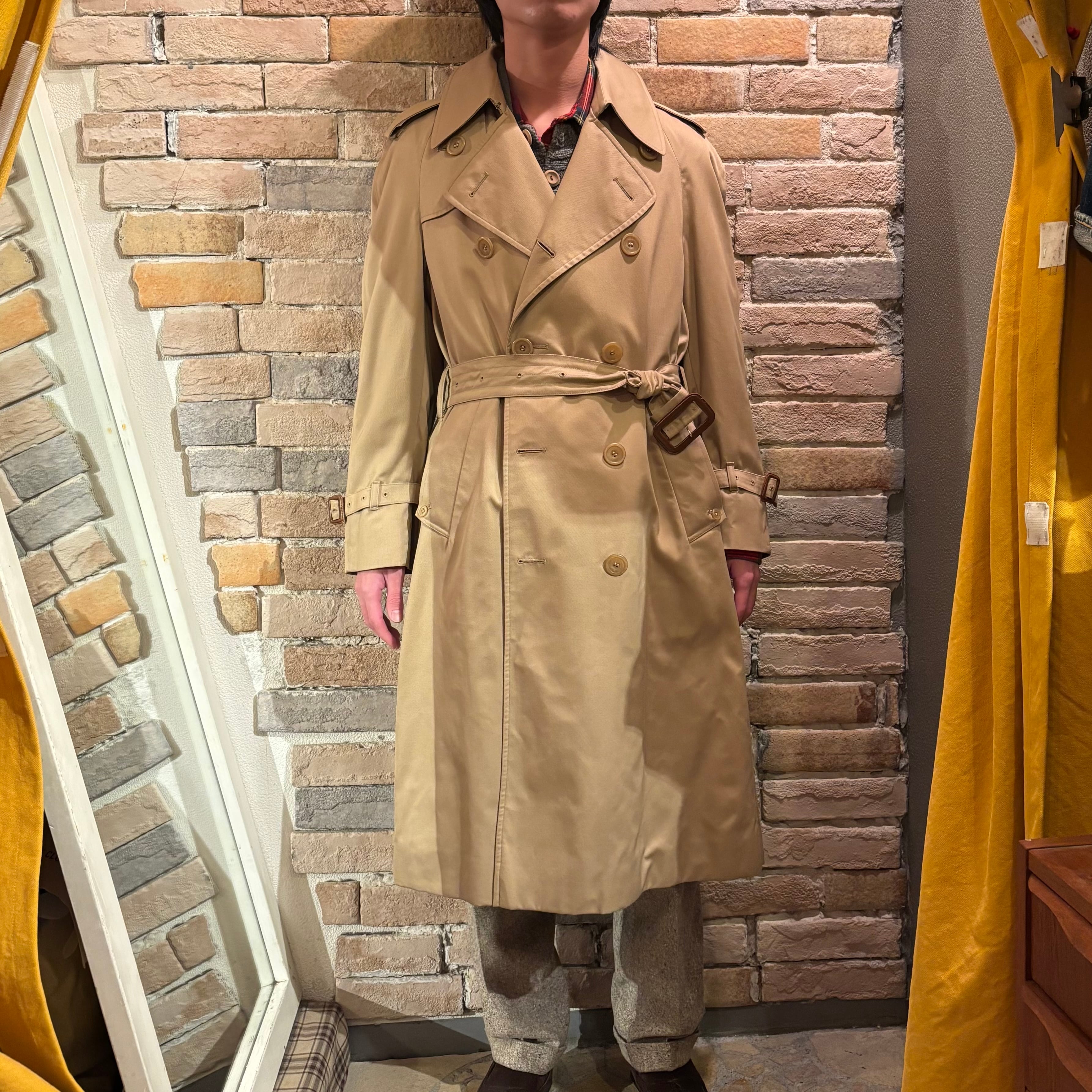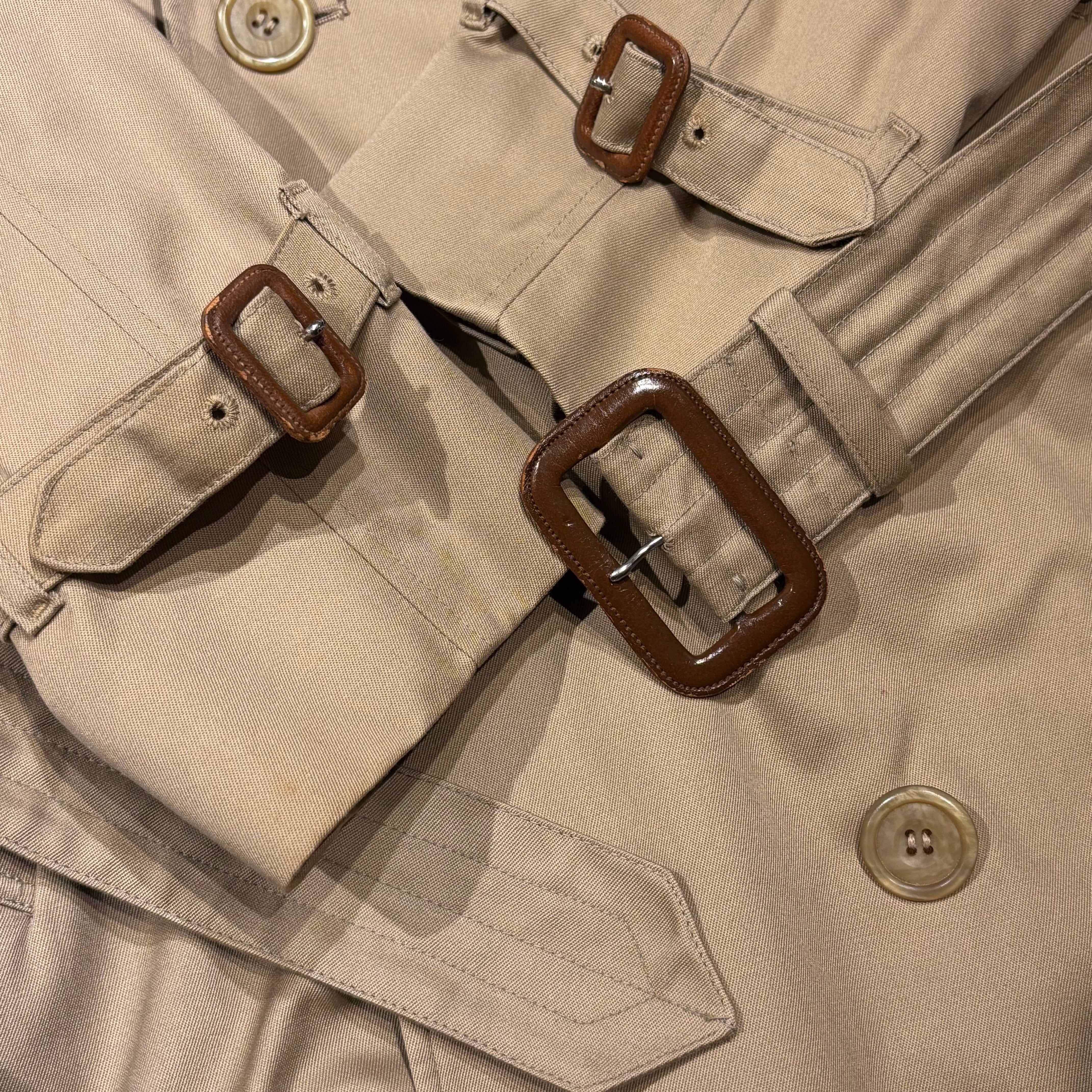定番ベージュ色のに小柄な方の着やすいメンズ小さめサイズのイングランド製トレンチコート。