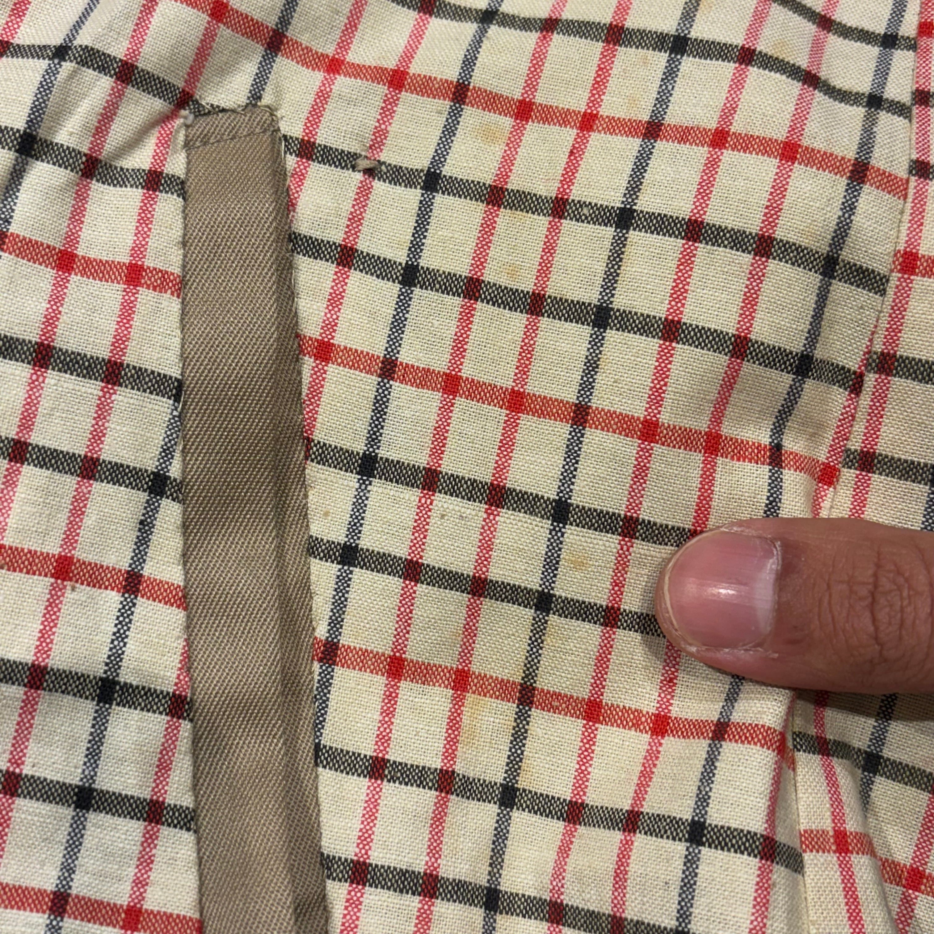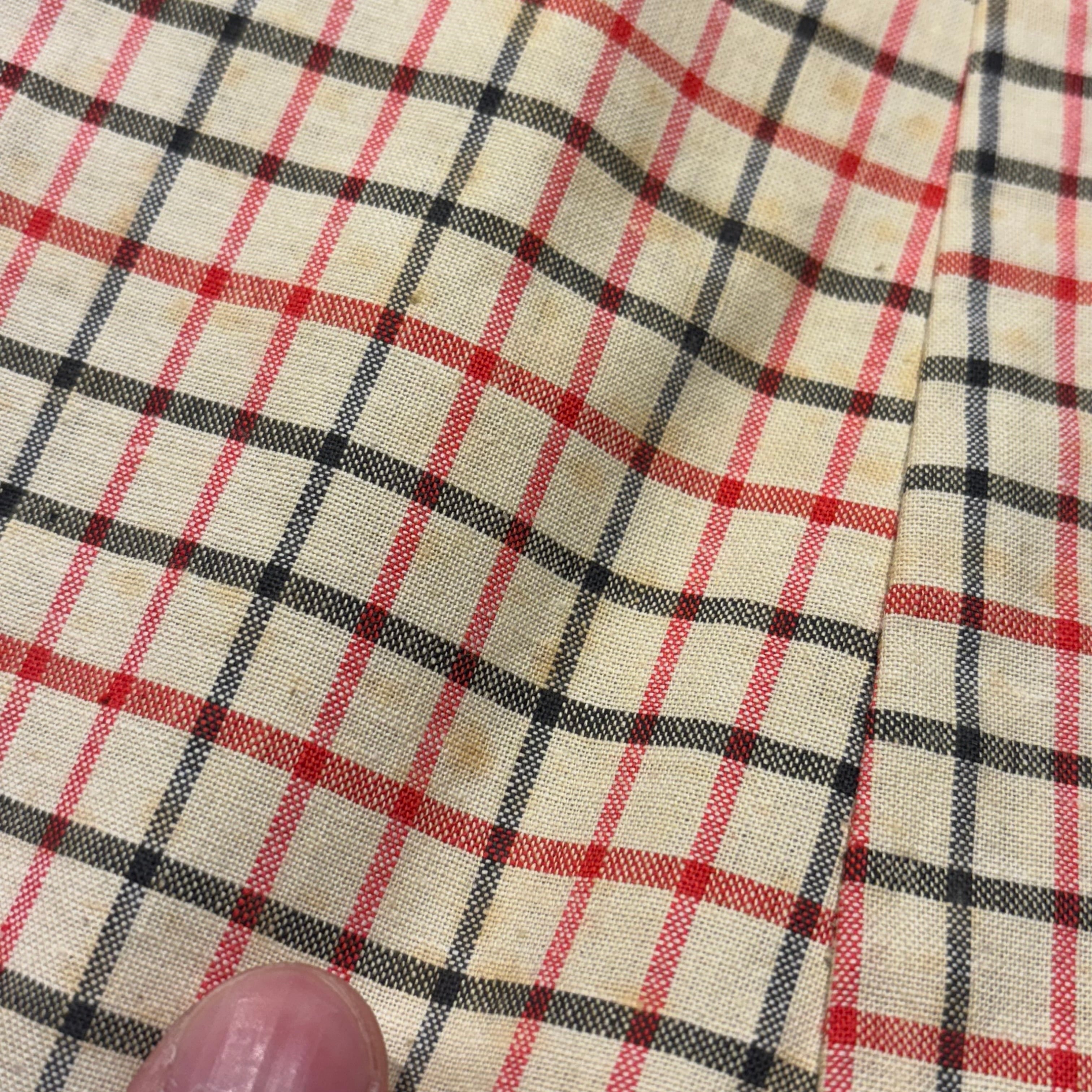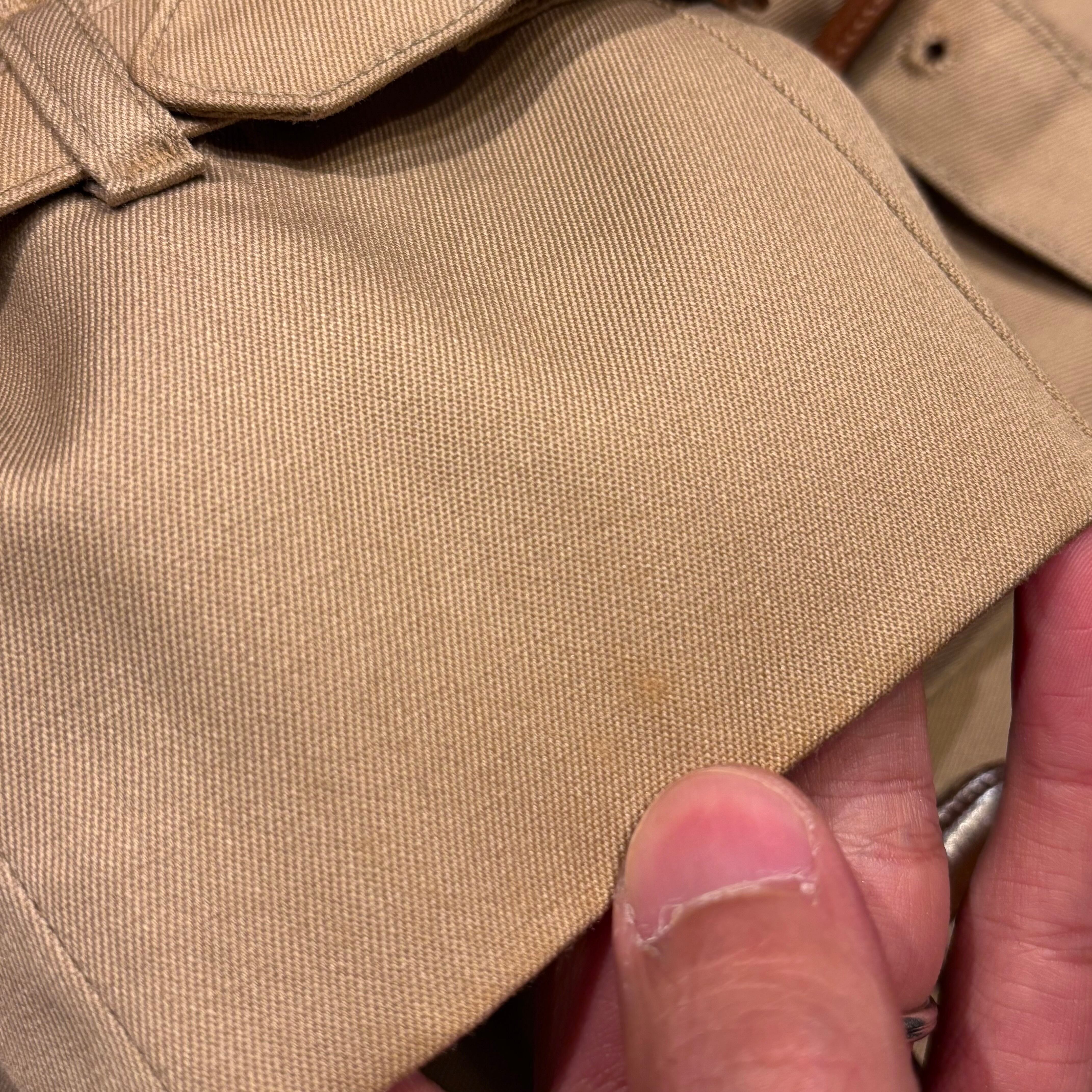 状態:裏地チェック部分に細かな薄汚れが多数見られます。その他表側にも点汚れ等の使用感は見られますが、古着慣れされた方ならまだまだ綺麗な状態。