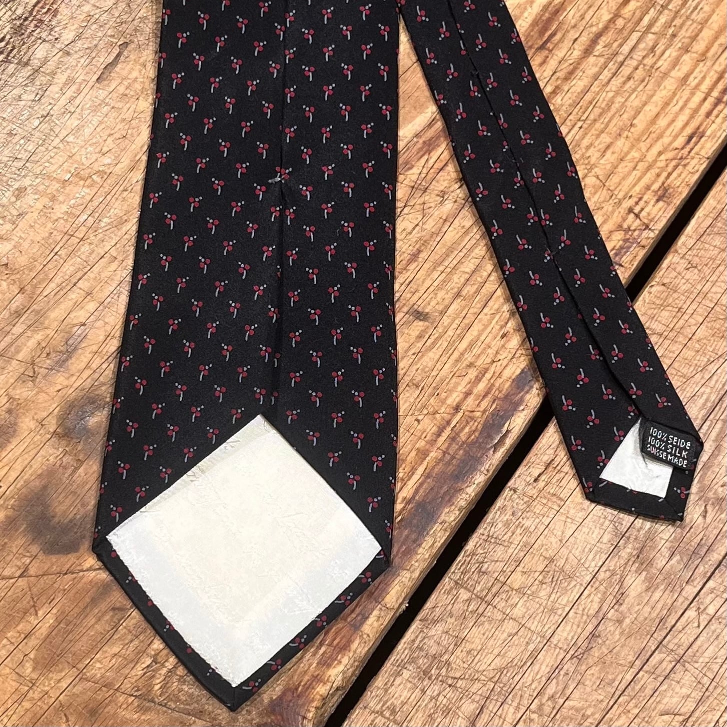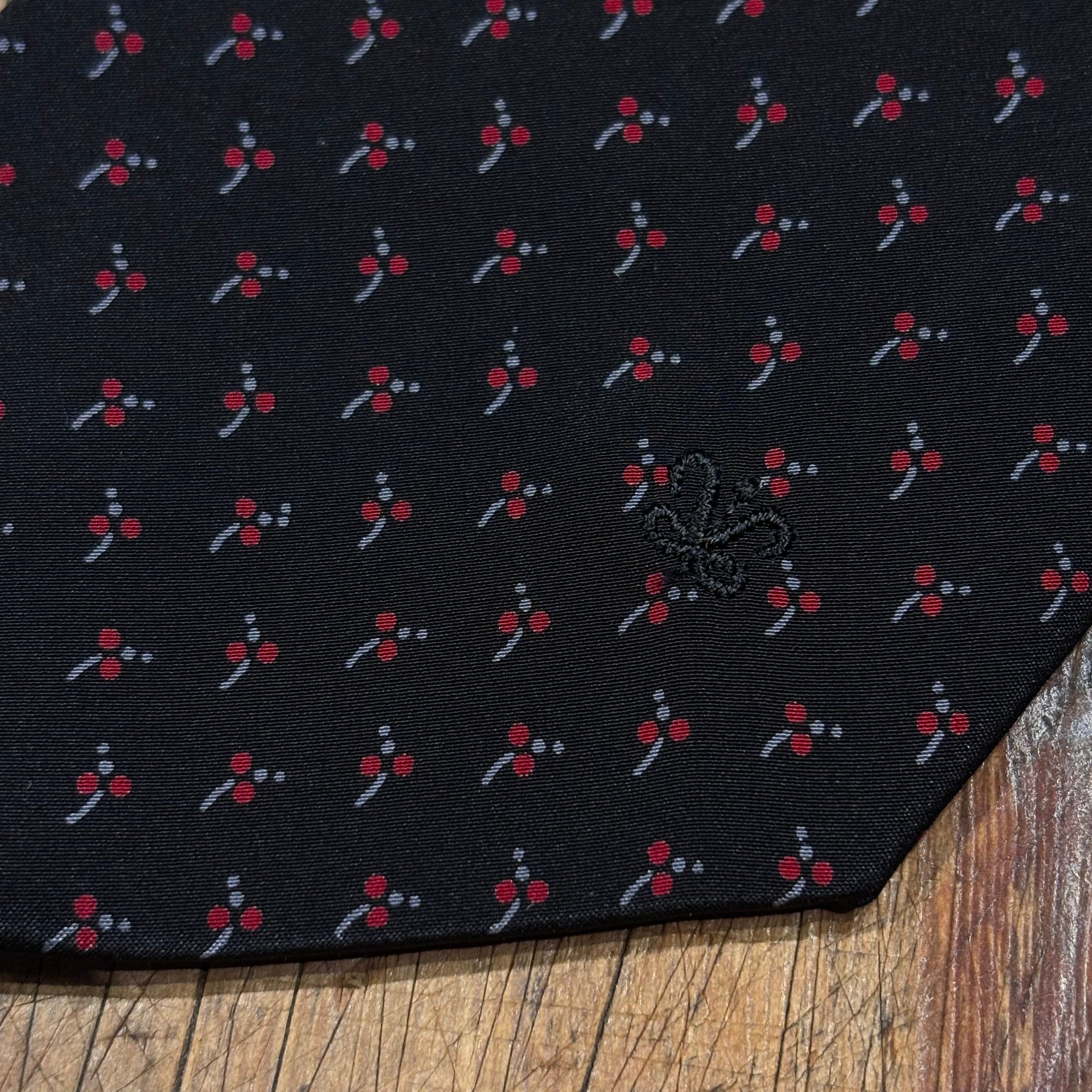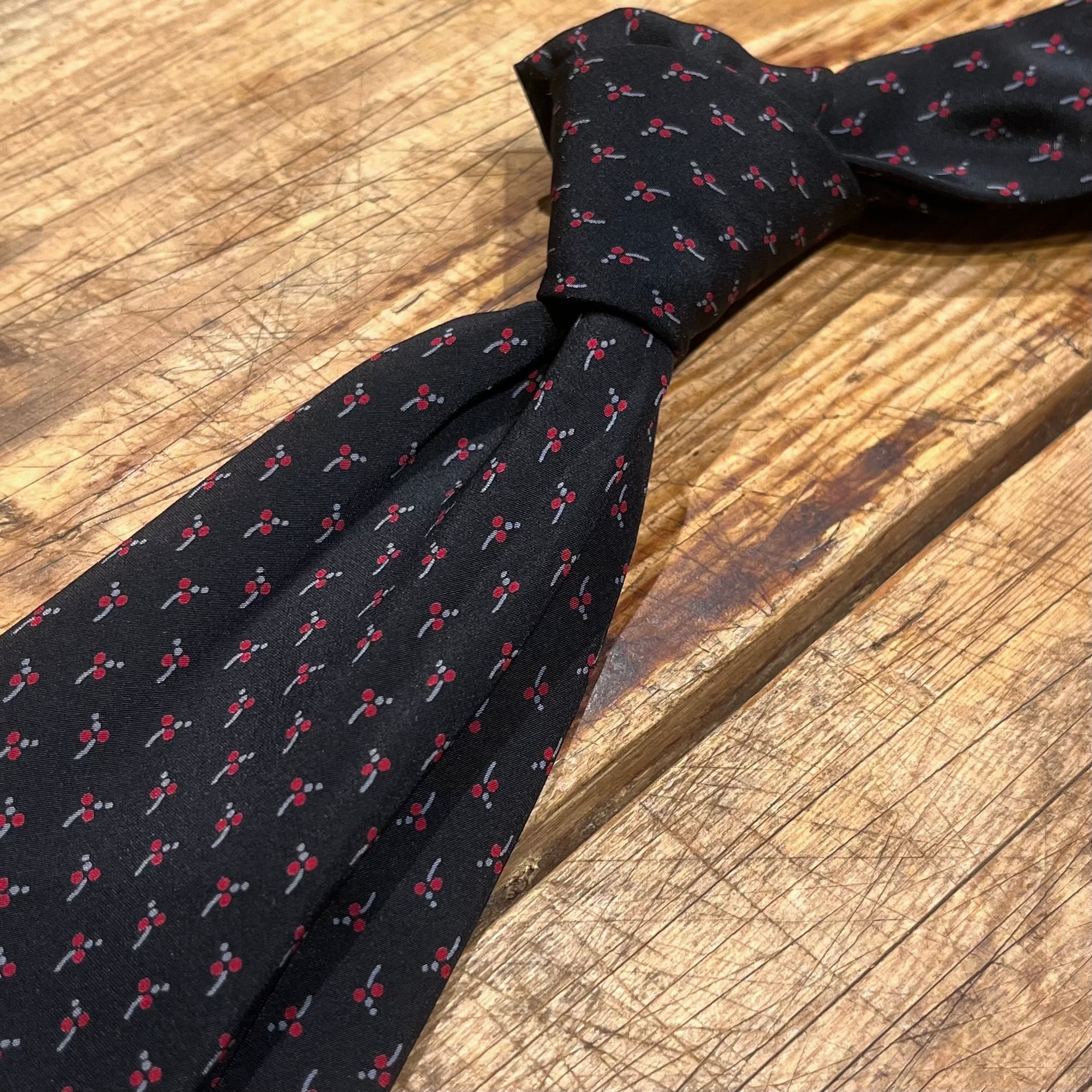 ブラックのベースに細かな柄使い、程良く艶感あるスイス製シルクタイ。