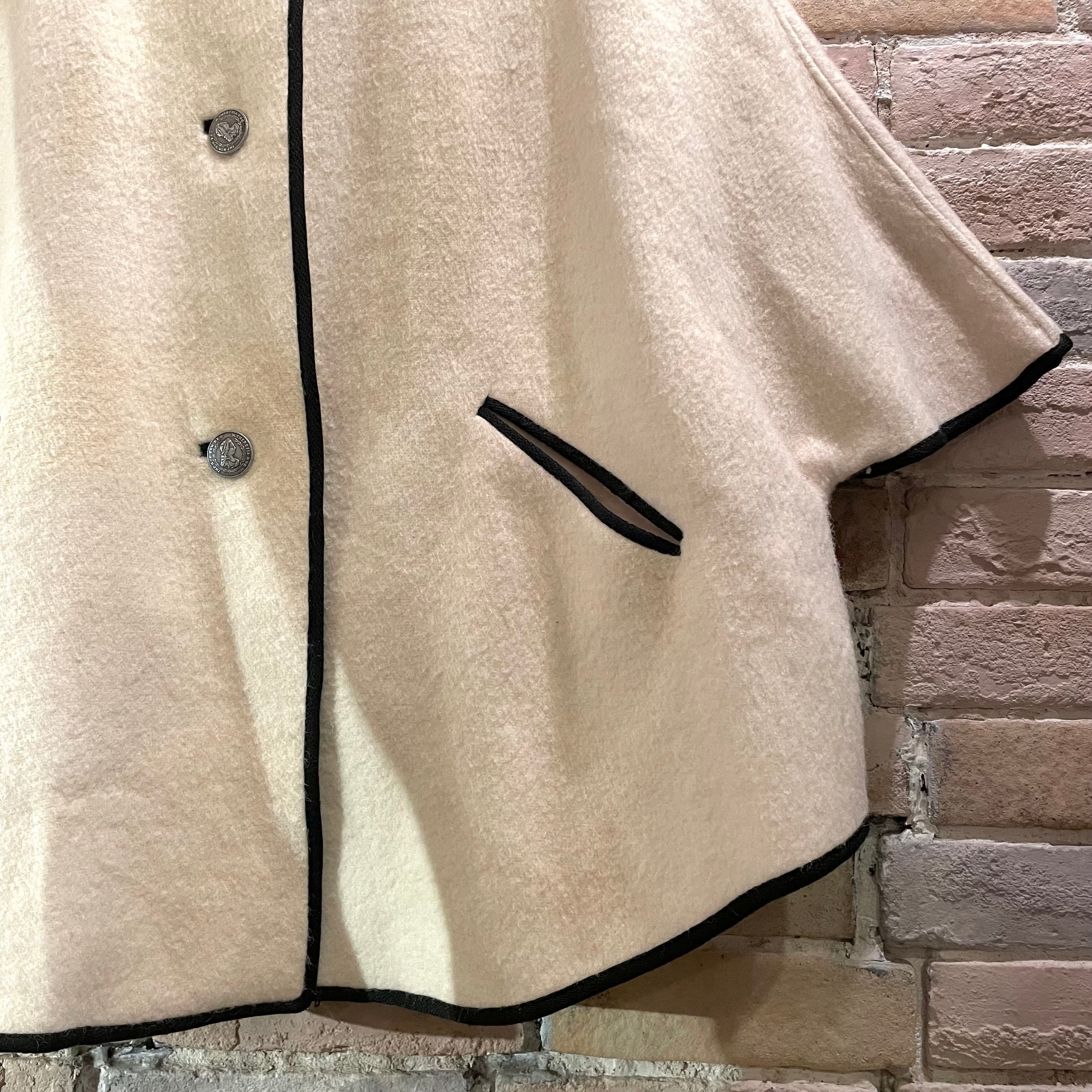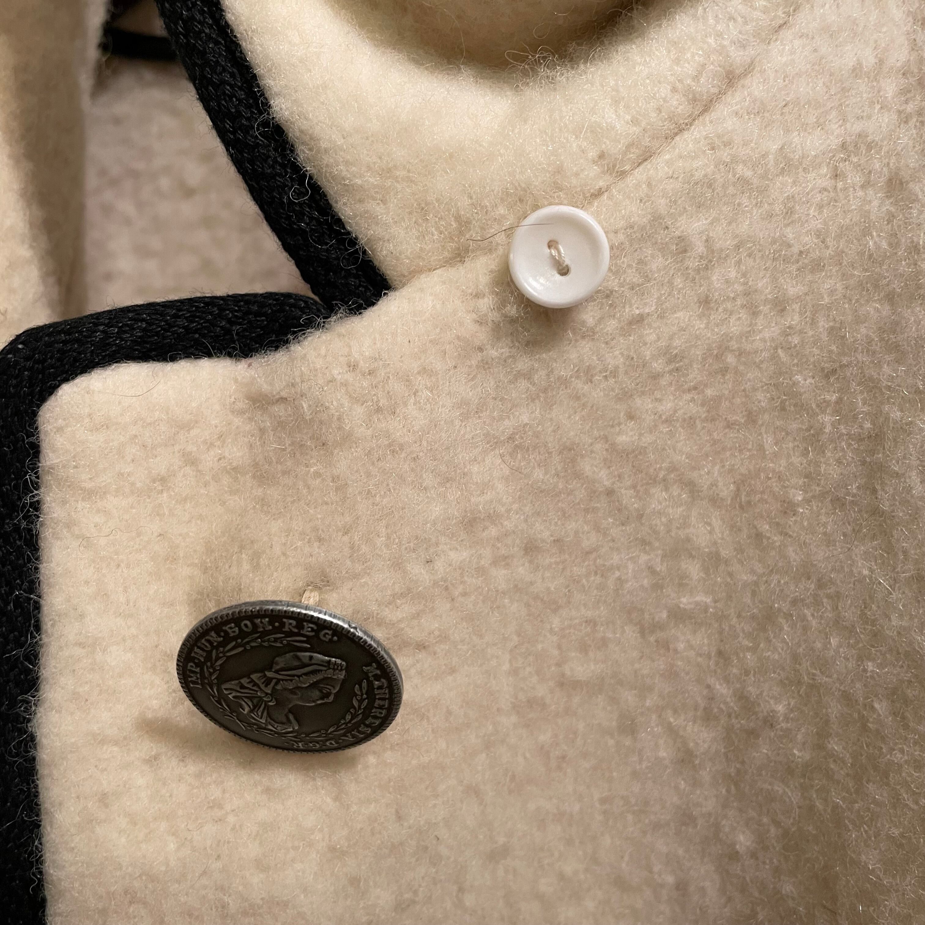 チロリアンジャケットとケープの間のようなデザインで、ボタンやポケットの生地も素敵な一着です。
