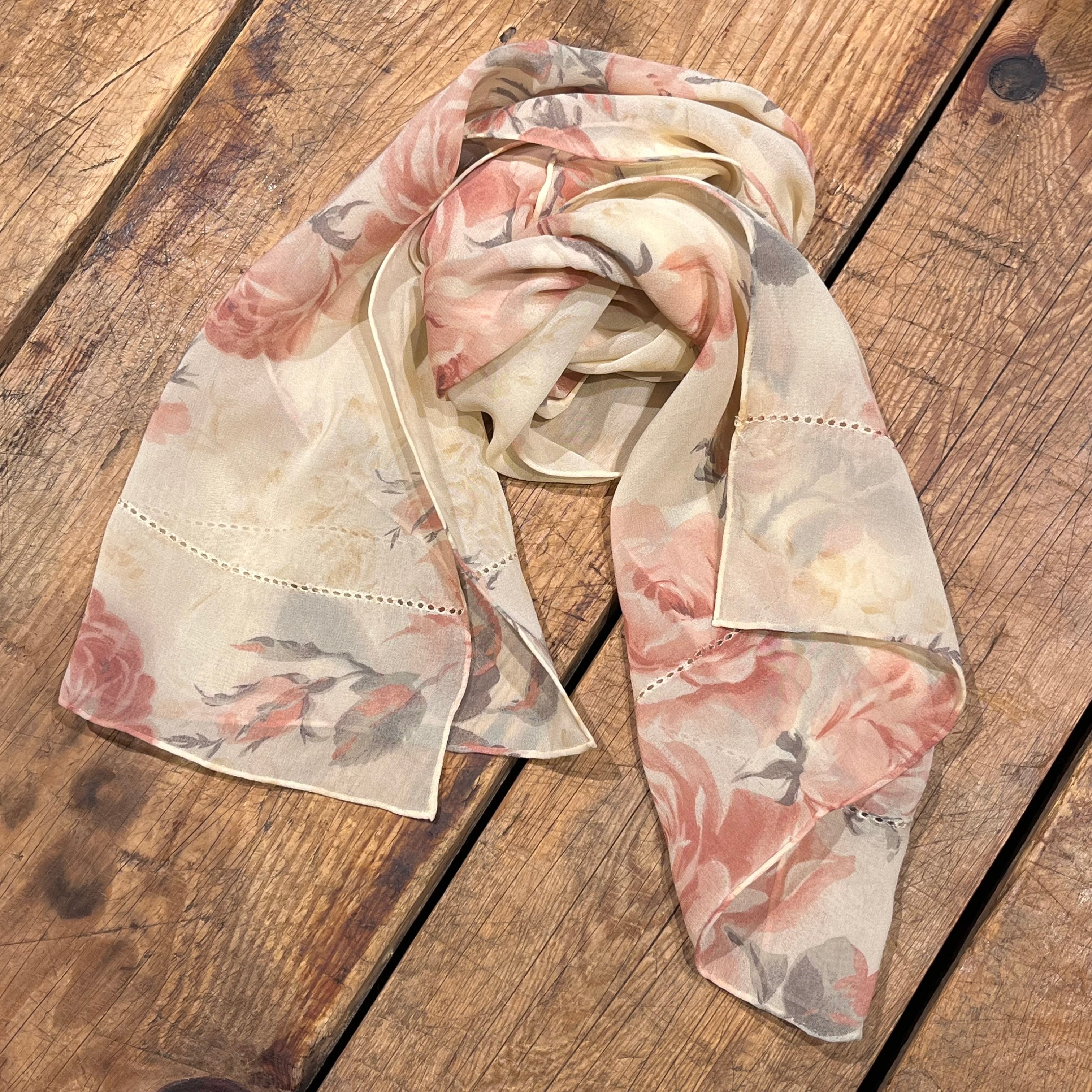margaret howell "silk stole" ivoly pink 日本製 シルク ストール スカーフ マーガレットハウエル 花柄 アイボリー ピンク