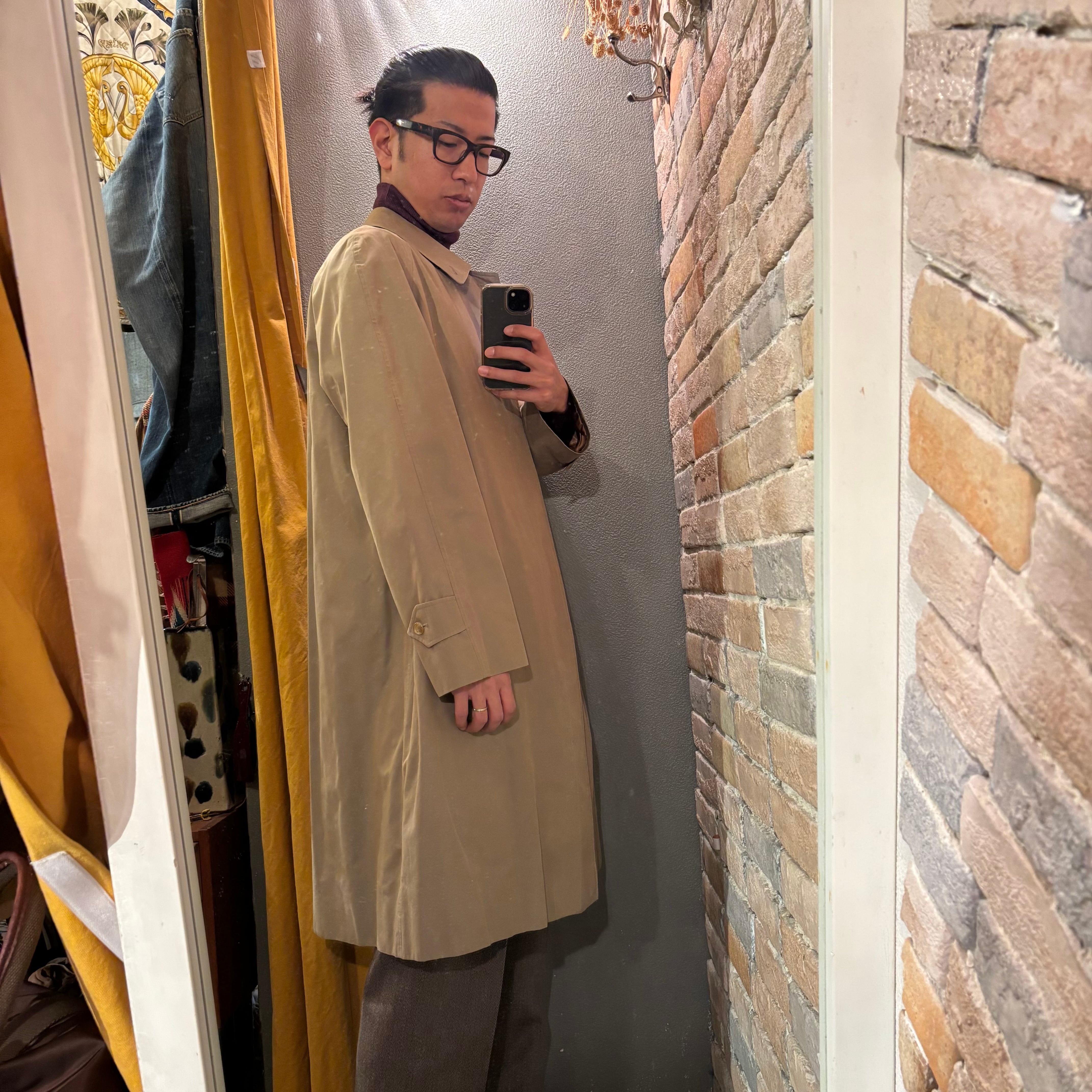 Burberry サイズ48(UK38) カーキベージュ玉虫 ステンカラーコート バーバリー イングランド製
