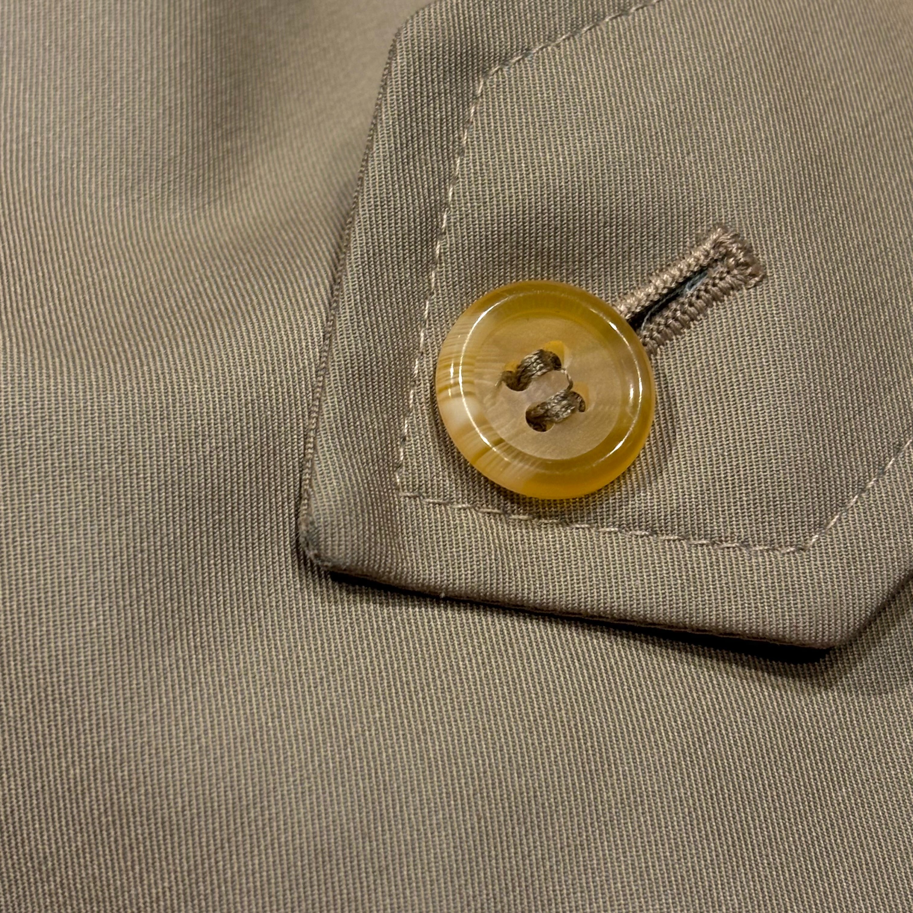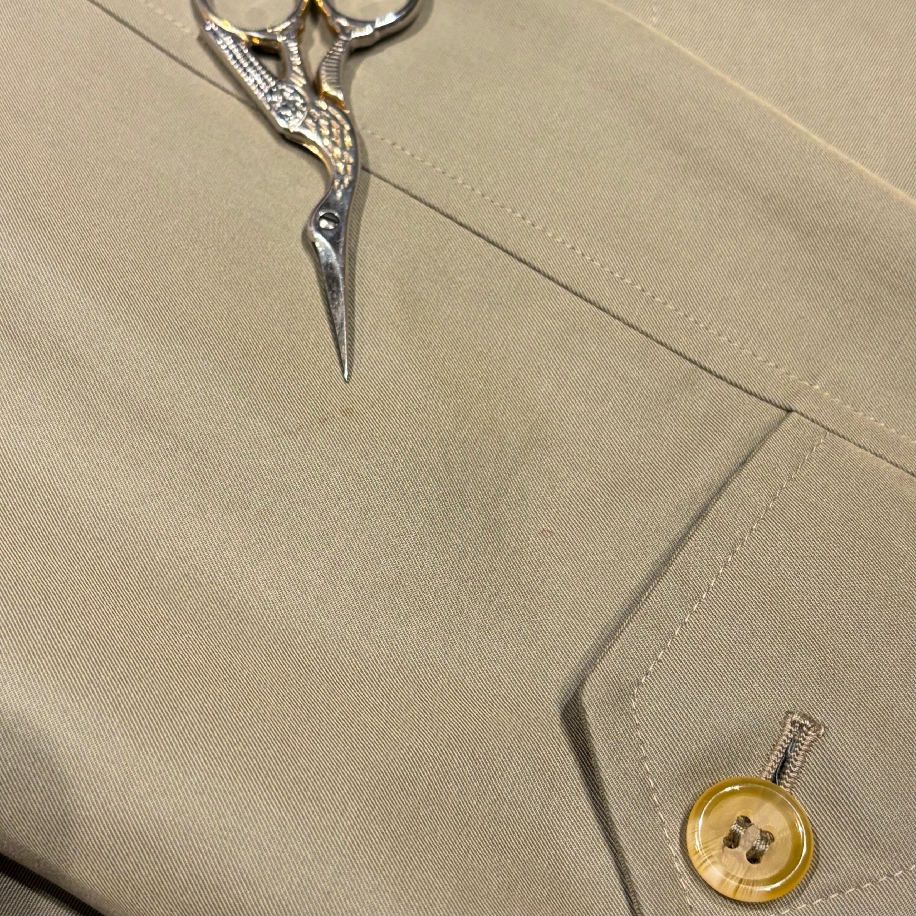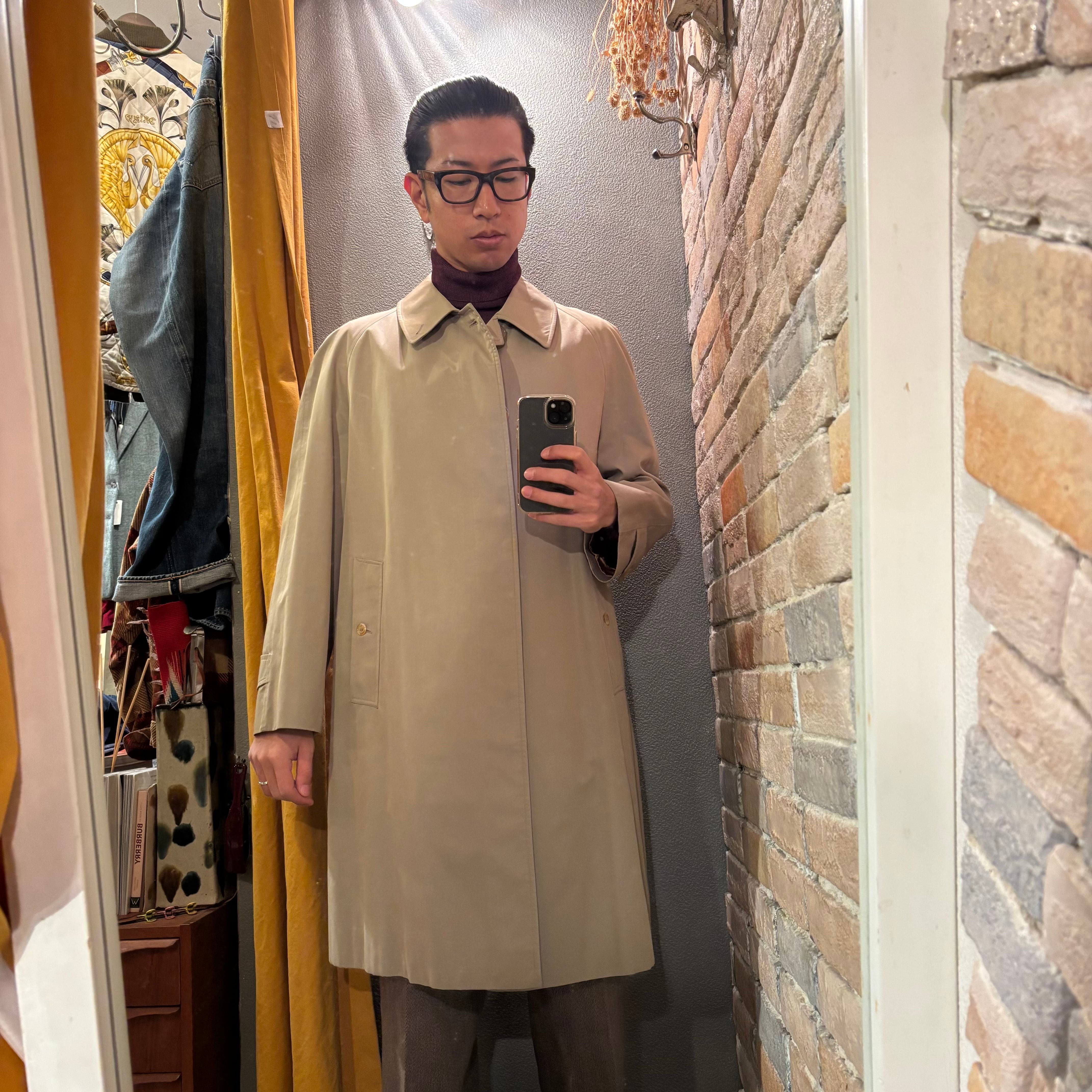 小柄な方も着やすいスッキリめのサイズと光沢感のあるコットン100%のイングランド製ステンカラーコート。