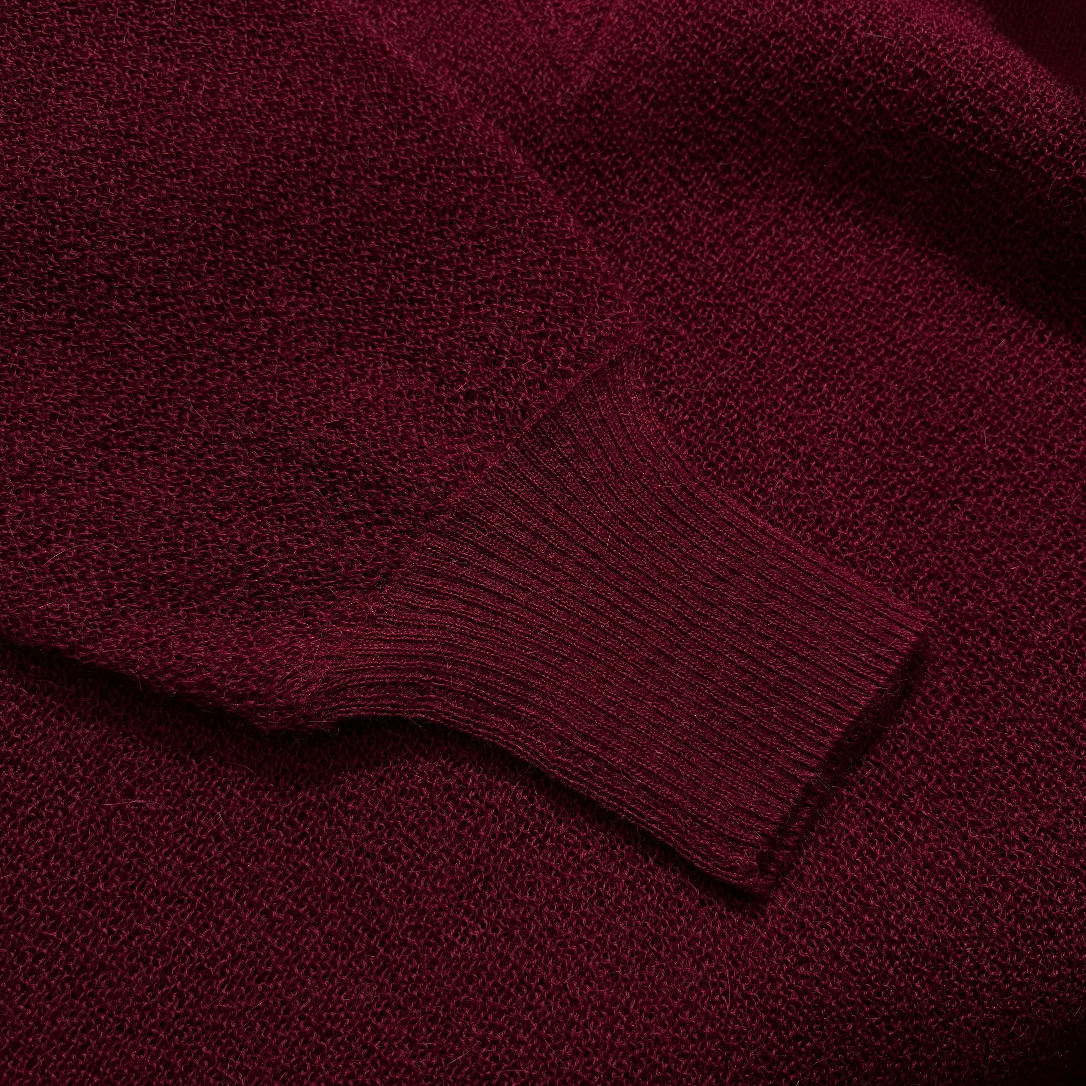 アルパカ100%の柔らかな質感のパール編みに深みのあるバーガンディ色が上品な雰囲気。