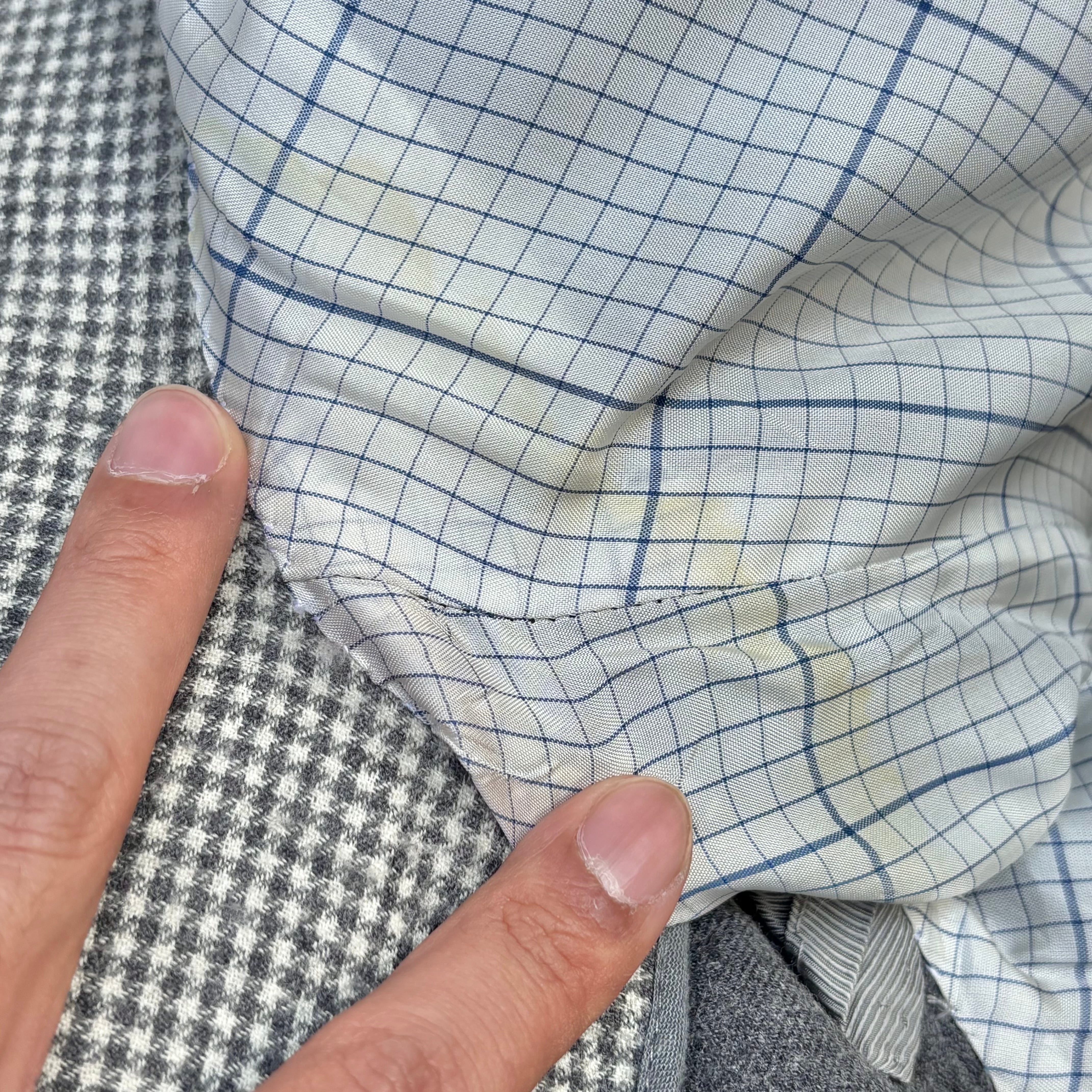 袖口開き見せ、サイドベンツ、大見返し仕様。