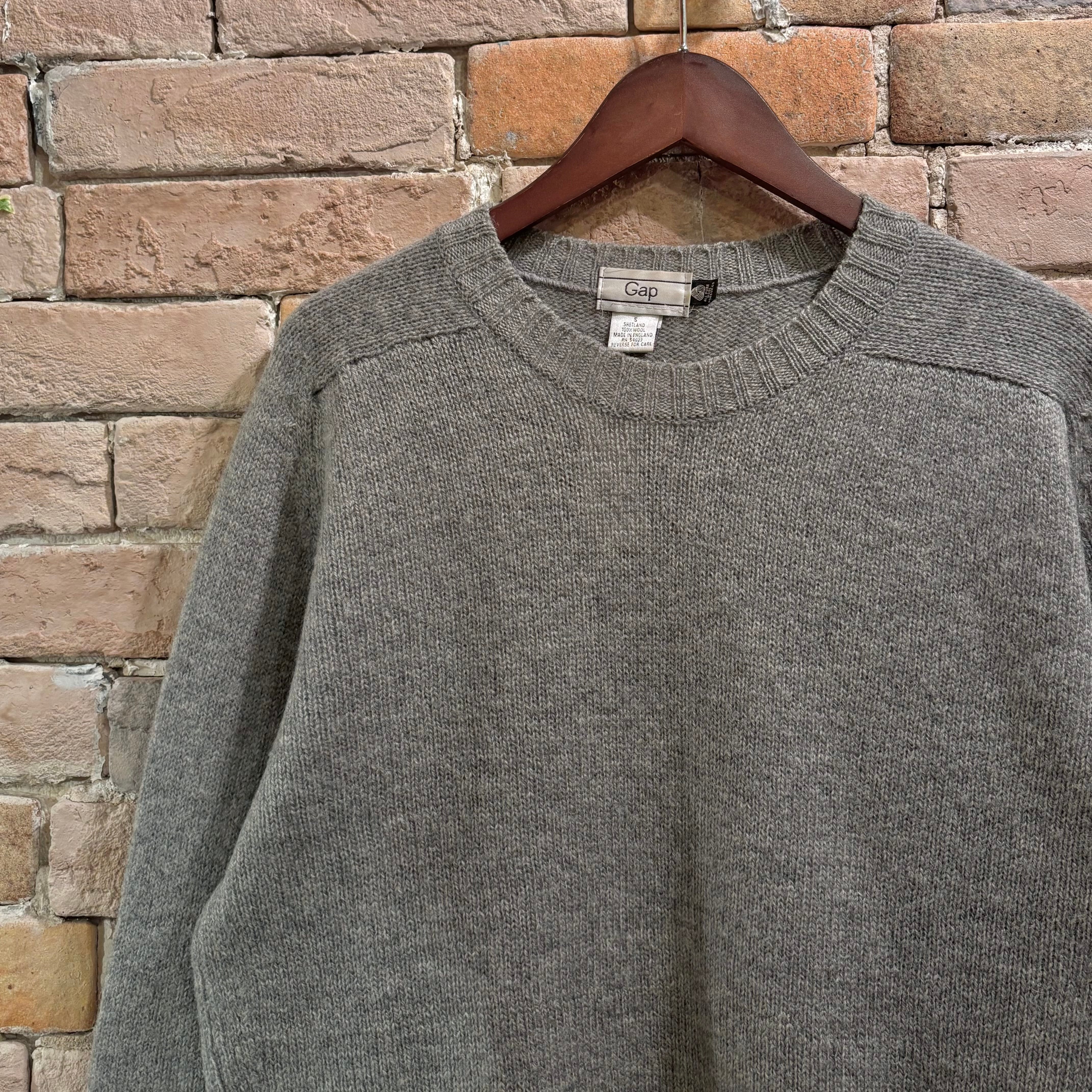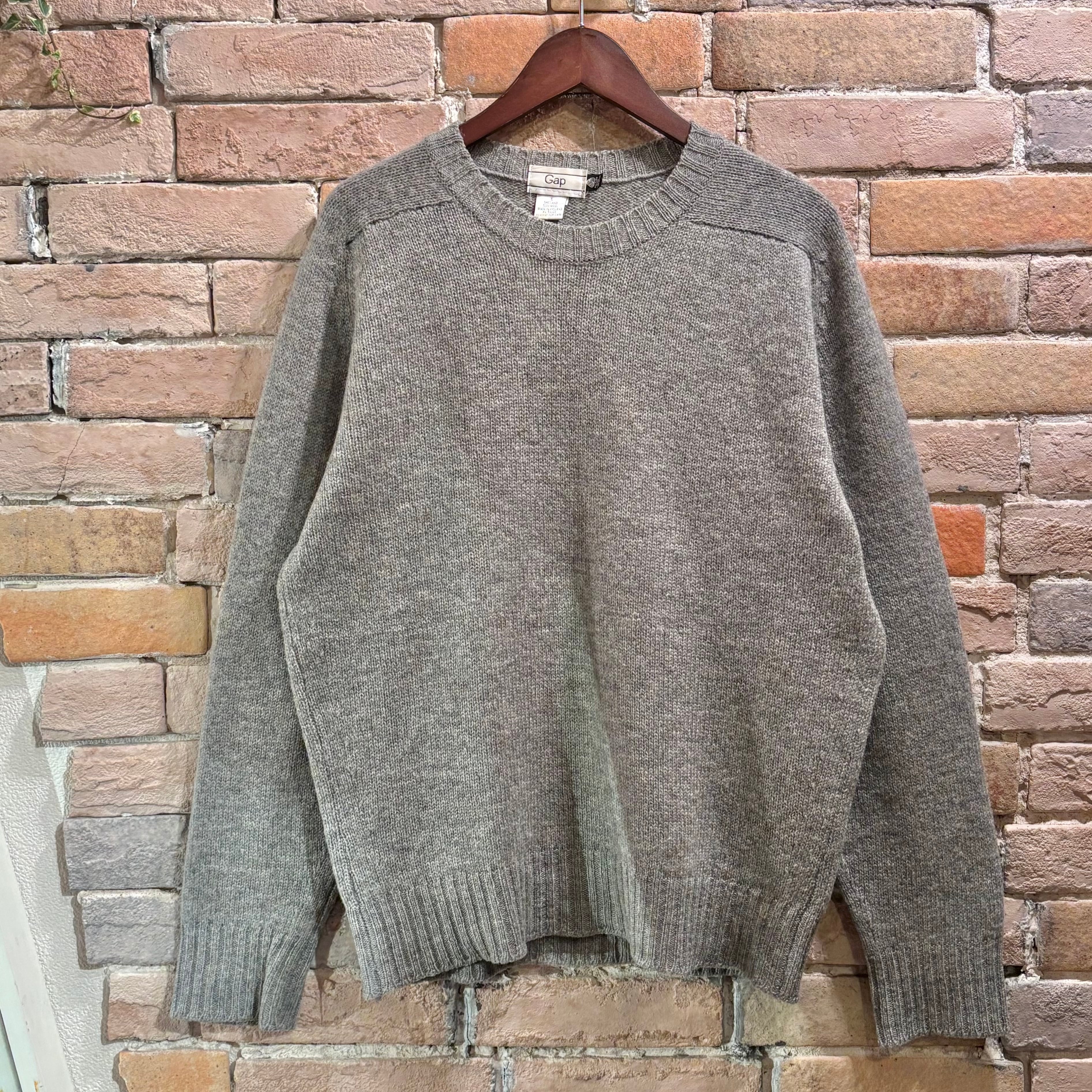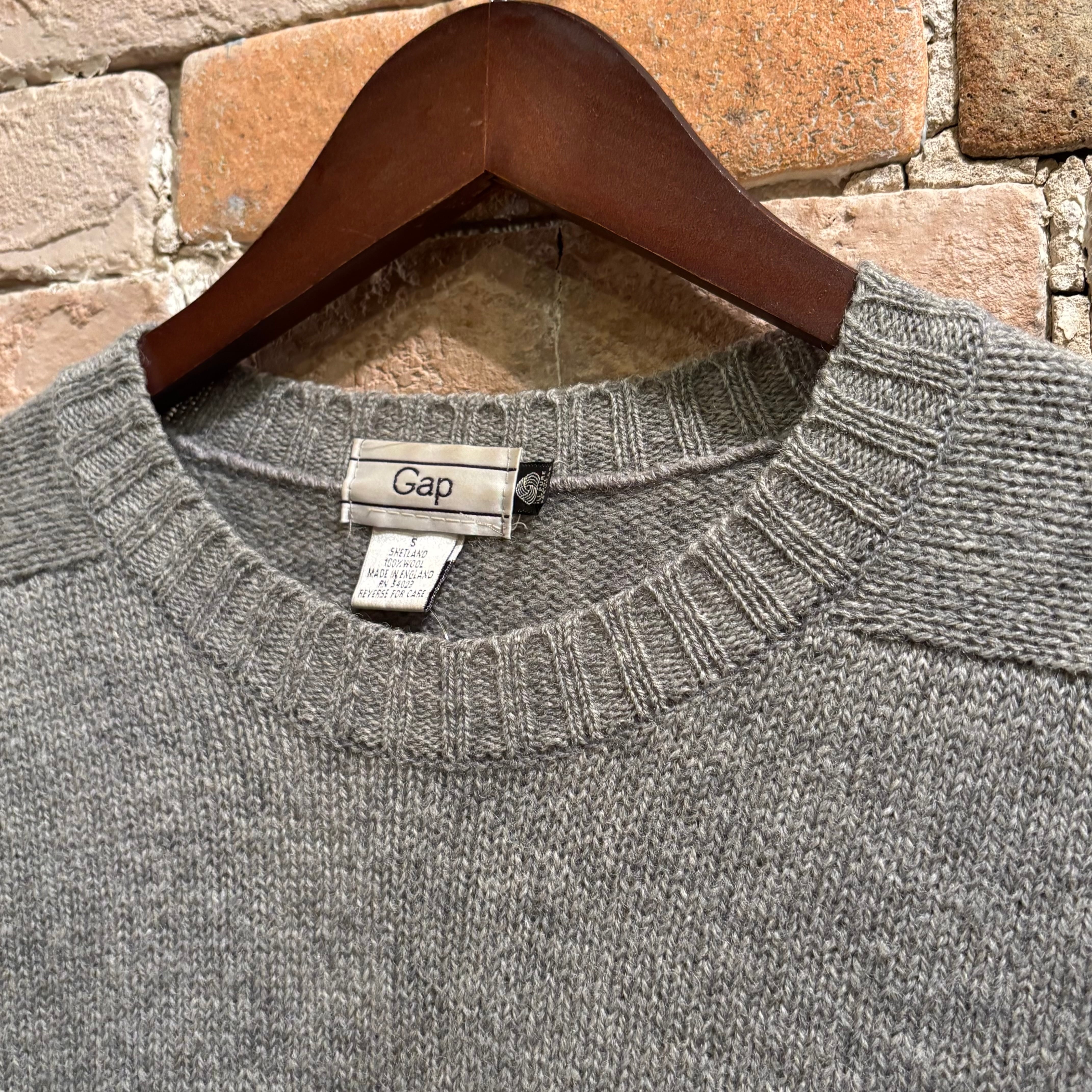 OLD GAP サイズS 80's シェットランドウール グレークルーネックニット サドルショルダー イングランド製 オールドギャップ