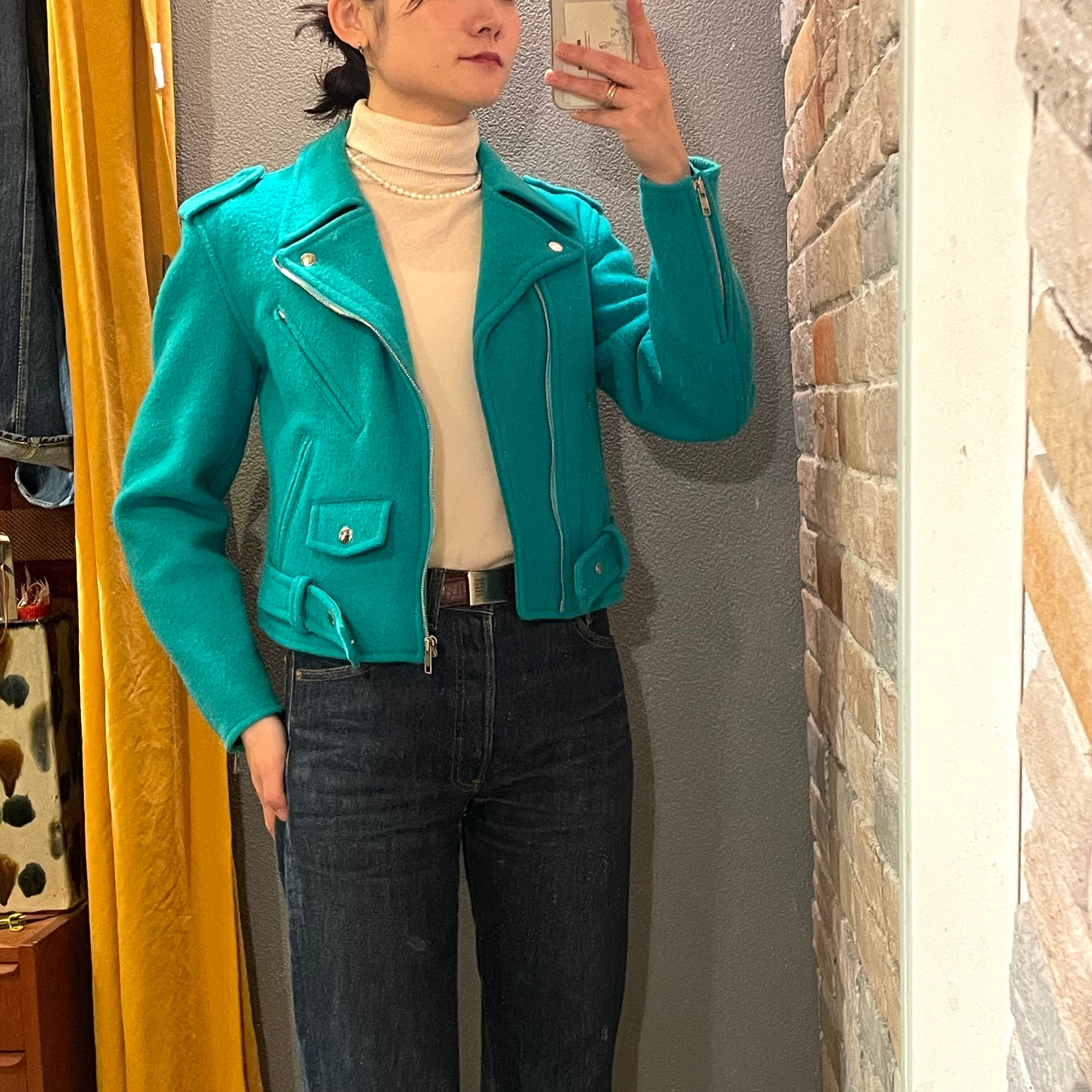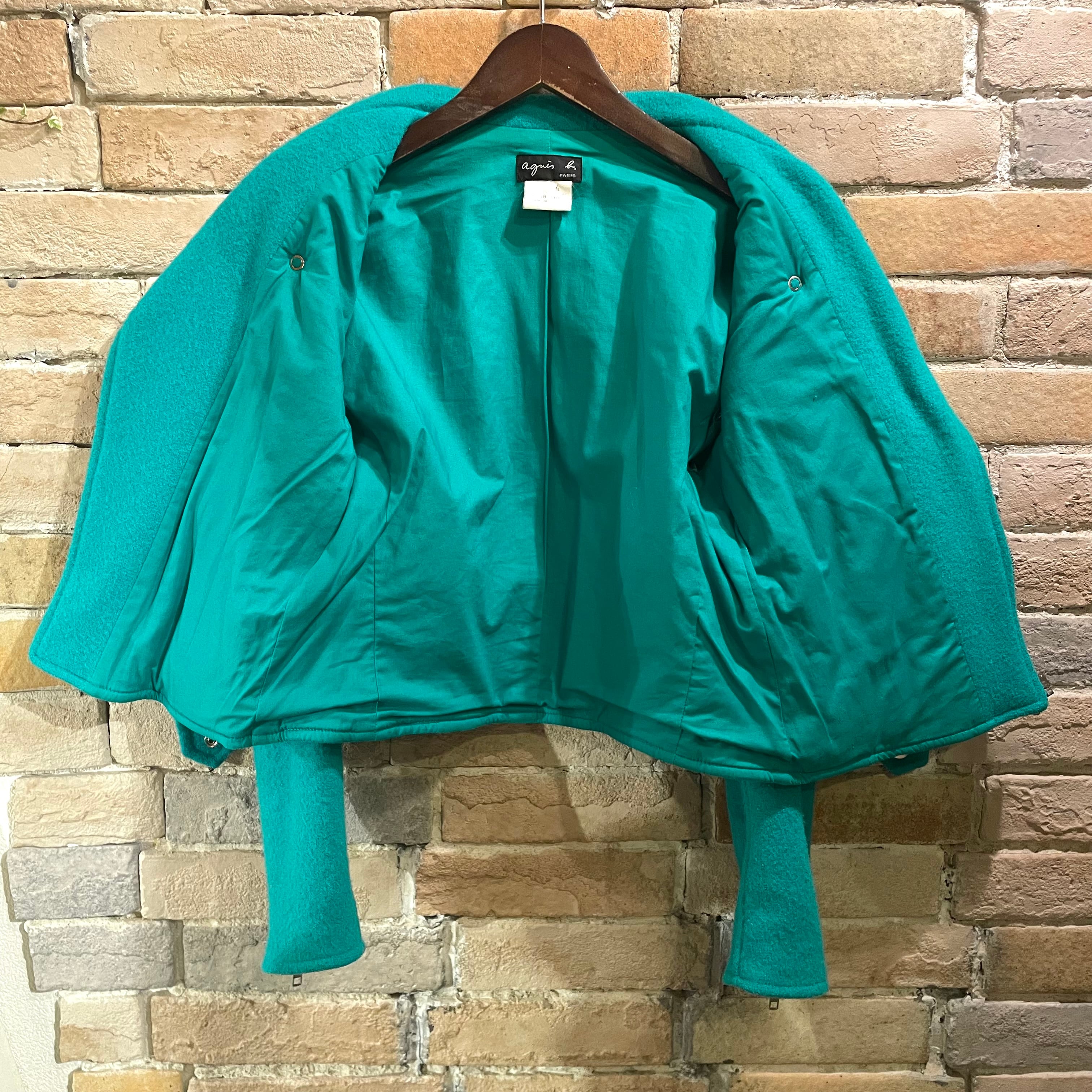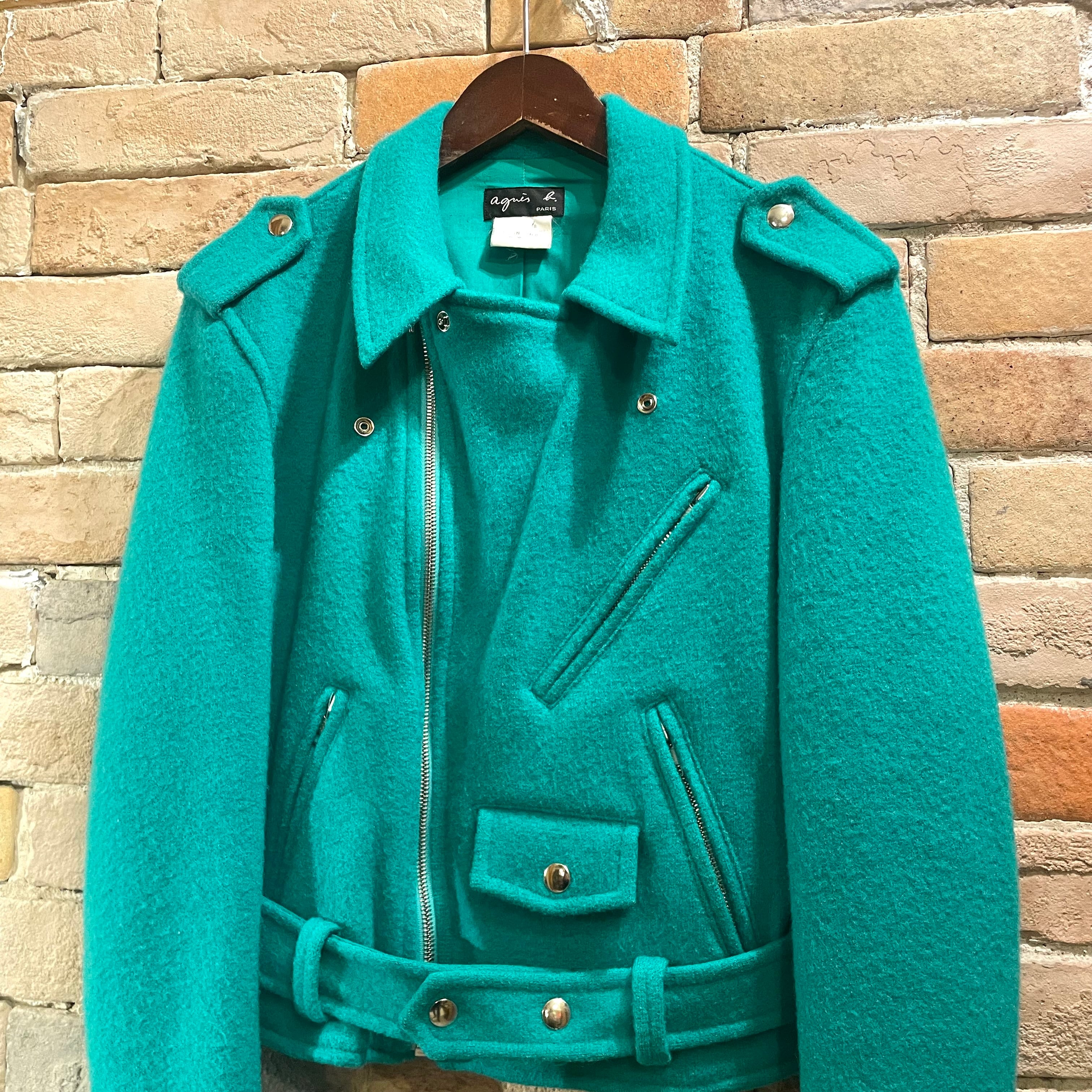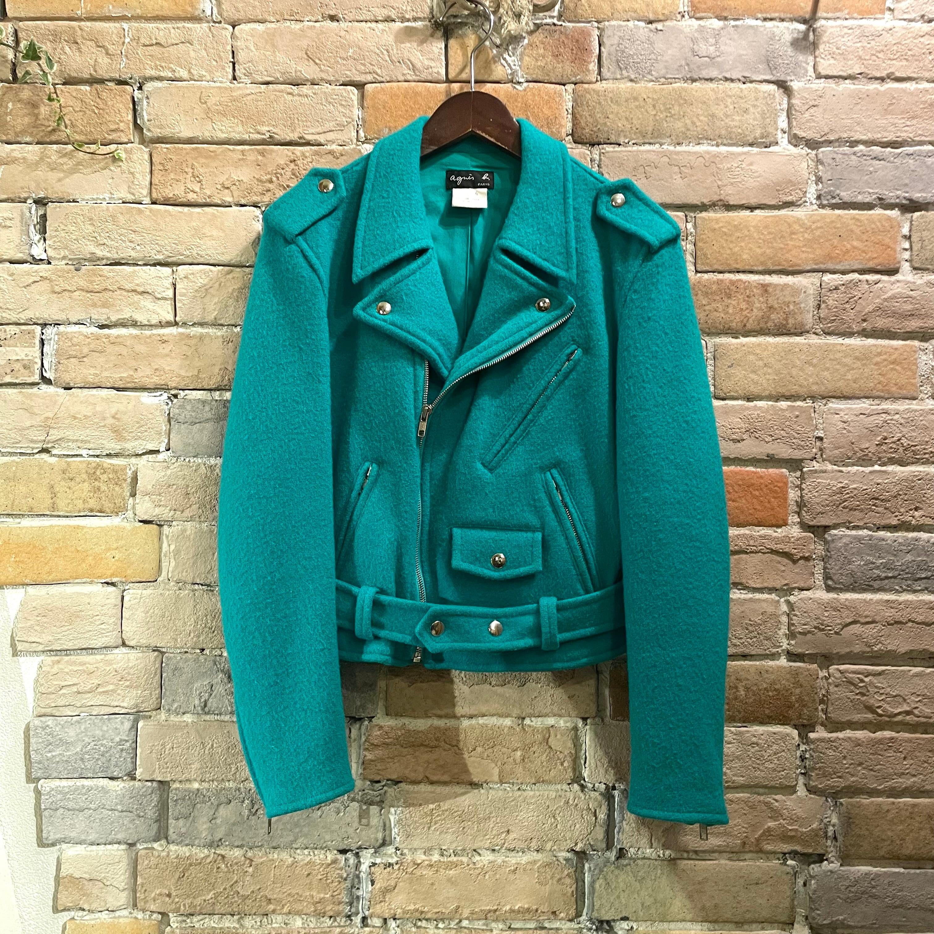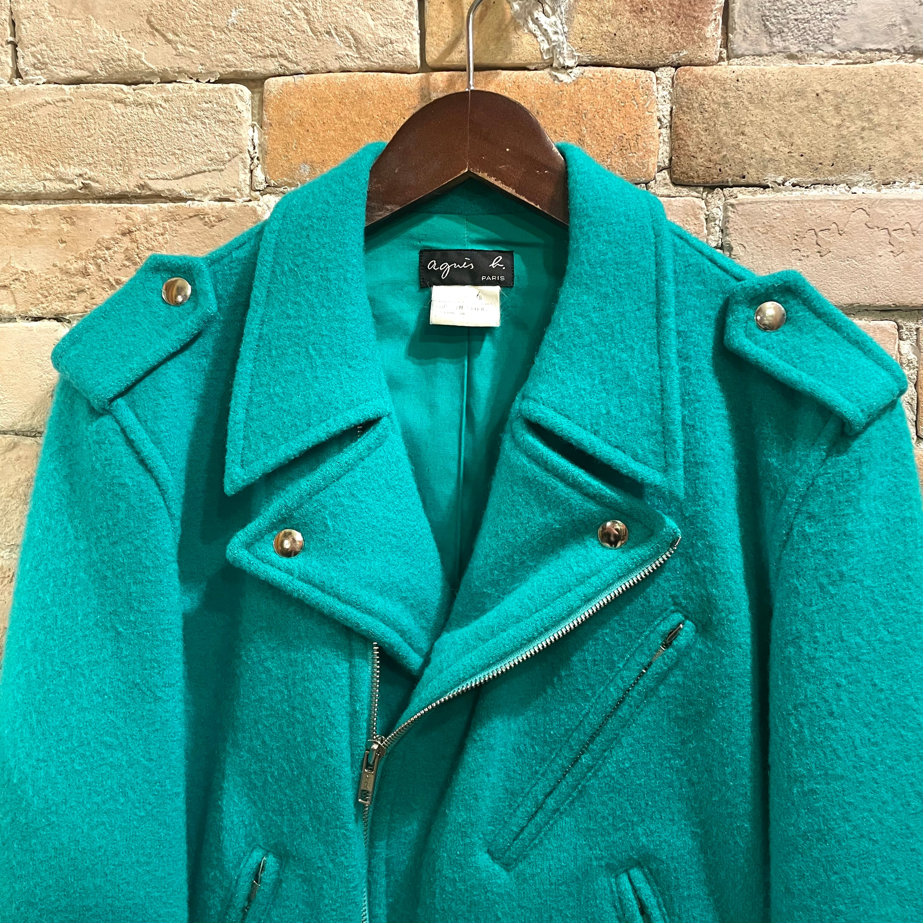 agnes b "ladies wool riders jacket" フランス製 ブルーグリーン ウール ライダースジャケット アニエスベー