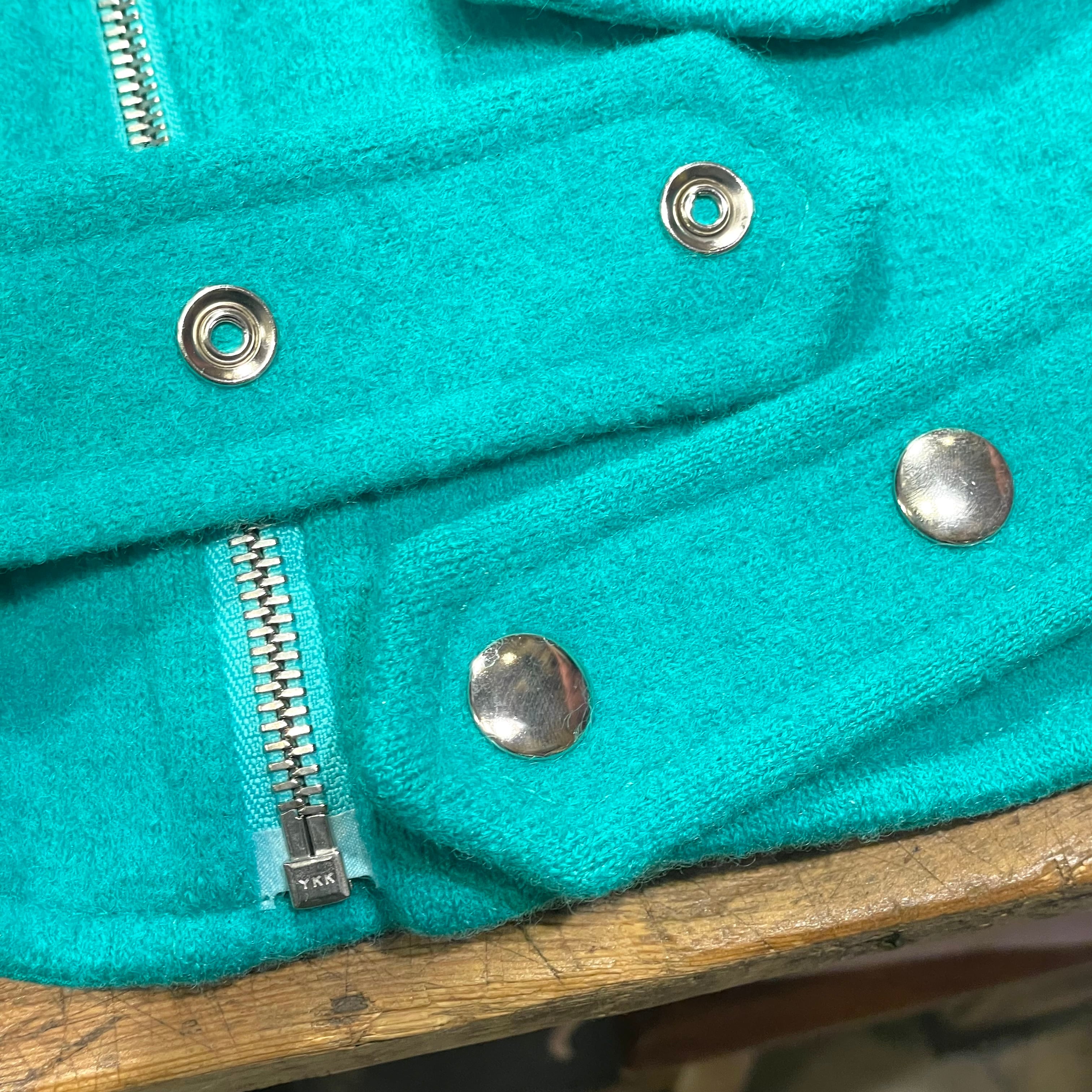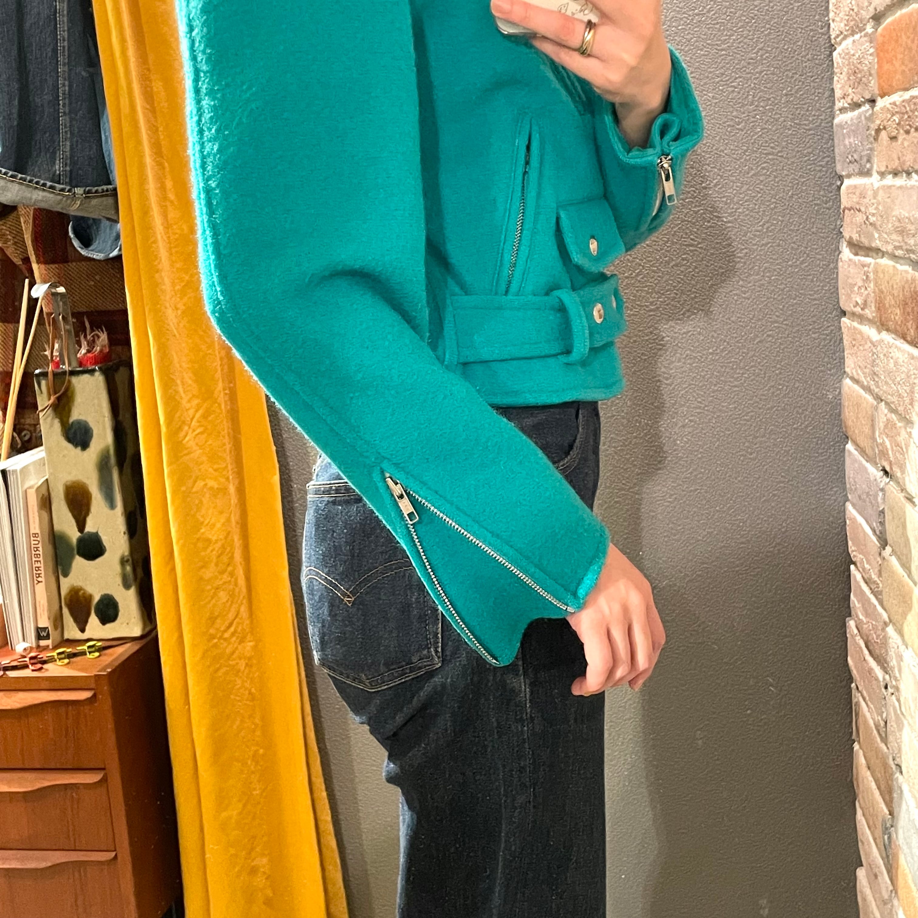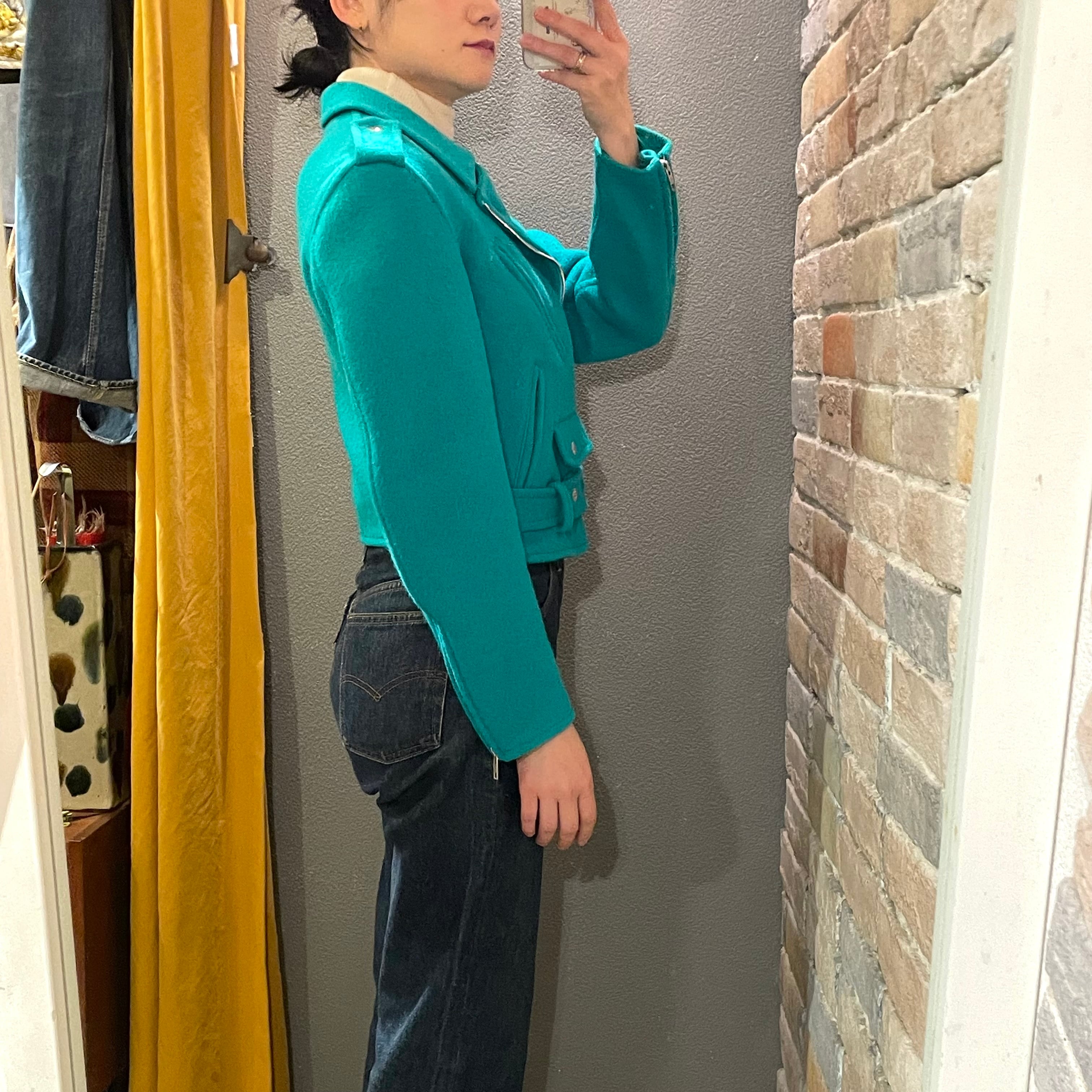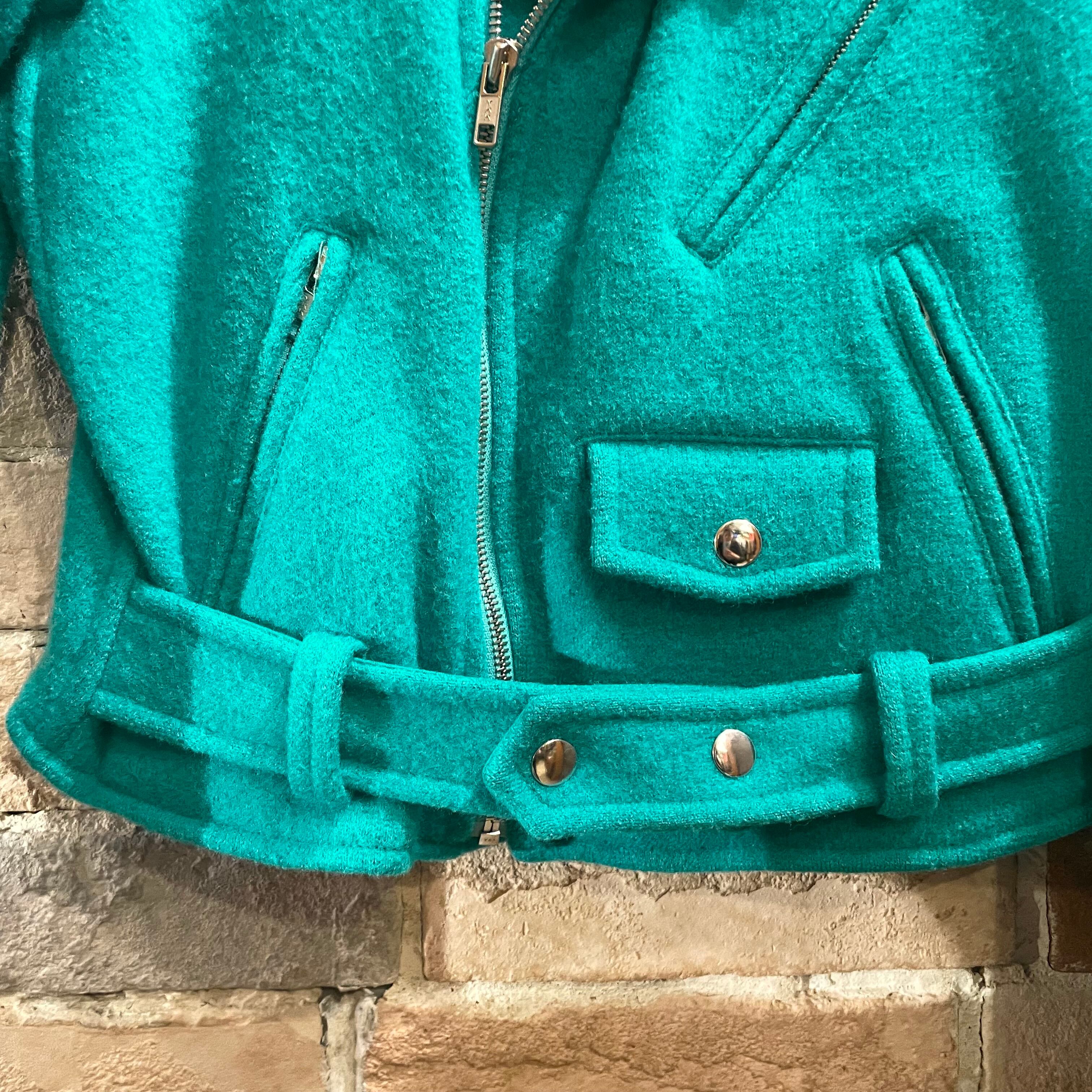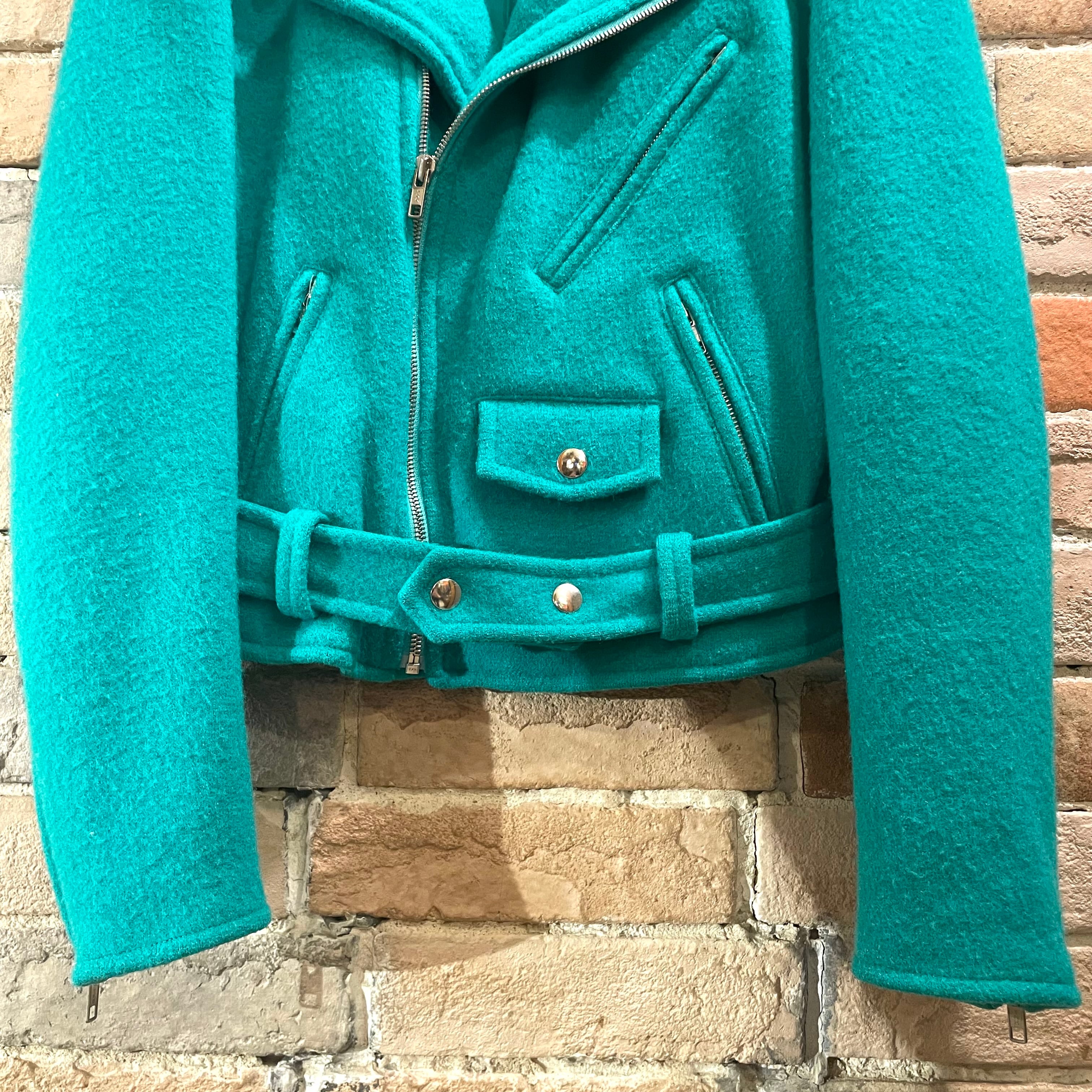 agnes b "ladies wool riders jacket" フランス製 ブルーグリーン ウール ライダースジャケット アニエスベー