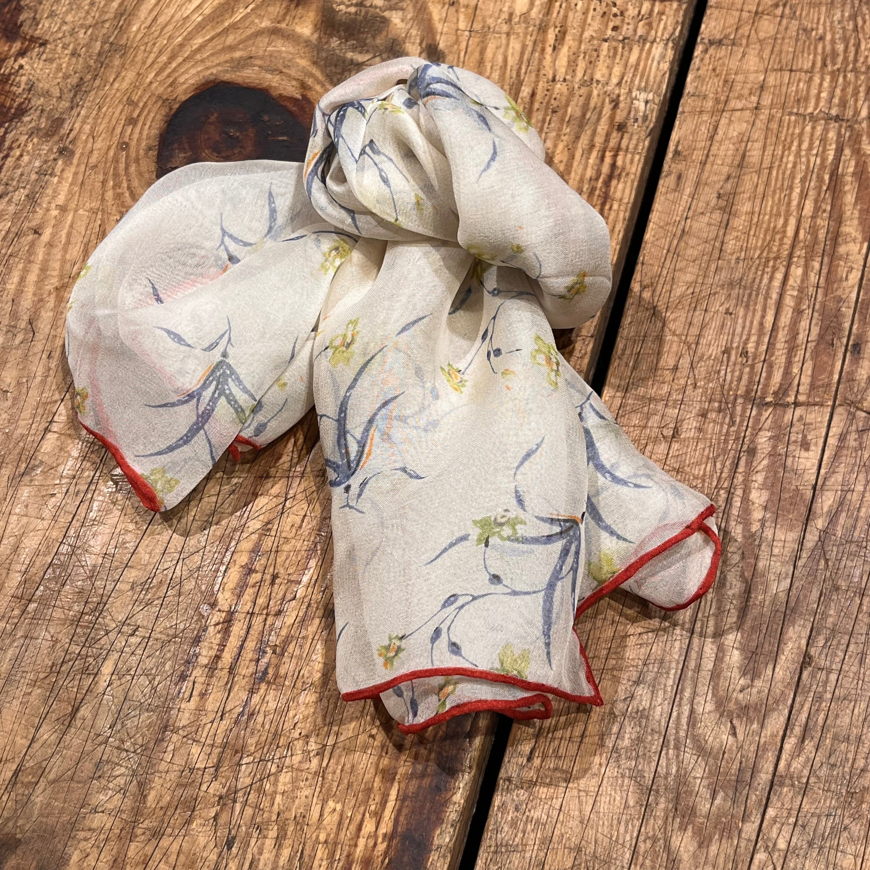 margaret howell "silk stole" white red シルク ストール スカーフ マーガレットハウエル 花柄 ホワイト レッド