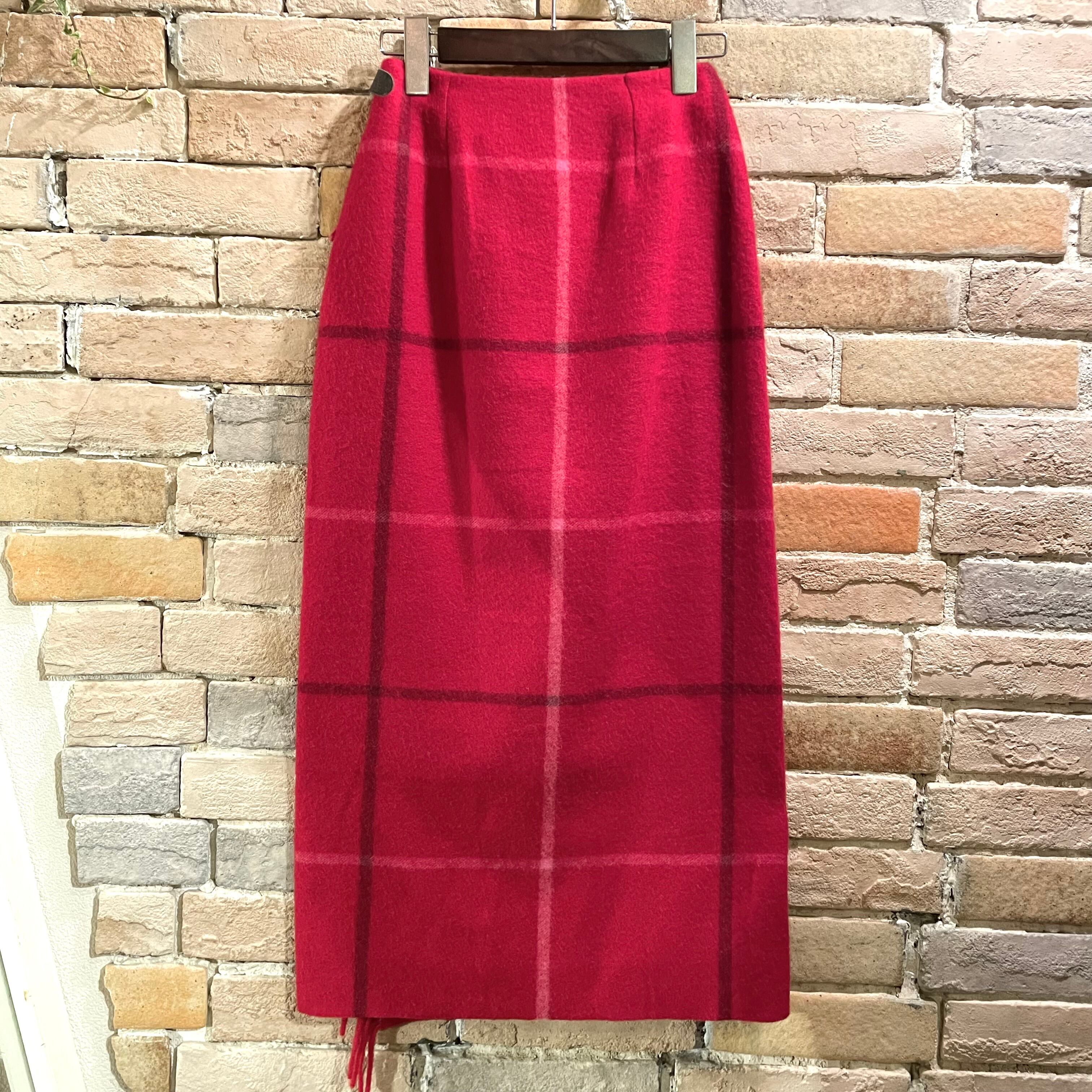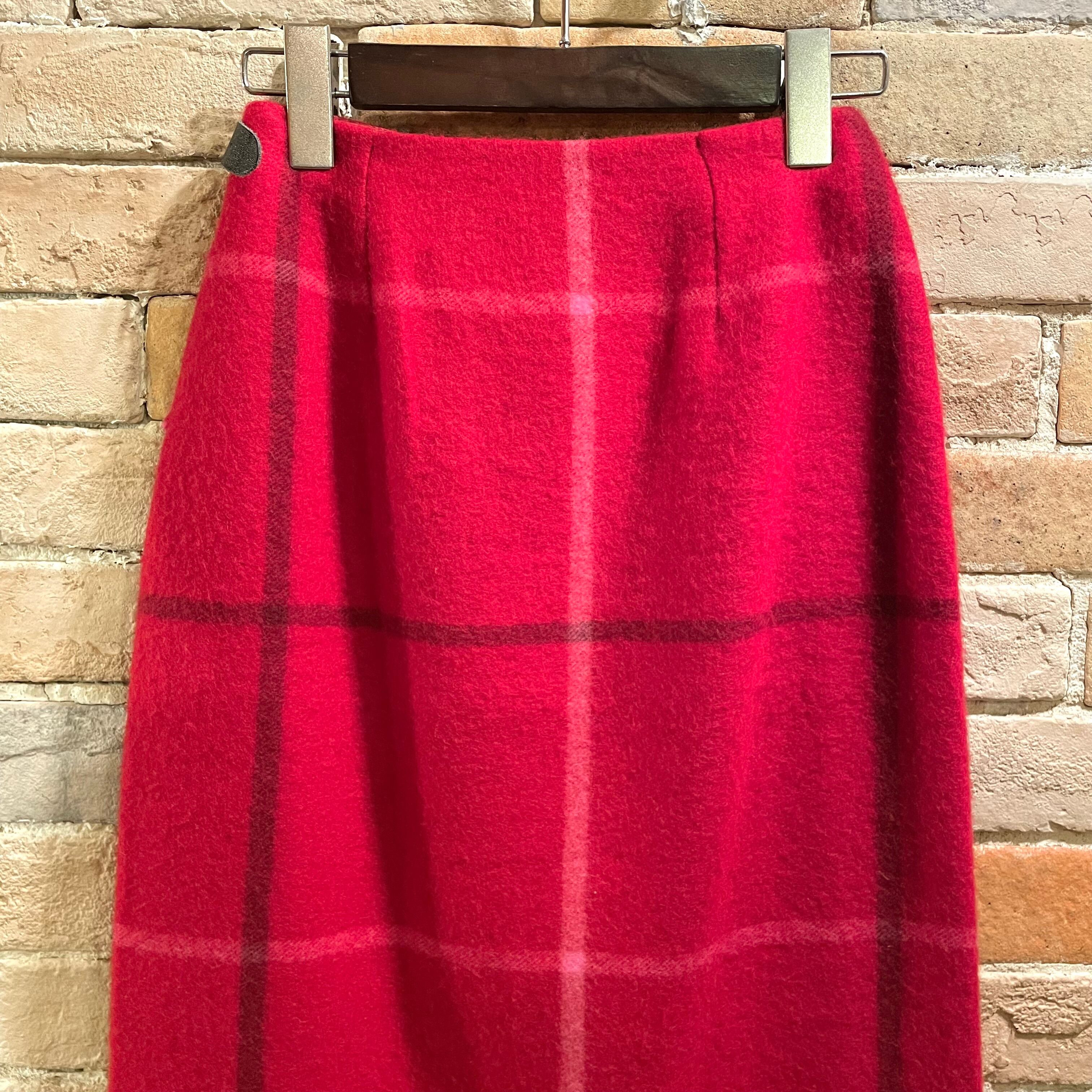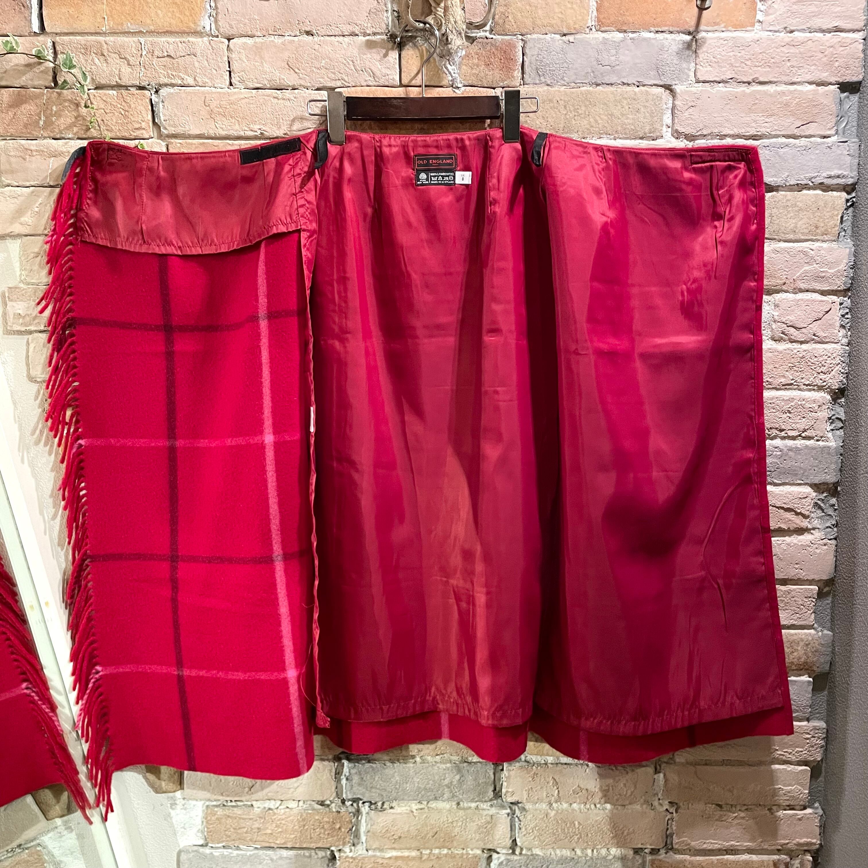 old england "wool wrap skirt"red check size8 スコットランド製 オールドイングランド ウールスカート チェック レッド