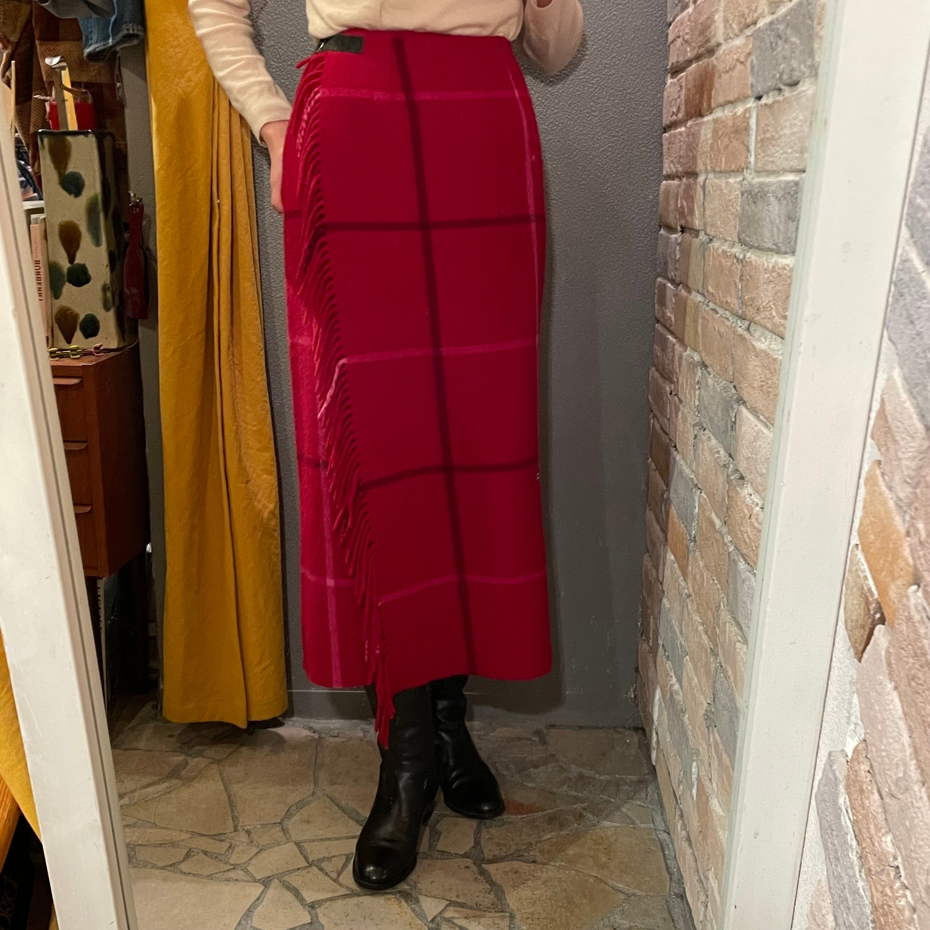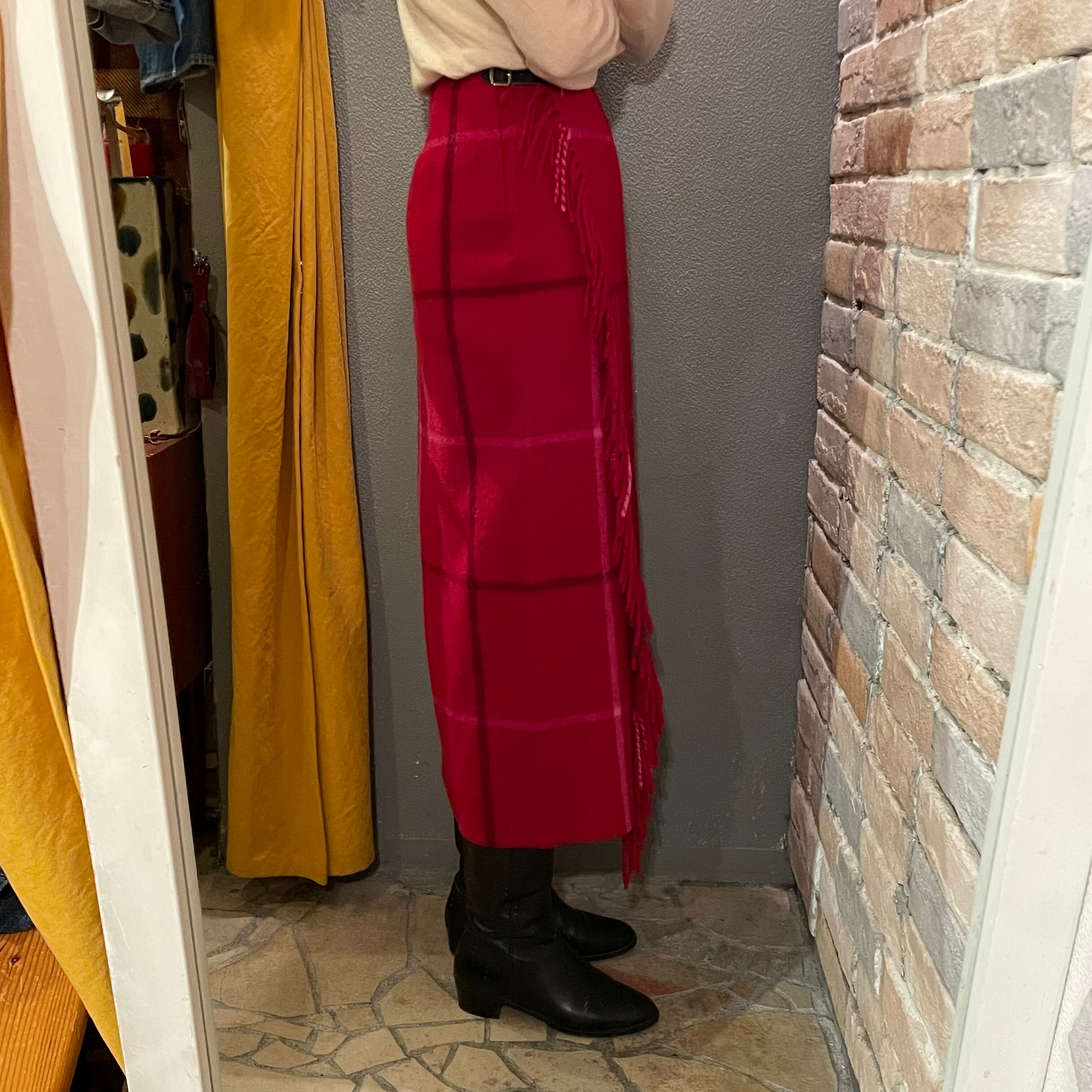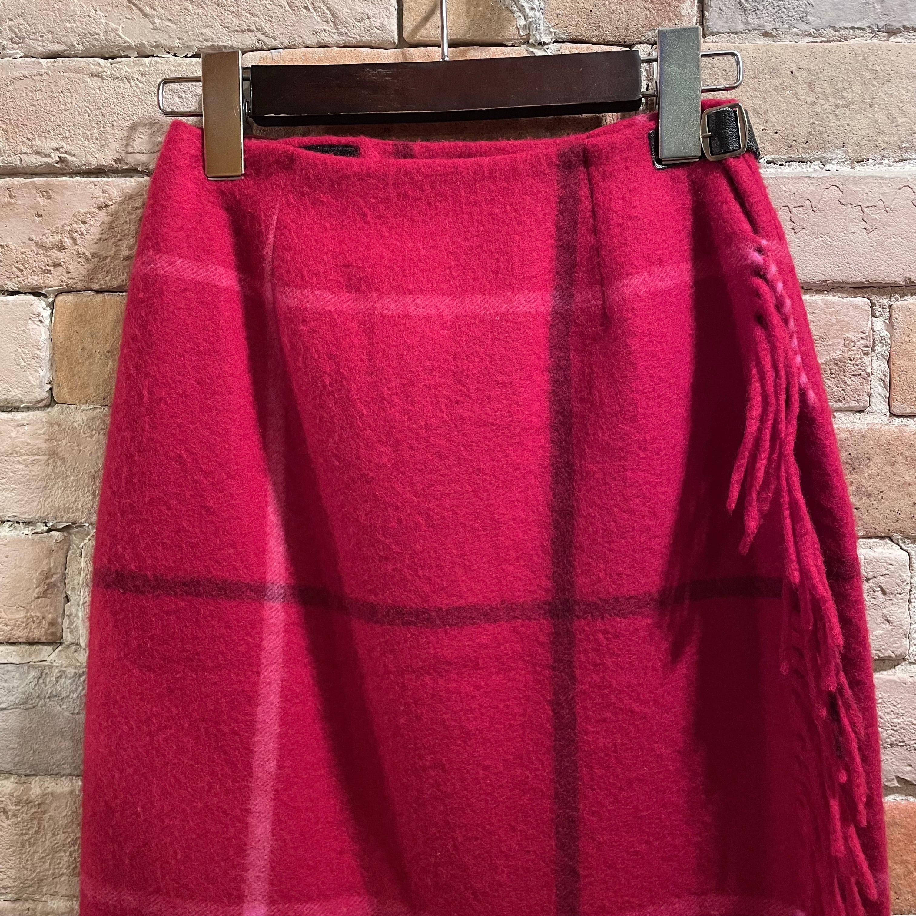 old england "wool wrap skirt"red check size8 スコットランド製 オールドイングランド ウールスカート チェック レッド