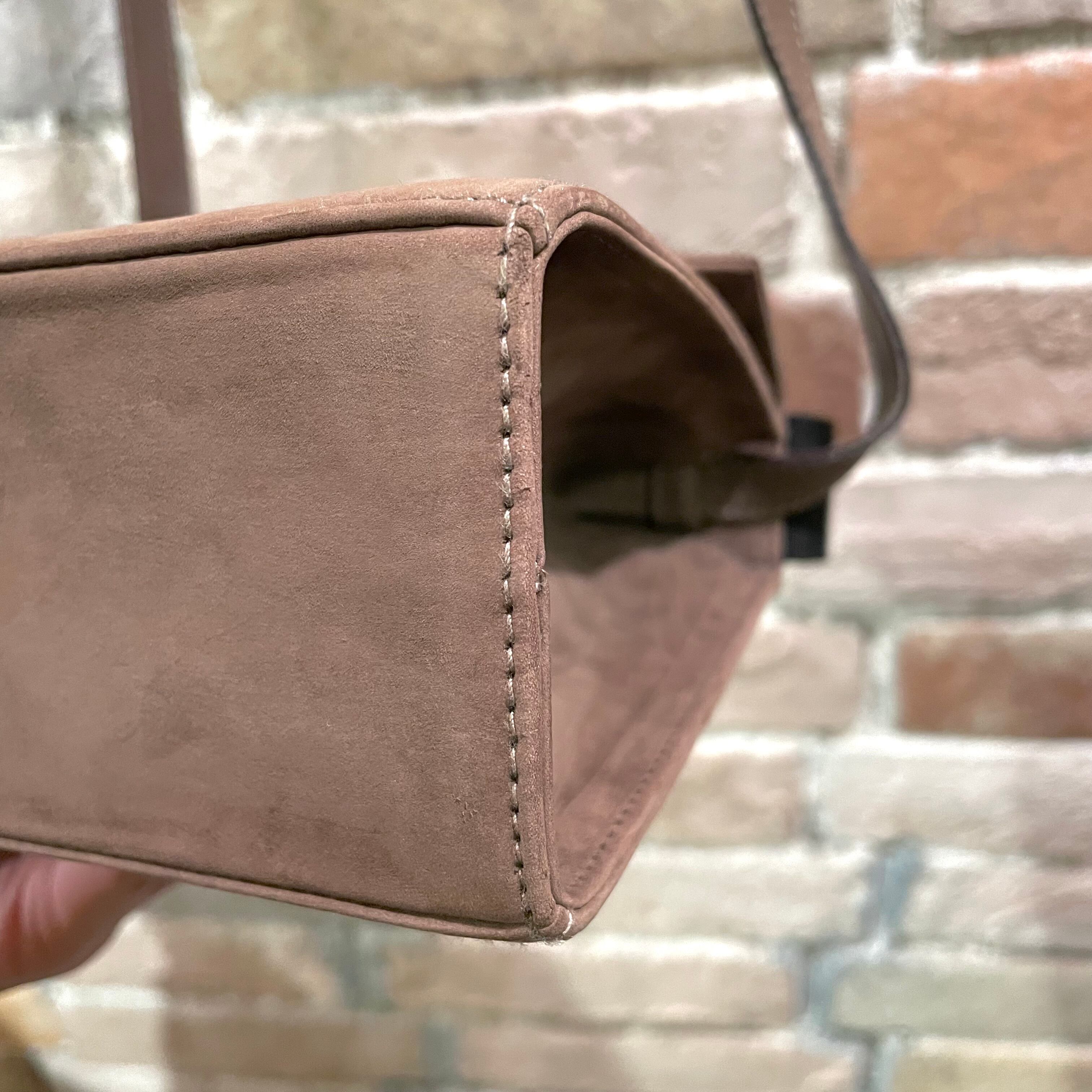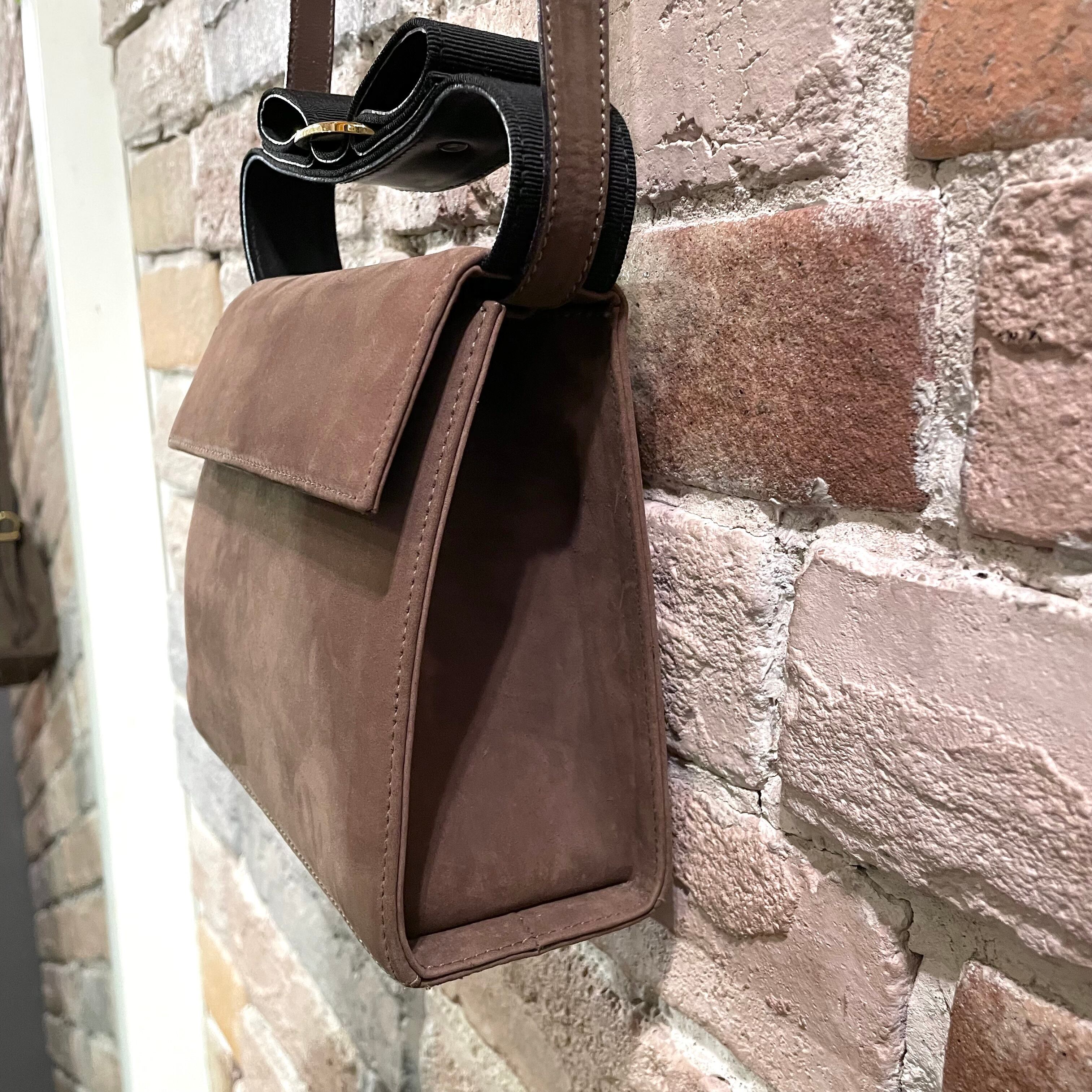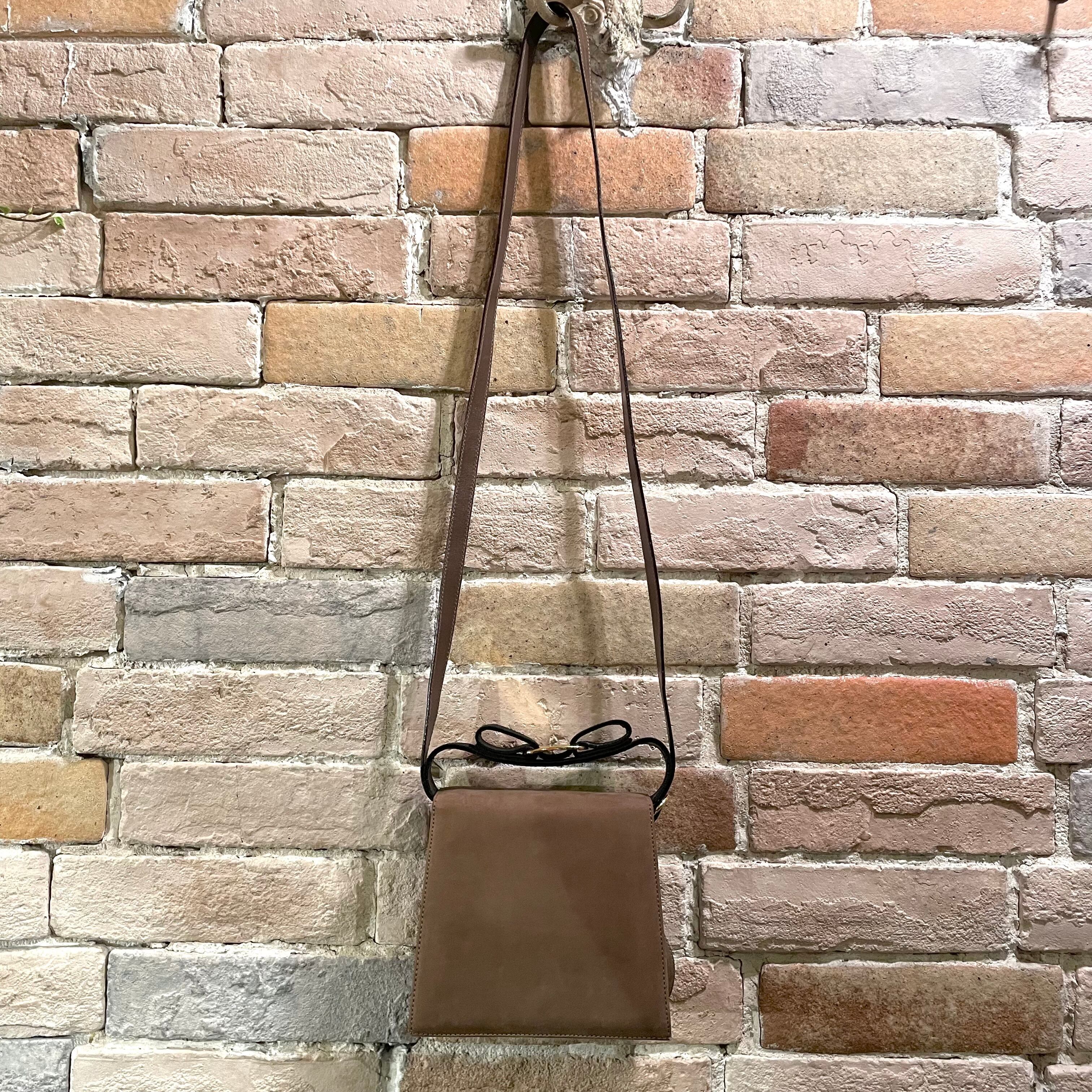 リボンがアクセントのグレージュヌバックレザーの2wayミニバッグ。